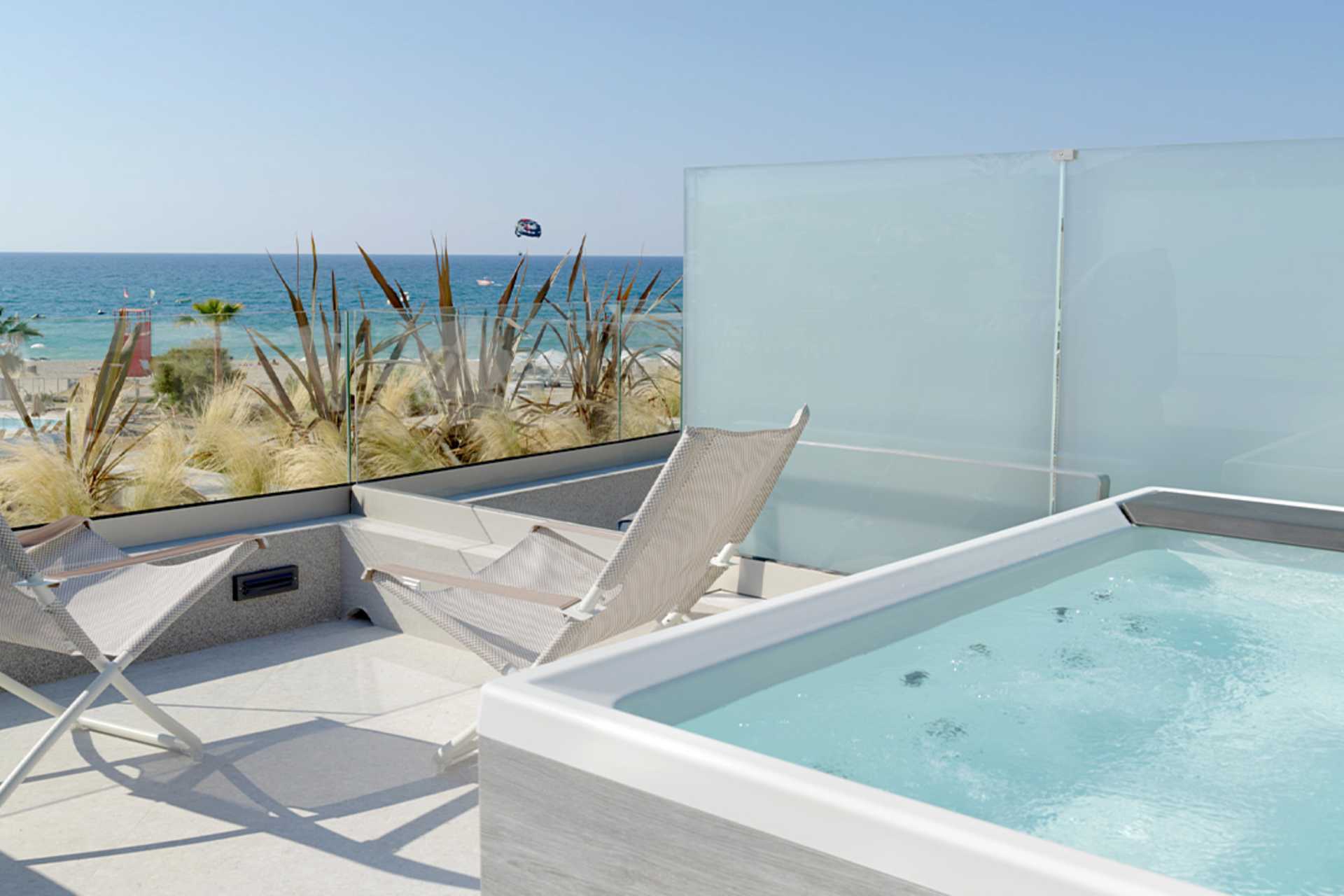 Hotellet har et pent og elegant bassengområde med basseng, solsenger og parasoller samt basseng- og strandhåndklær samt en poolbar. Det er et annet basseng og det tilhører superiorrommene med utgang til basseng. Rett nedenfor hotellet ligger den lange og brede sandstranden hvor hotellet driver en Beach Club.