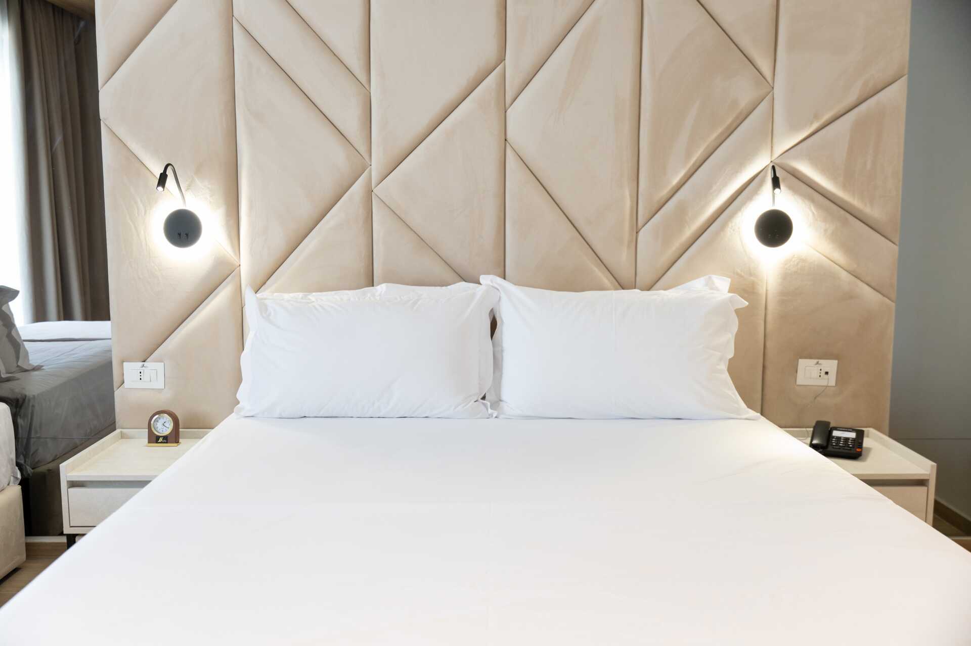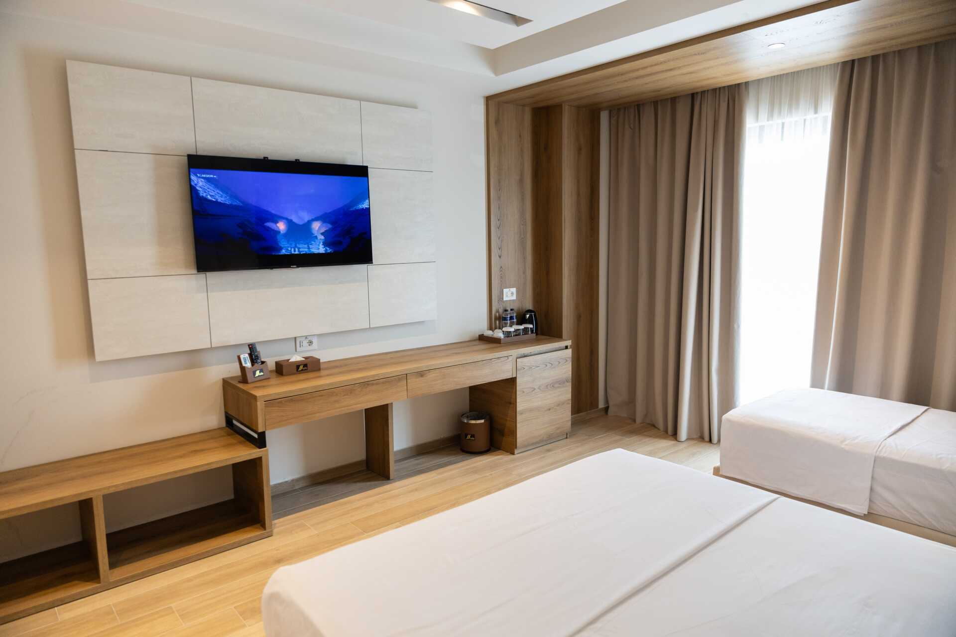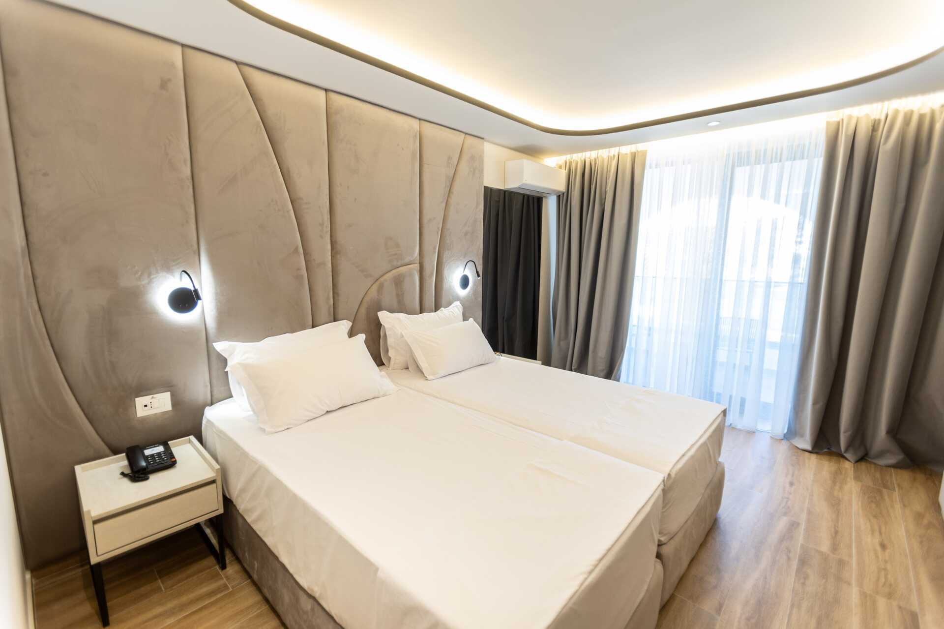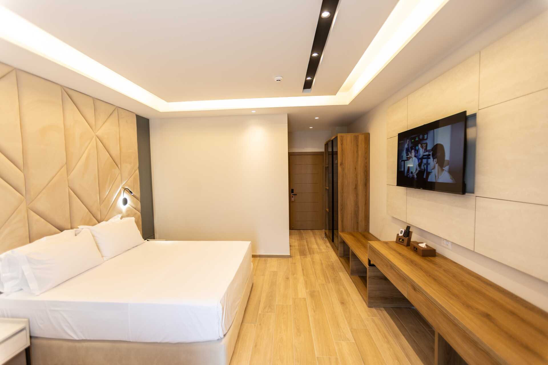 Dobbeltrom med balkong eller terrasse. En dobbeltseng eller to dobbeltsenger. Mulig med en ekstraseng i sovesofa. Wifi, luftkondisjonering og safe inkludert. Minibar. TV. Hårføner. Baderom med badekar eller dusj samt wc. Rengjøring 7 ggr/uke.