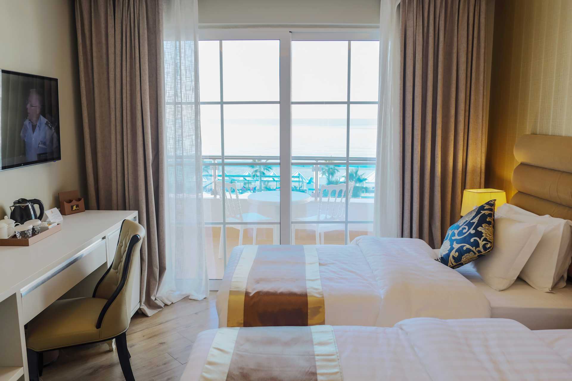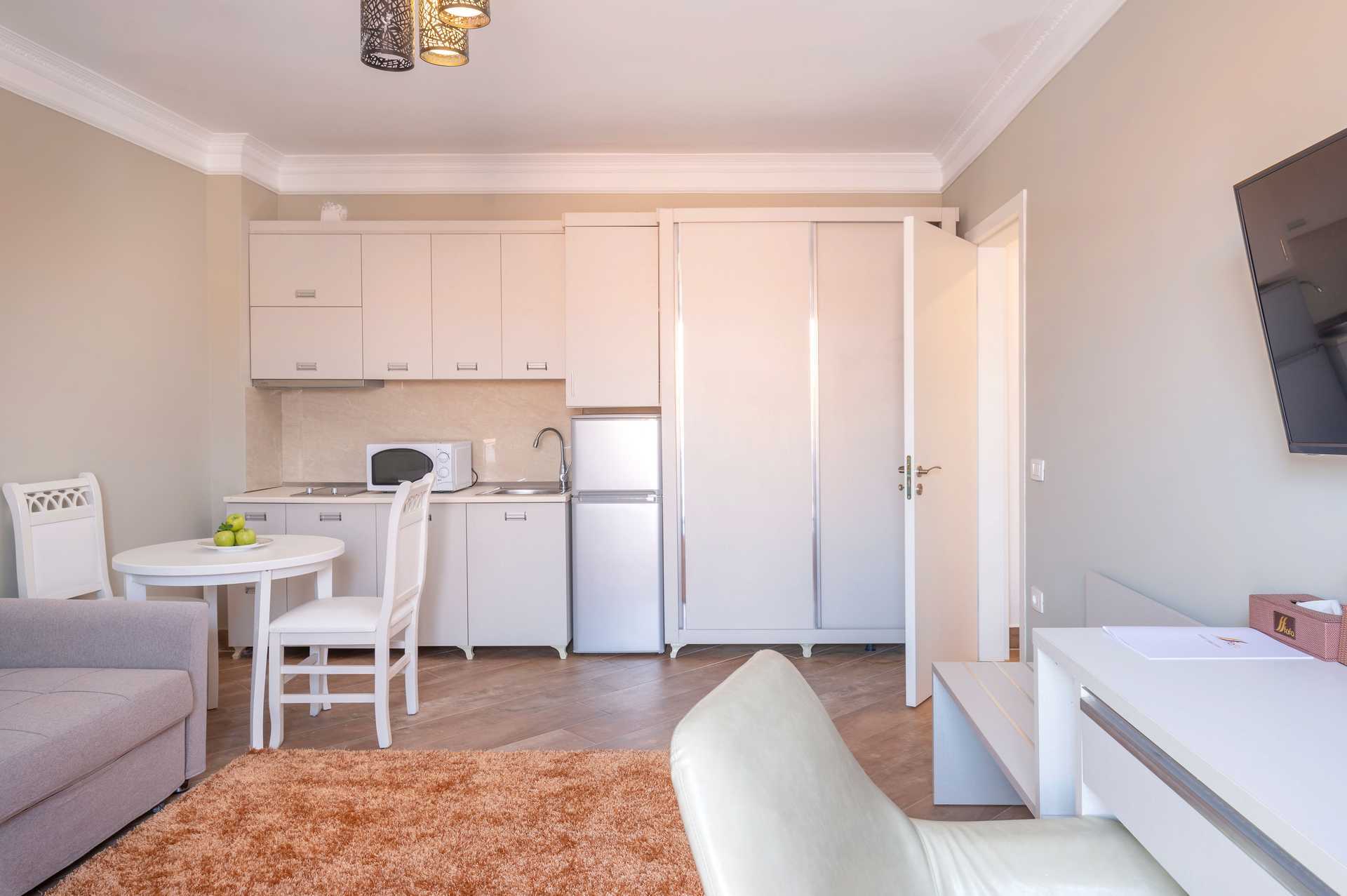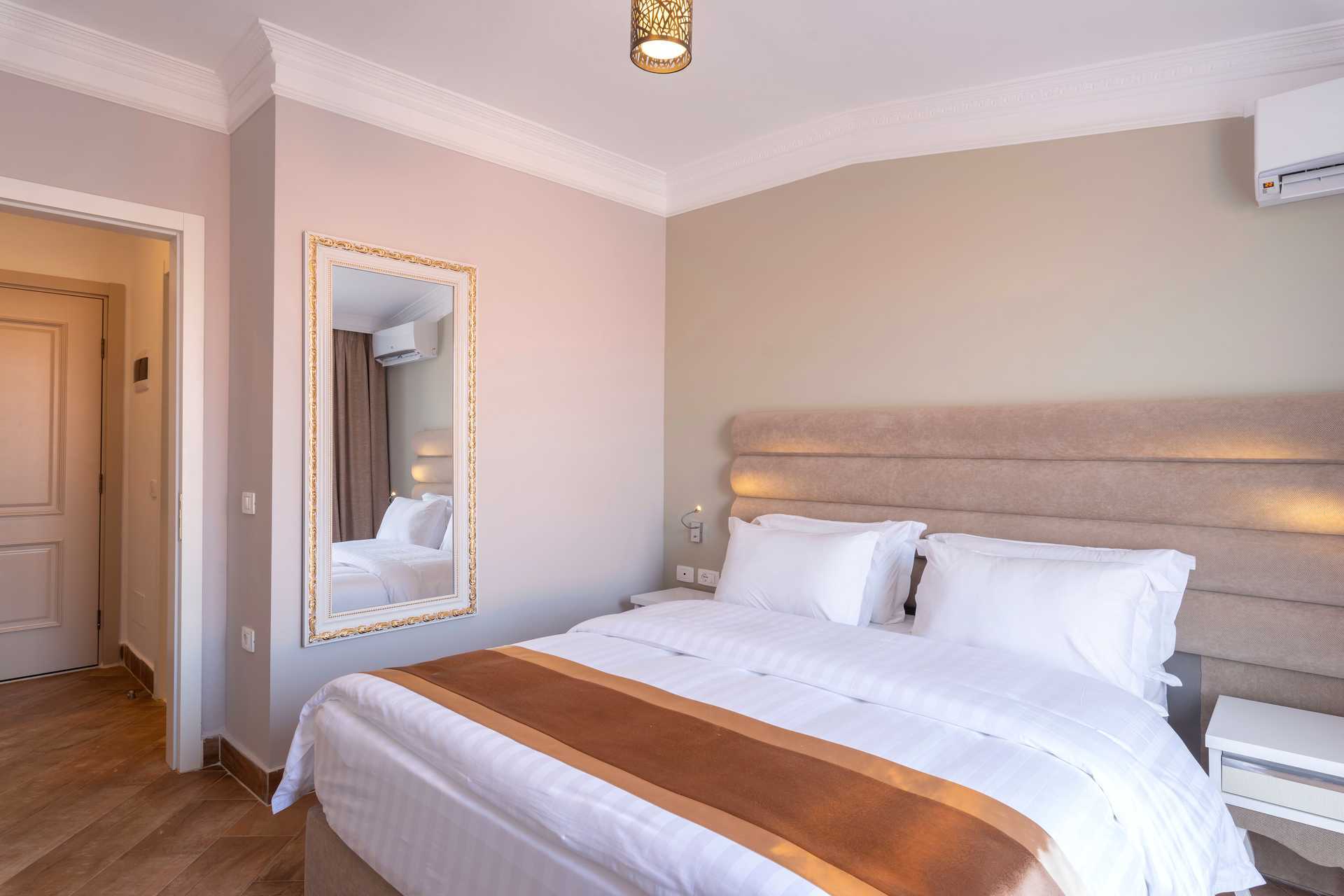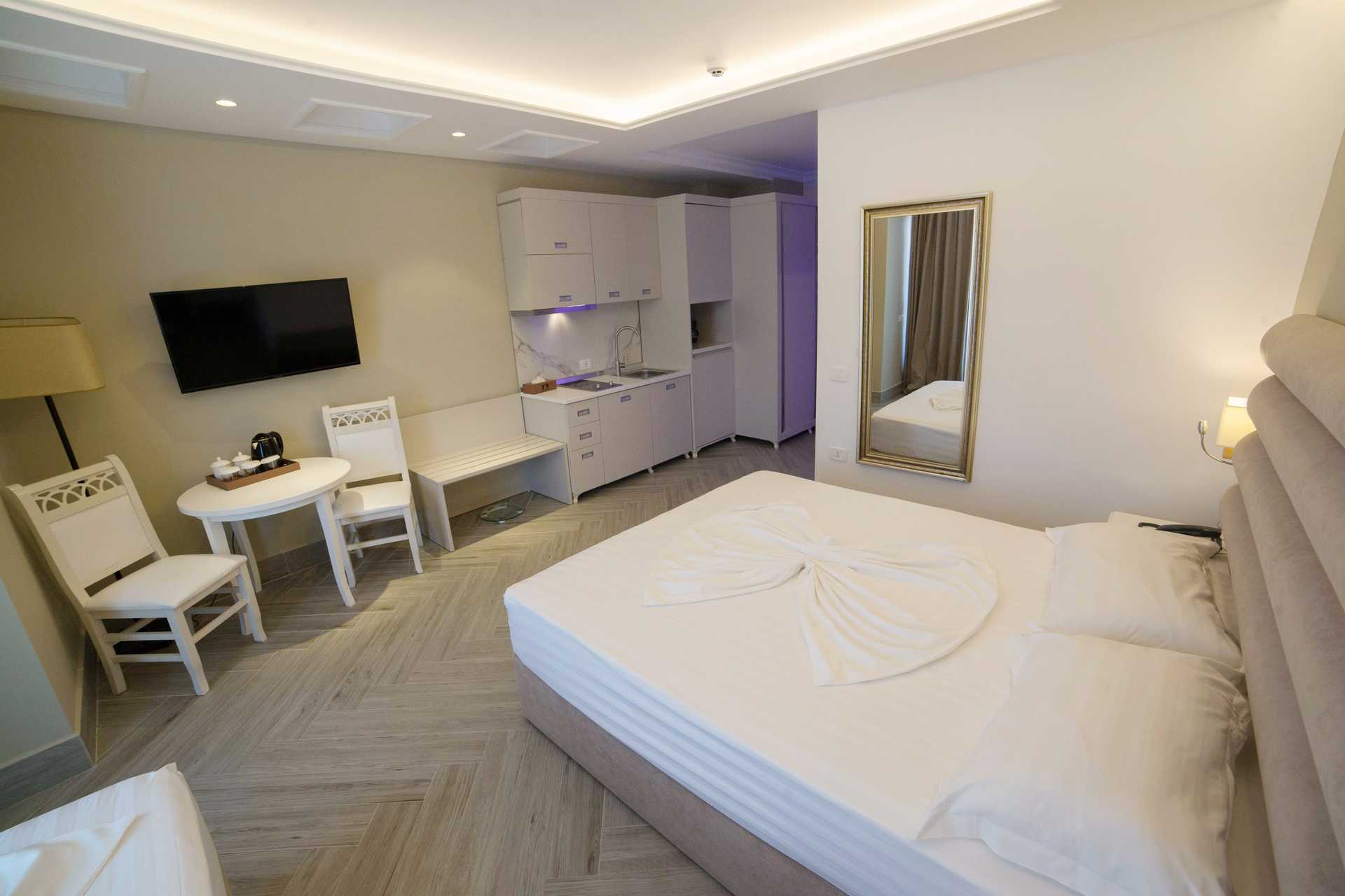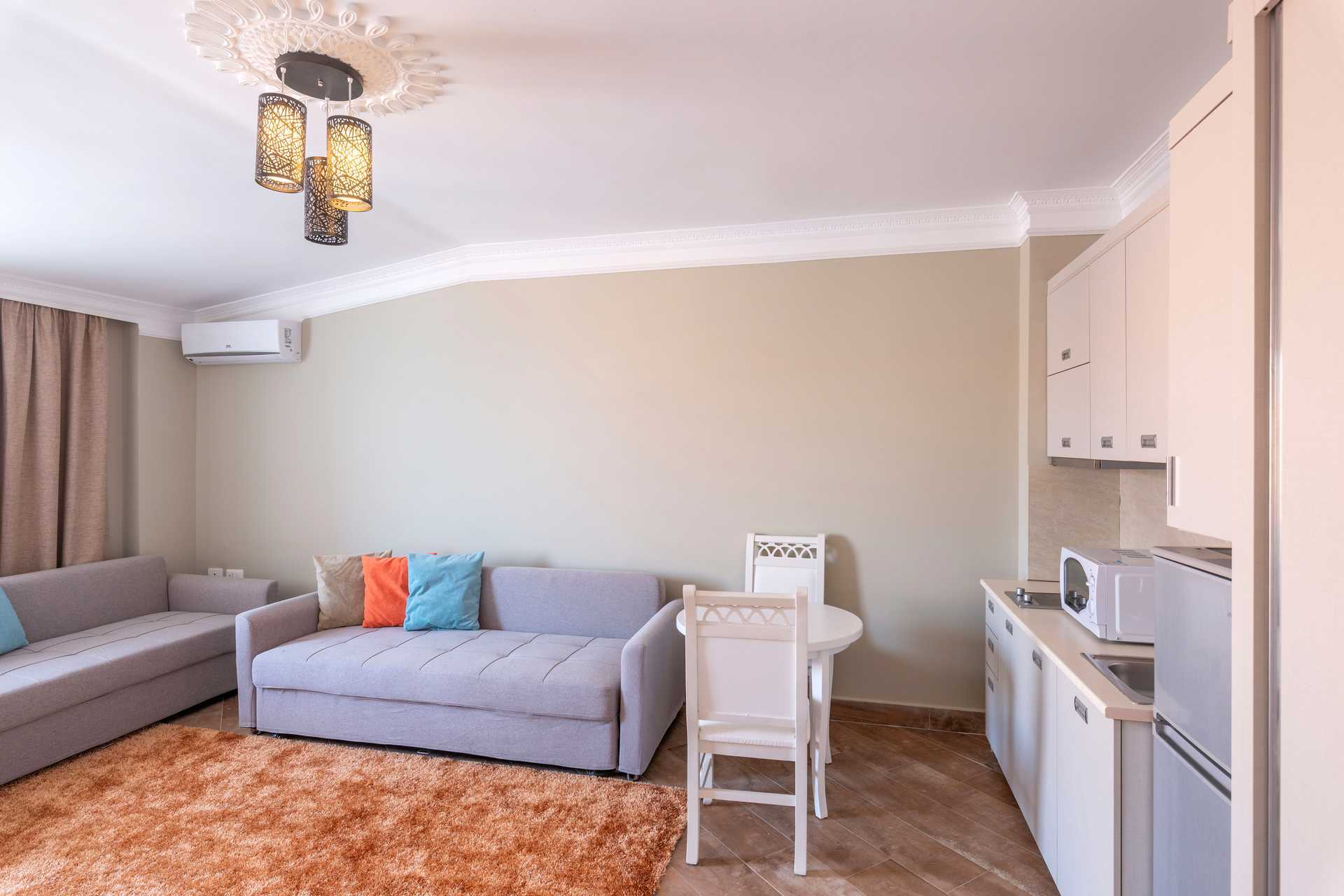 Toromsleiligheter med balkong, noen med havutsikt eller begrenset havutsikt. Et soverom med en dobbeltseng. Mulig med ekstraseng i enkeltseng og sovesofa i stuedel. Noen leiligheter har vegg-til-vegg-teppe. Minikjøkken med kjøleskap, kokeplater og enkelt kjøkkenutstyr. Wifi, luftkondisjonering og safe inkludert. Dusj og wc. Rengjøring 7 ggr/uke.