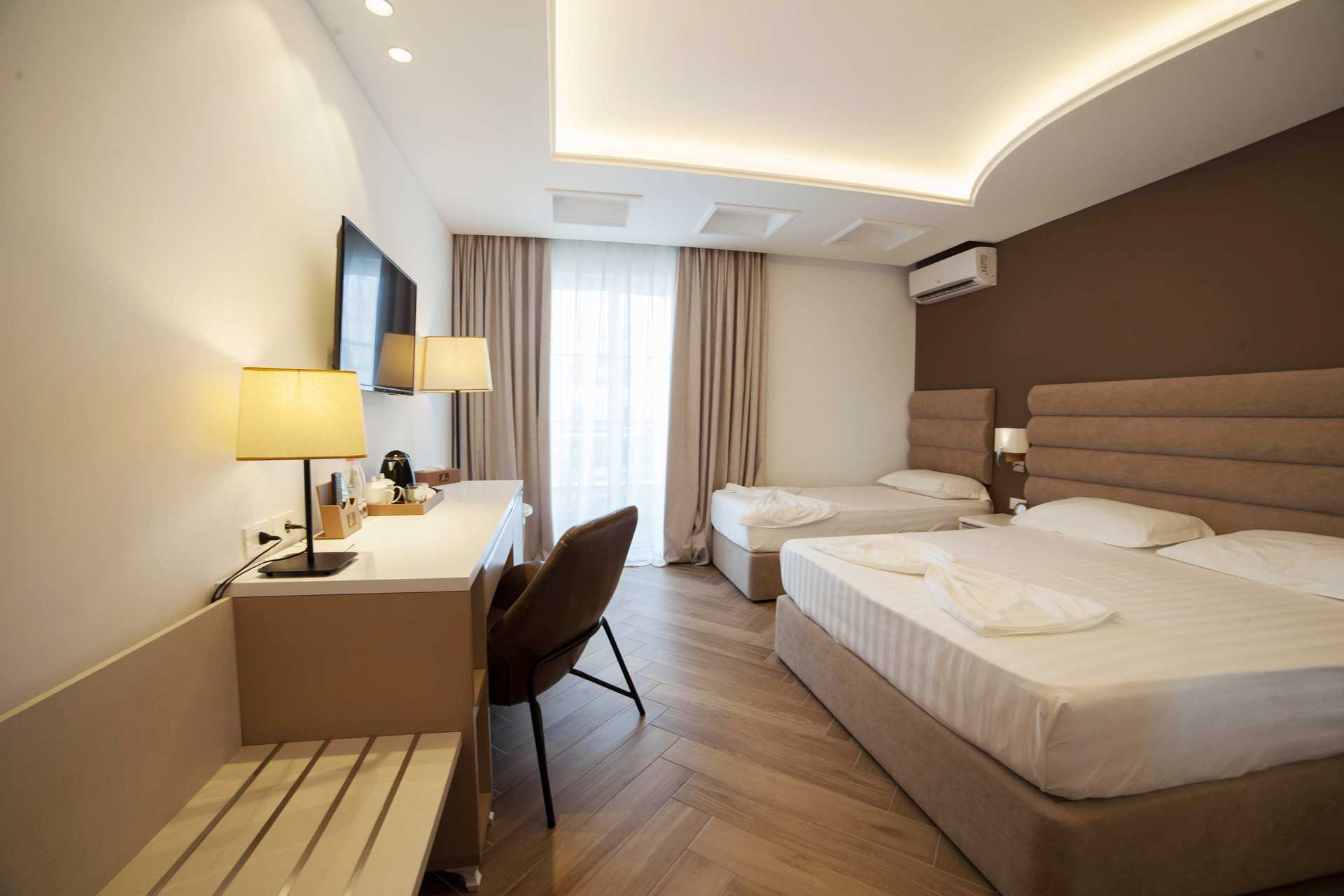 Ettromsleiligheter med balkong og begrenset havutsikt. En dobbeltseng eller to enkeltsenger. Mulig med ekstraseng i en sovesofa. Fjerde person sover i ordinære senger. Minikjøkken med kjøleskap, kokeplater og enkelt kjøkkenutstyr. Wifi, luftkondisjonering og safe inkludert. Dusj og wc. Rengjøring 7 ggr/uke.