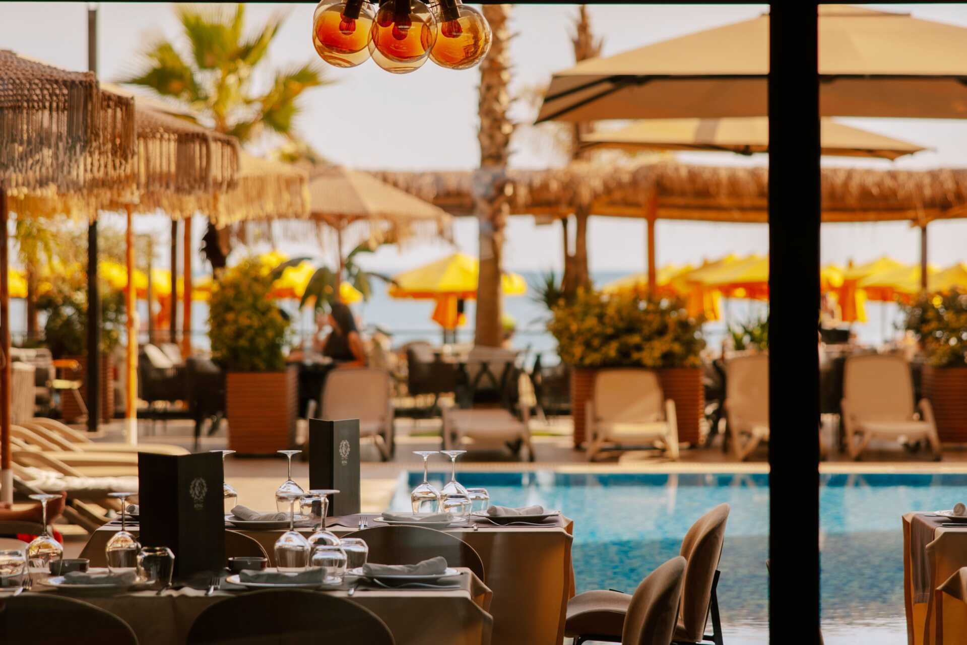 Komfortabelt, avslappende, hyggelig betjening, vakker utsikt mot havet, hyggelige salonger, også mulighet for servering rundt bassenget.