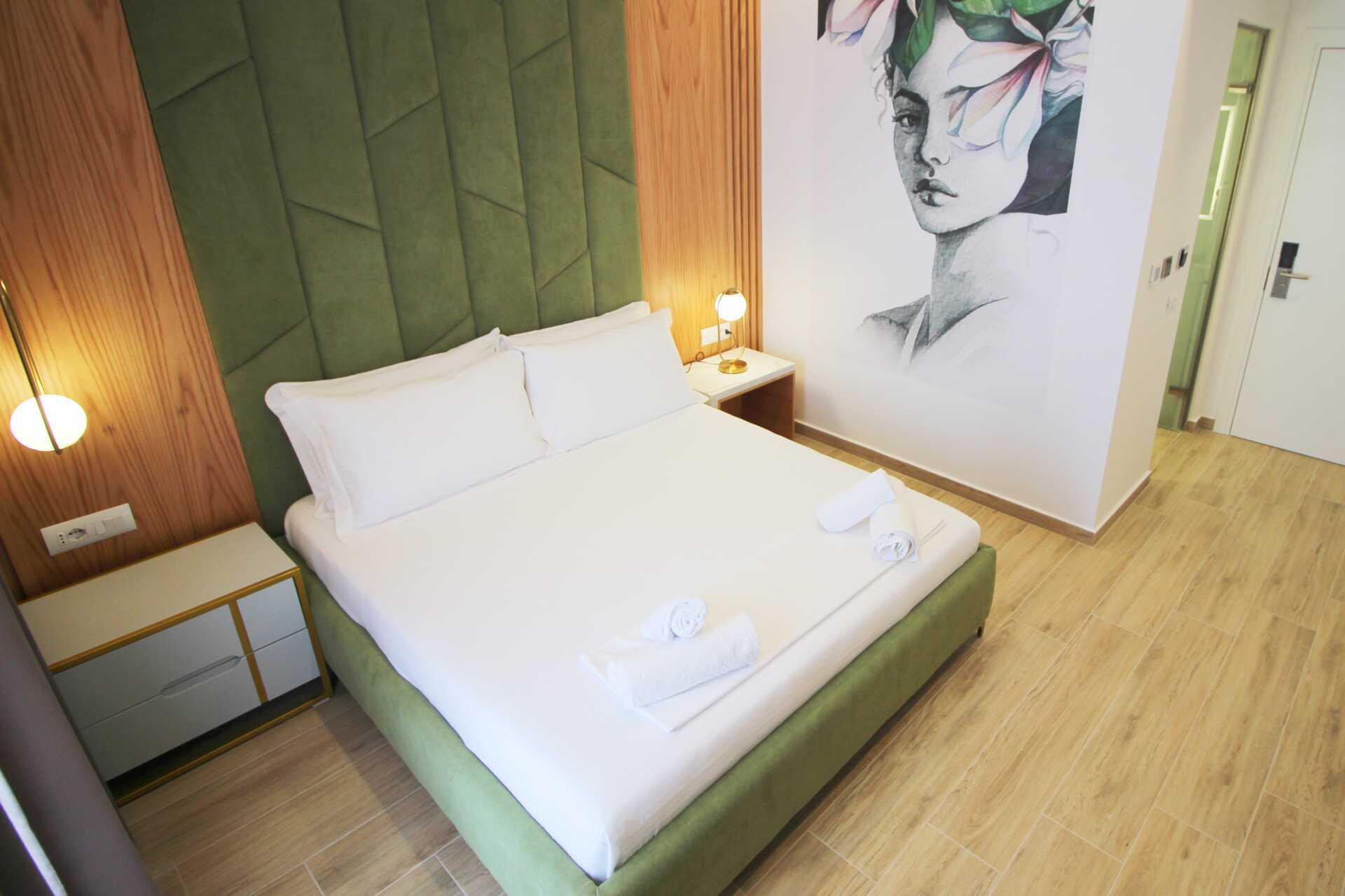 Deluxerom med balkong, noen med havutsikt. En dobbeltseng. Wifi, luftkondisjonering og safe inkludert. Vannkoker. TV. Hårføner. Dusj og wc. Rengjøring 7 ggr/uke.