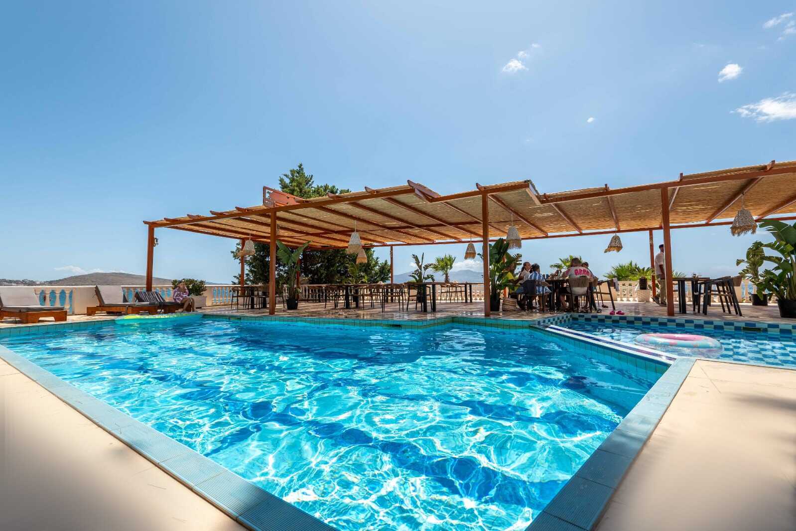 Sejko ligger flott til ved stranda med livlige Saranda i passe gangavstand. Hotellets sentrale beliggenhet gjør at det passer godt for et ungt publikum som ønsker å ta del av utelivet. Bassengområde med basseng med barneseksjon samt solsenger og parasoller. Bassenget er åpent i perioden 1. juni til 30. september. På den egne grusstranden er det også solsenger og parasoller som er inkluderte. Frokostservering