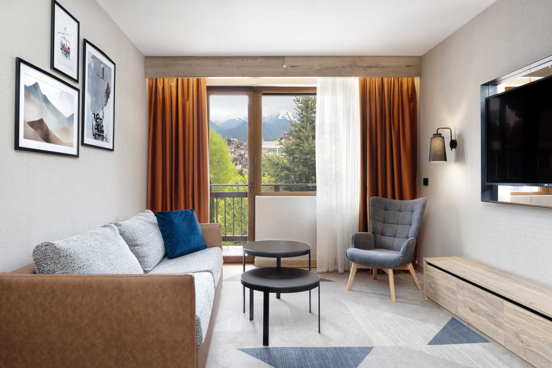 Familierom med balkong. Et soverom med to enkeltsenger og en stue med mulighet for en ekstraseng i sovesofa. Wifi, safe og luftkondisjonering inkludert. Minibar. Vannkoker samt kaffe og te. TV. Vegg-til-vegg-teppe Strykejern og strykebrett. Hårføner. Dusj og wc. Rengjøring 6 ggr/uke.