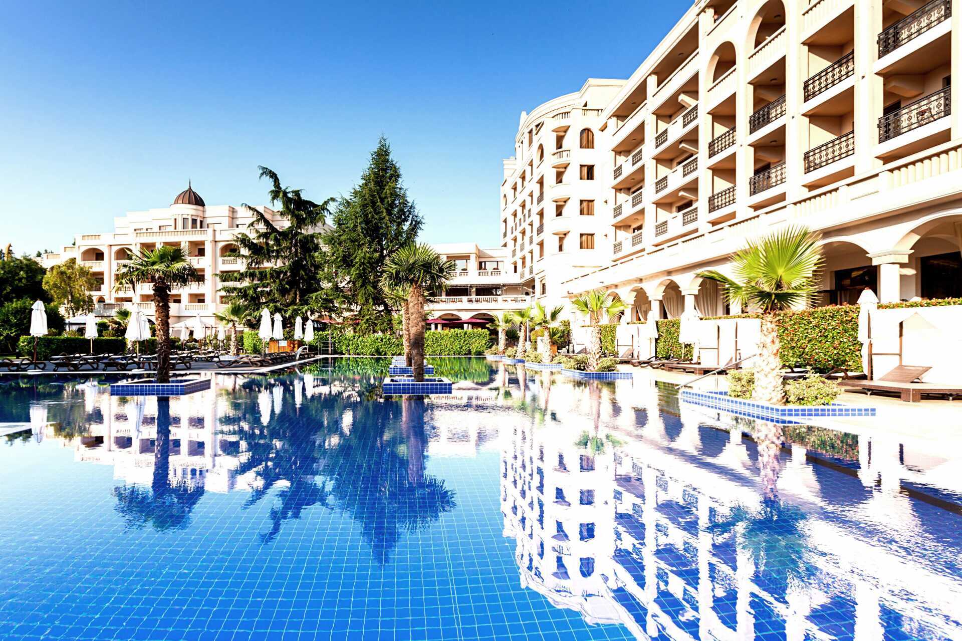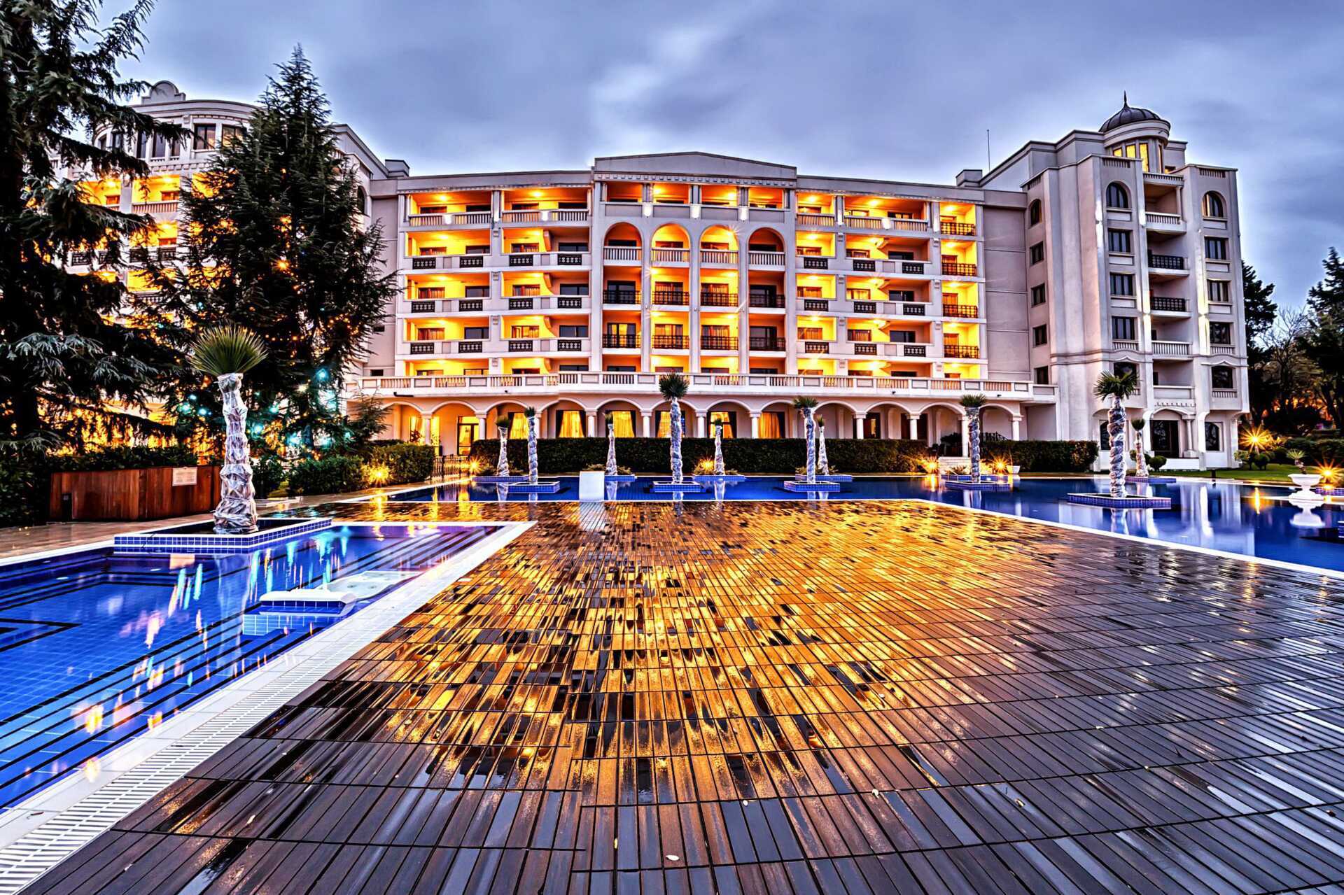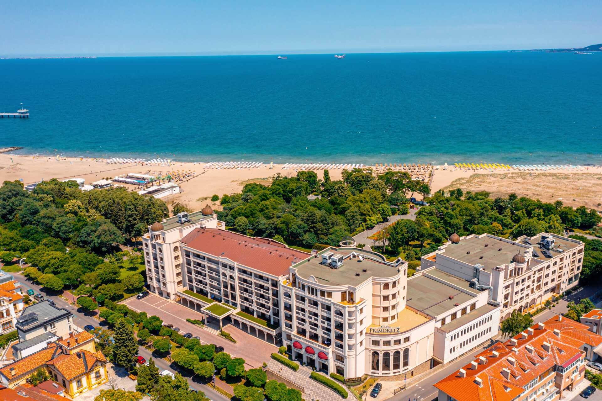 Primoretz Grand Hotel & Spa er et veletablert hotell og ble oppført allerede i 1959. Siden den gang har hotellet vært et sentralt sted i Burgas og her har det blitt holdt mange ball, bryllup, dåp og klassegjenforeninger. Her finner du i dag et stort og deilig bassengområde med et basseng med en grunnere del for barn. Solsenger og parasoller, balisenger og badehåndklær er inkludert ved bassengområdet og på den fine stranden nedenfor hotellet. Strandbar.