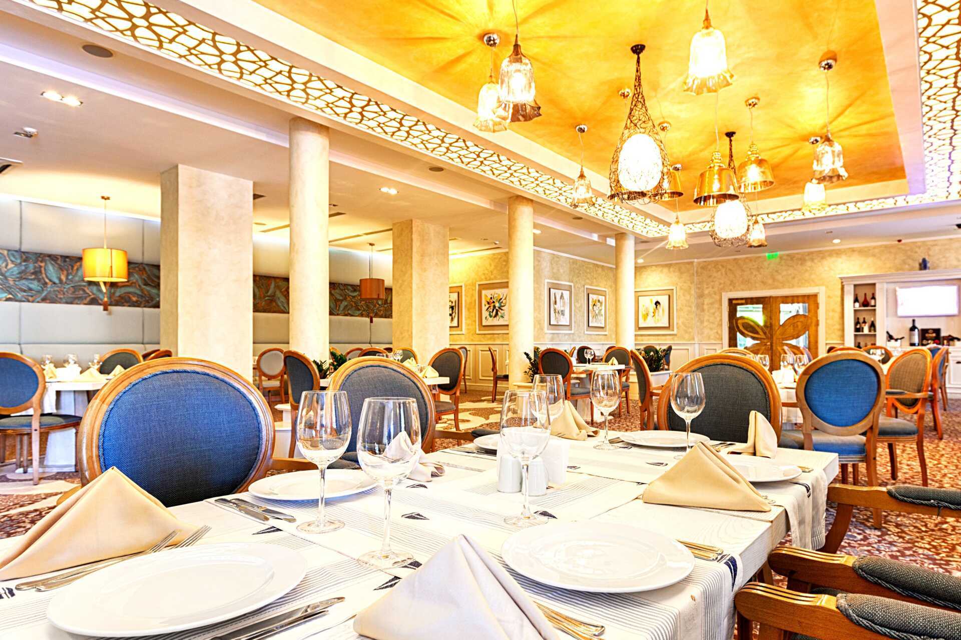 Salini Mediterranean Restaurant serverer en stor og deilig frokostbuffé, og ved lunsjtid og om kvelden er restauranten en à la carte-restaurant. I sommermånedene utvides restauranten med en del i hotellets hage. Tre barer, en i lobbyen, en loungebar og en pianobar som er åpen i helgene med levende musikk.