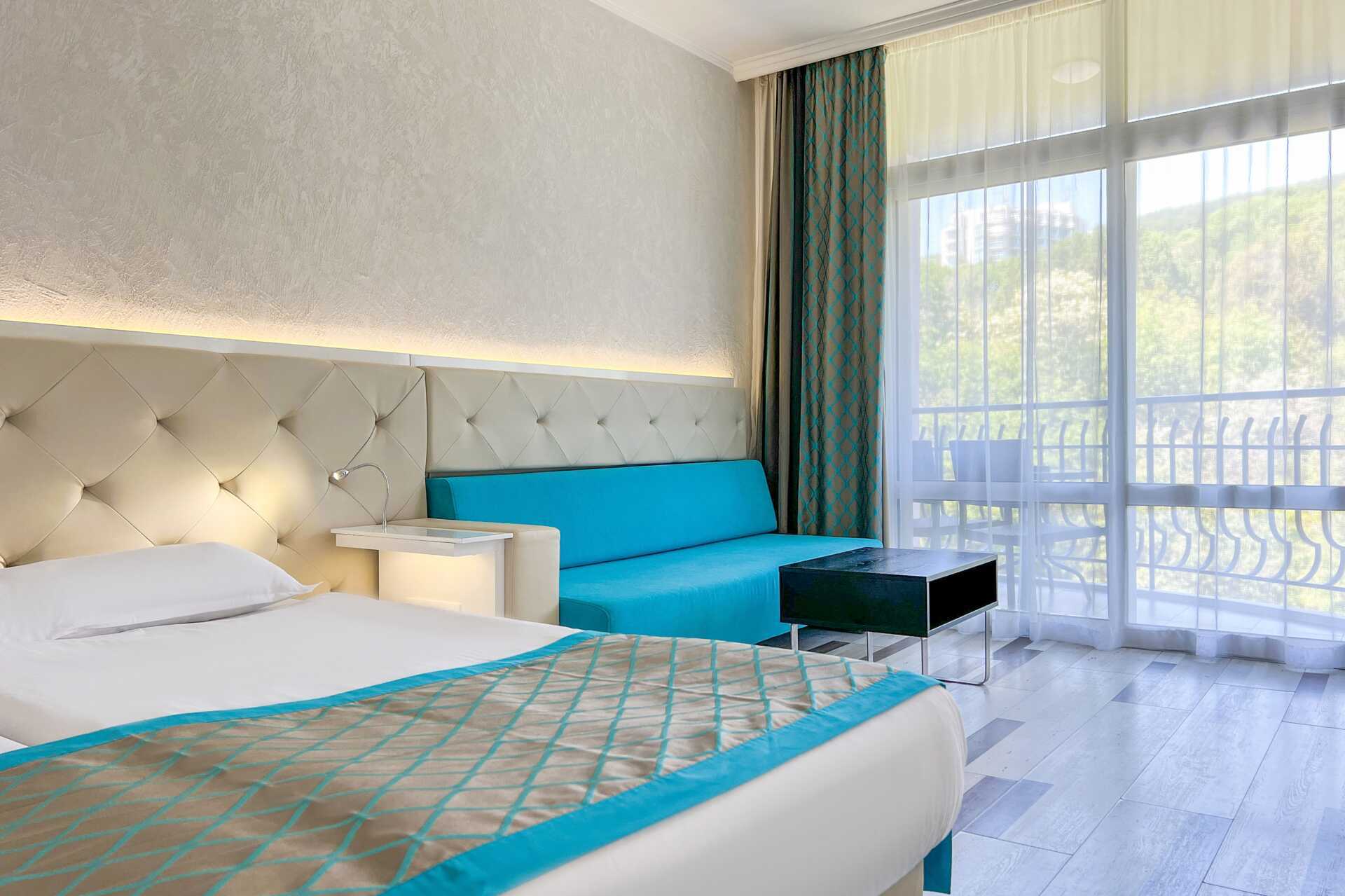 Dobbeltrom med balkong. En dobbeltseng eller to enkeltsenger. Mulig med en ekstraseng i sovesofa. Wifi, luftkondisjonering og safe inkludert. TV. Minibar. Vannkoker samt kaffe og te. Putemeny. Hårføner. Baderom med badekar eller dusj samt wc. Rengjøring 7 ggr/uke.