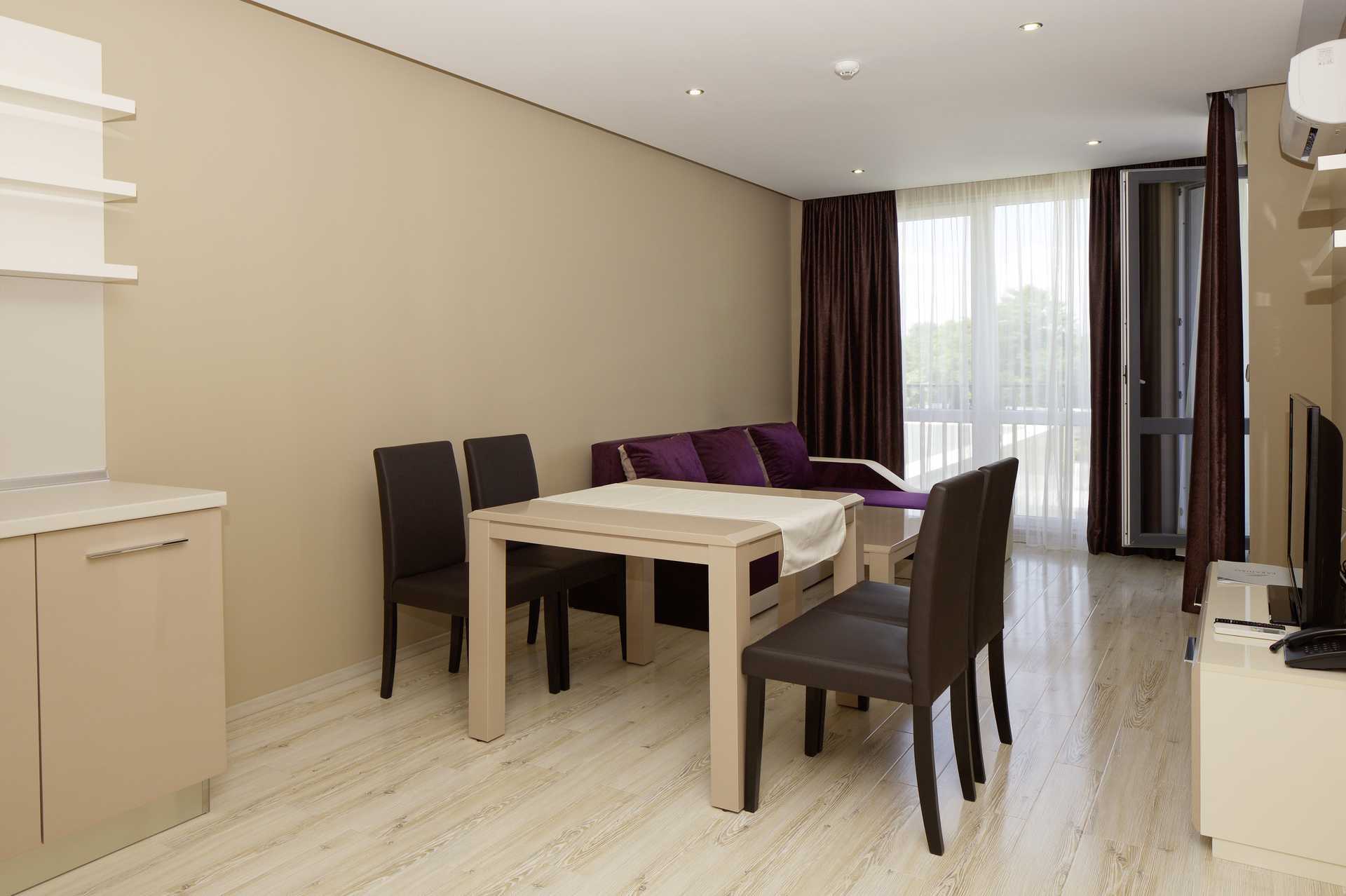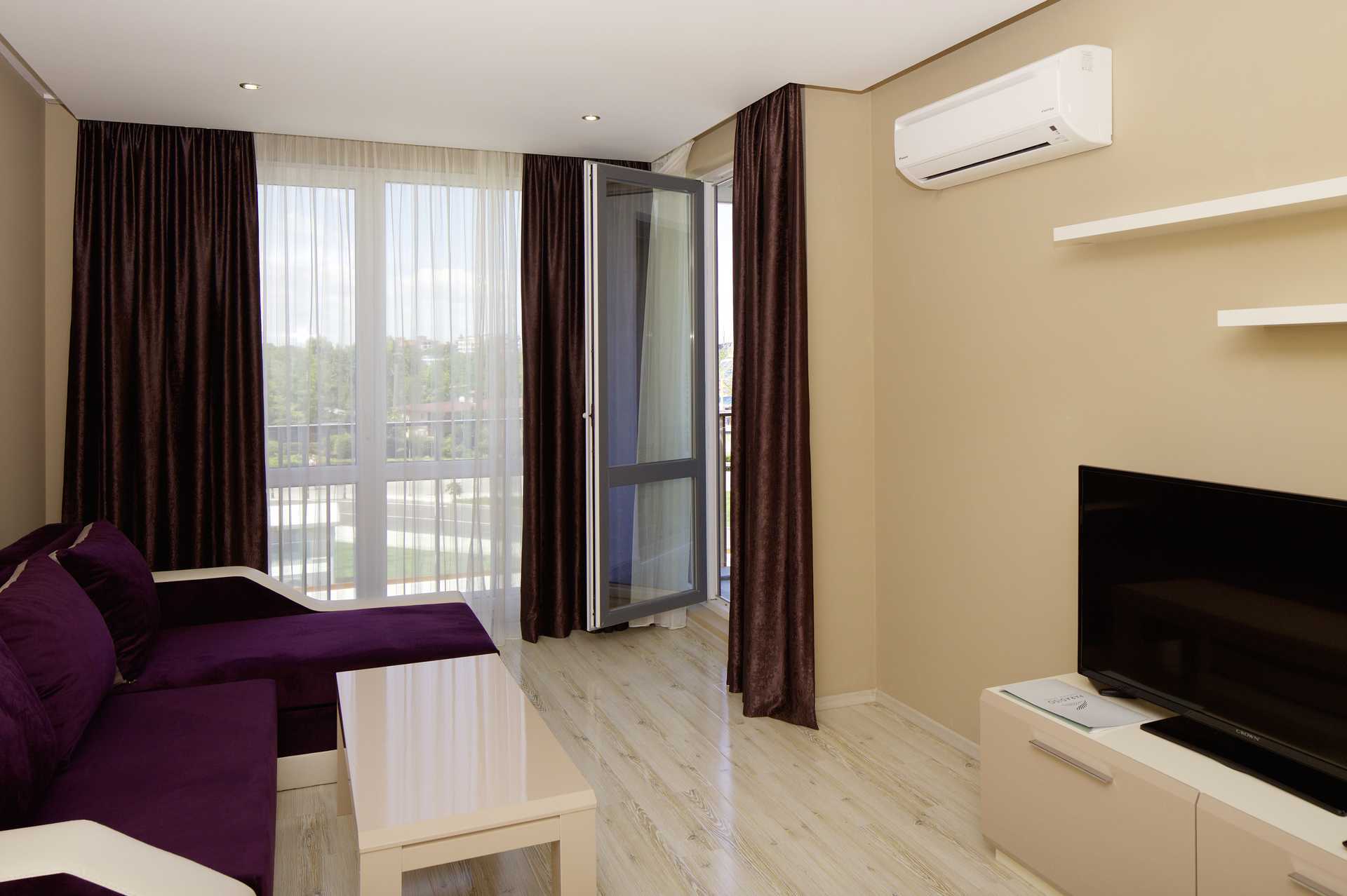 Toromsleilighet med balkong. Et soverom og en stue med minikjøkken. En dobbeltseng. Mulig med ekstrasenger i sovesofa. Minikjøkken med kokeplater, kjøleskap, vannkoker og enkelt kjøkkenutstyr. Wifi, luftkondisjonering og safe inkludert. TV. Hårføner. Baderom med dusj og wc. Rengjøring 7 ggr/uke.