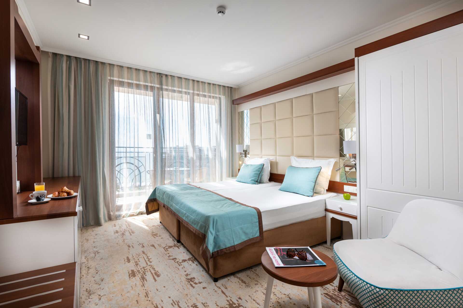 Superiorrom med balkong. En dobbeltseng eller to enkeltsenger. Mulig med ekstrasenger i feltsenger. Wifi, luftkondisjonering og safe inkludert. Minibar. Vannkoker samt kaffe og te. TV. Hårføner. Bad med badekar, separat dusj og wc. Rengjøring 6 ggr/uke.