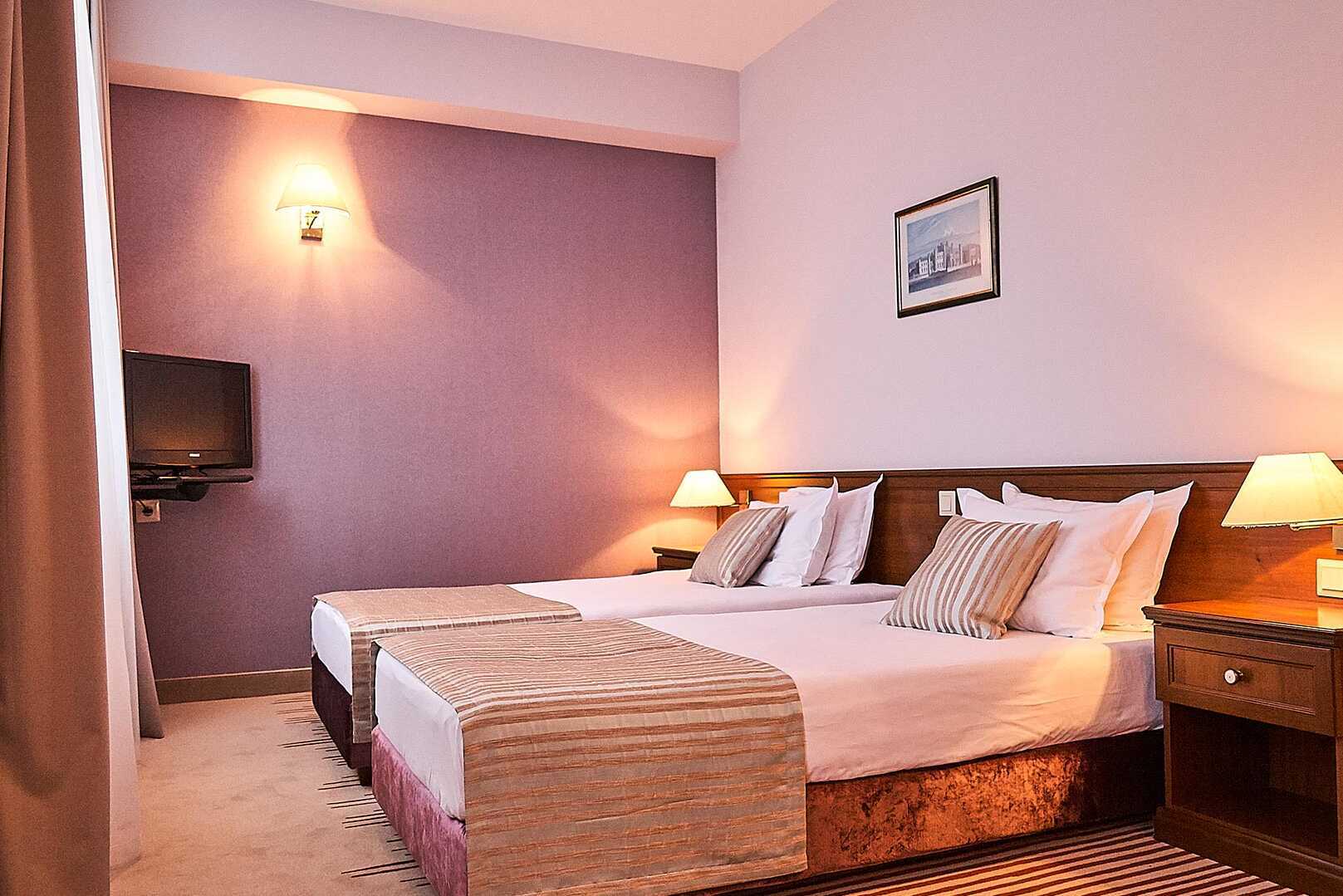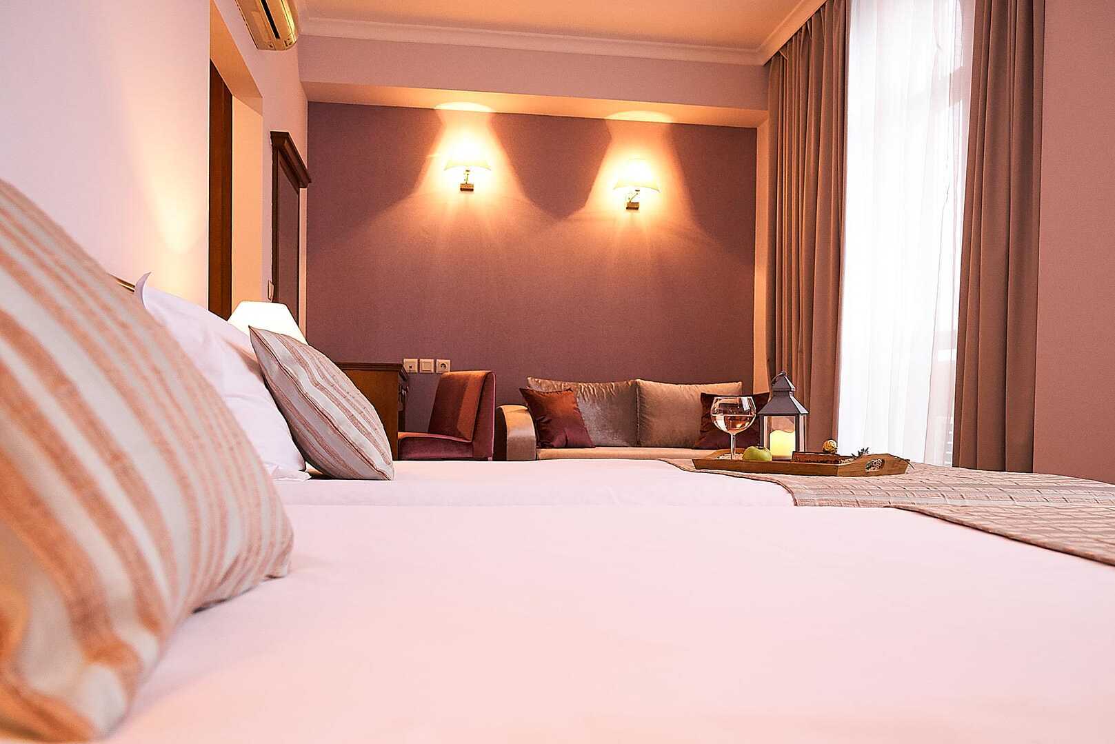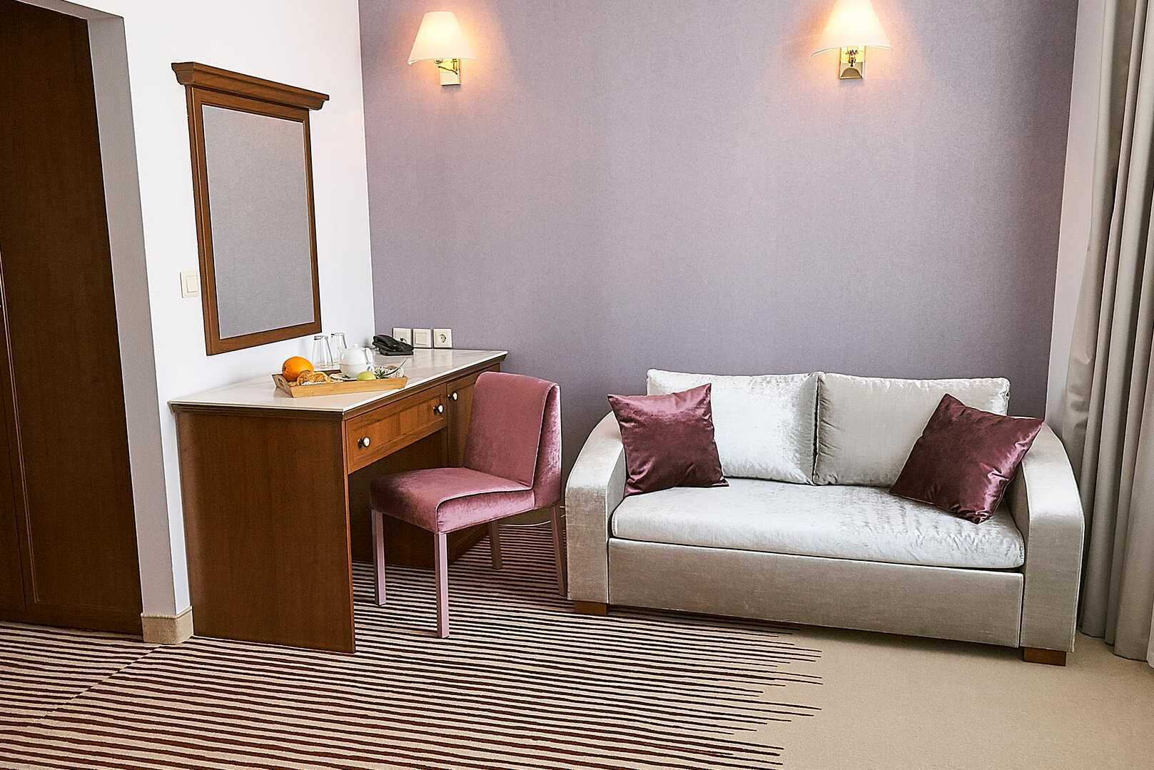Deluxerom uten uteplass. En dobbeltseng. Mulig med en ekstraseng i sovesofa. Wifi og luftkondisjonering til oppvarming er inkludert. Kjøleskap. TV. Vegg-til-vegg-teppe. Hårføner. Badekar eller dusj samt wc. Rengjøring 6 ggr/uke.