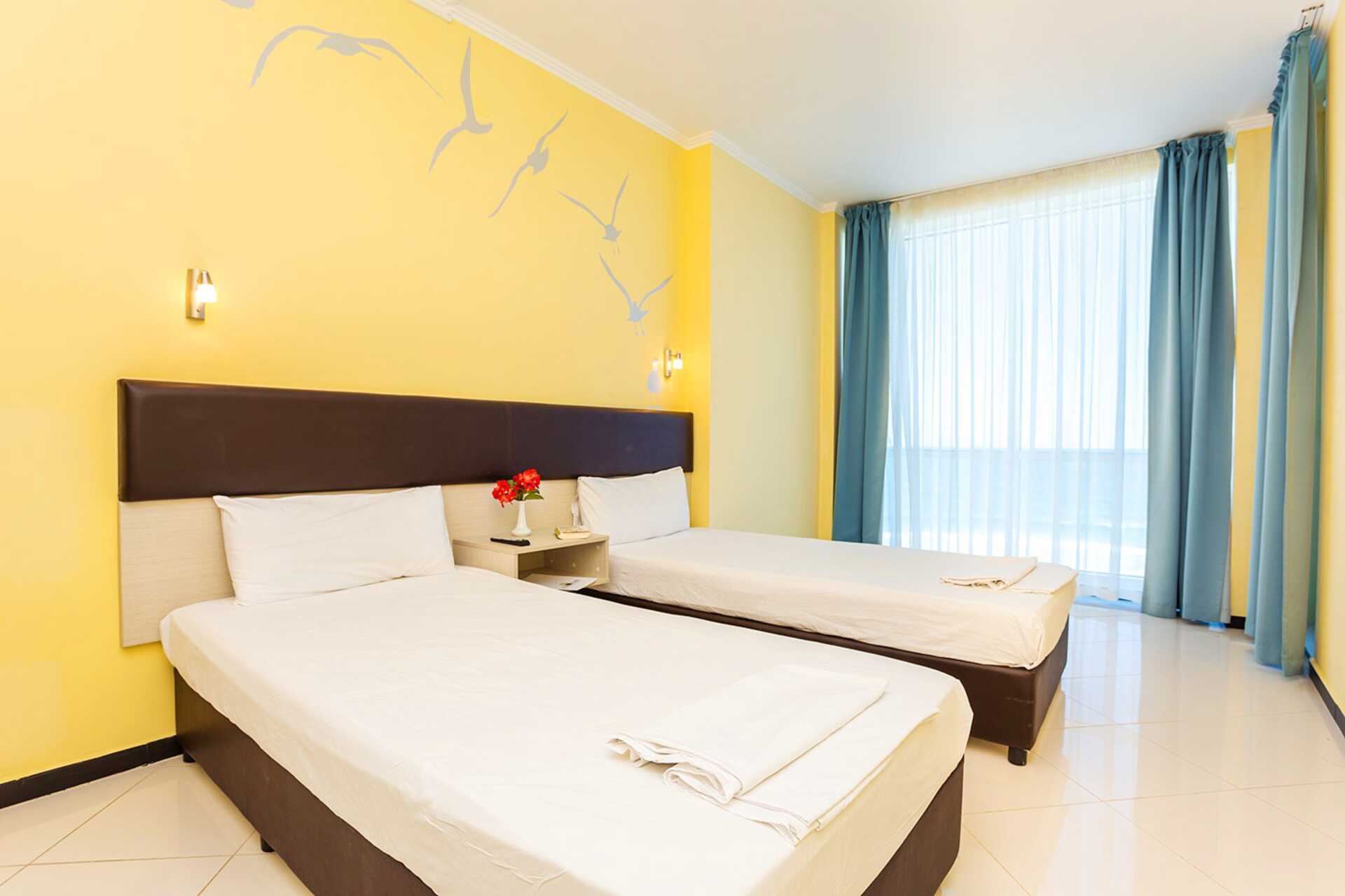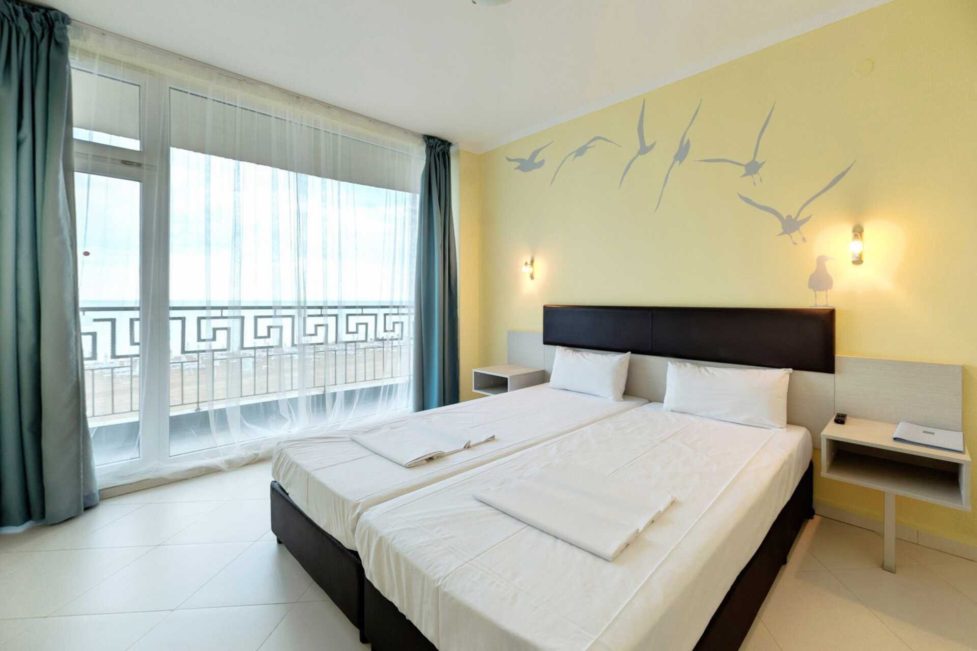 Toromssuite med balkong eller terrasse og havutsikt. Et soverom og en stue. En dobbeltseng eller to enkeltsenger. Mulig med ekstrasenger i sovesofa. Wifi og luftkondisjonering inkludert. Kjøleskap, en flaske vann er inkludert og etterfylles hver dag. Kaffemaskin – kapsler ikke inkludert. TV. Hårføner. Badekar eller dusj samt wc. Rengjøring 7 ggr/uke.