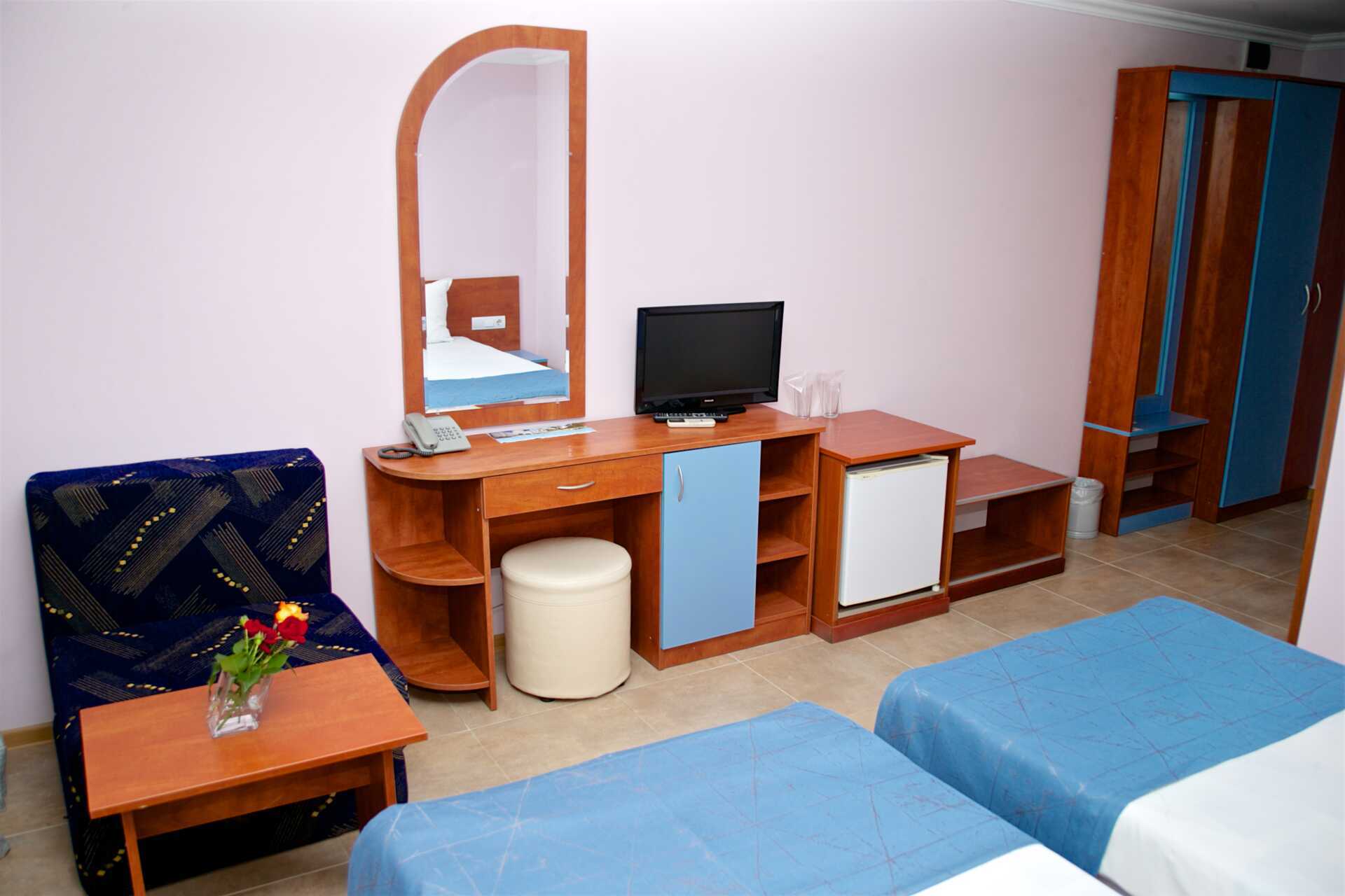 Dobbeltrom med balkong. Noen av rommene er renovert og er litt større og noen av rommene har vegg-til-vegg-teppe. To enkeltsenger. Mulig med ekstraseng. Luftkondisjonering og wifi inkludert. Kjøleskap. TV. Baderom med dusj og wc. Rengjøring 7 ggr/uke.