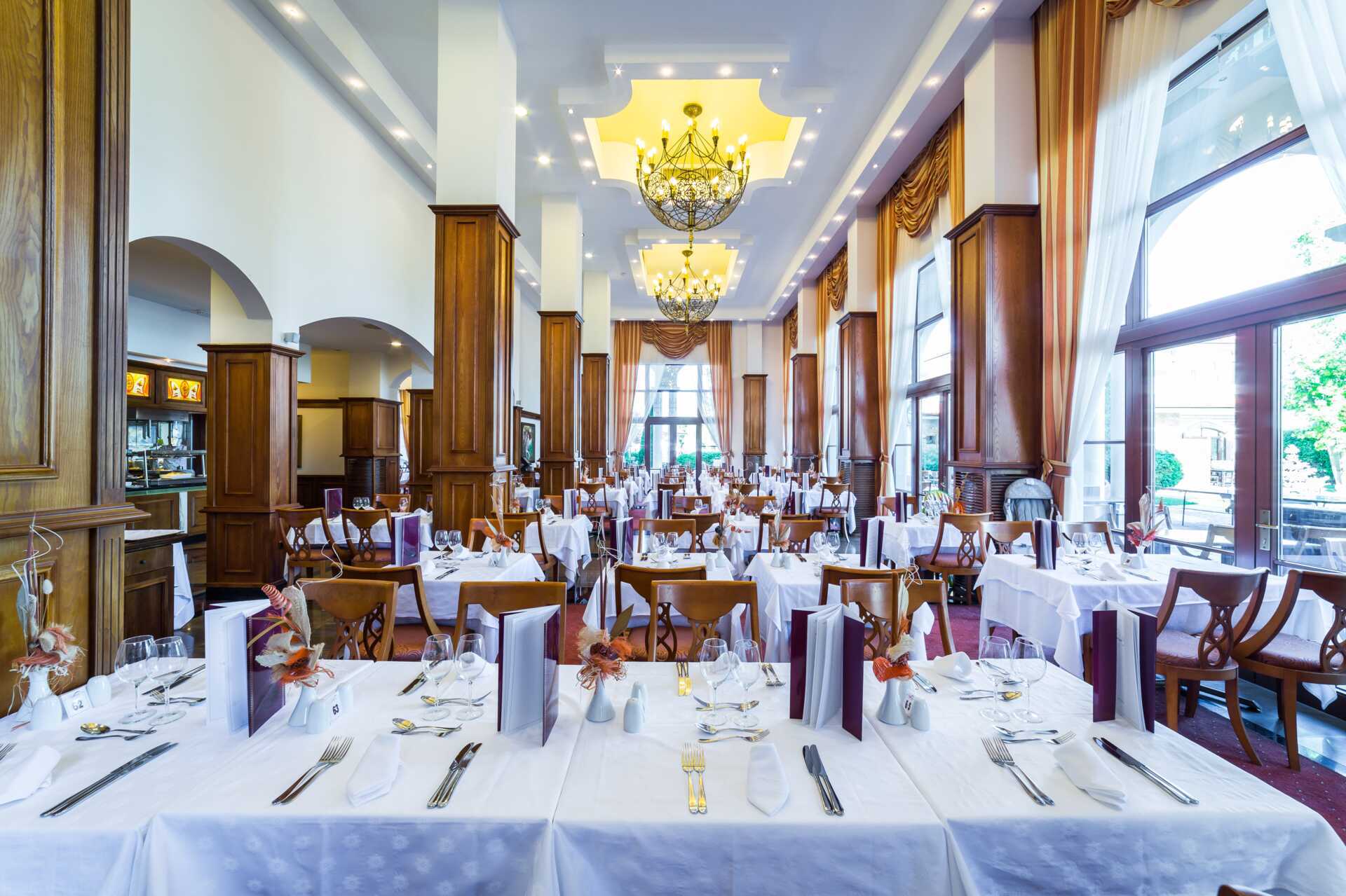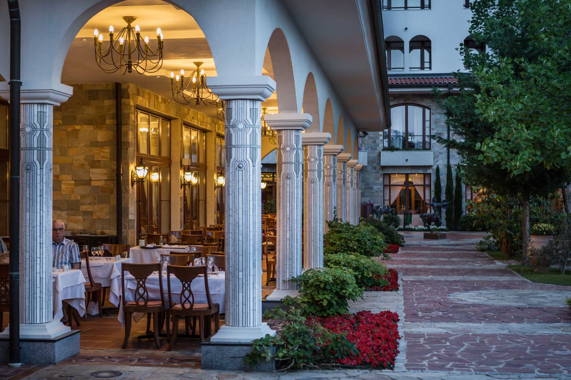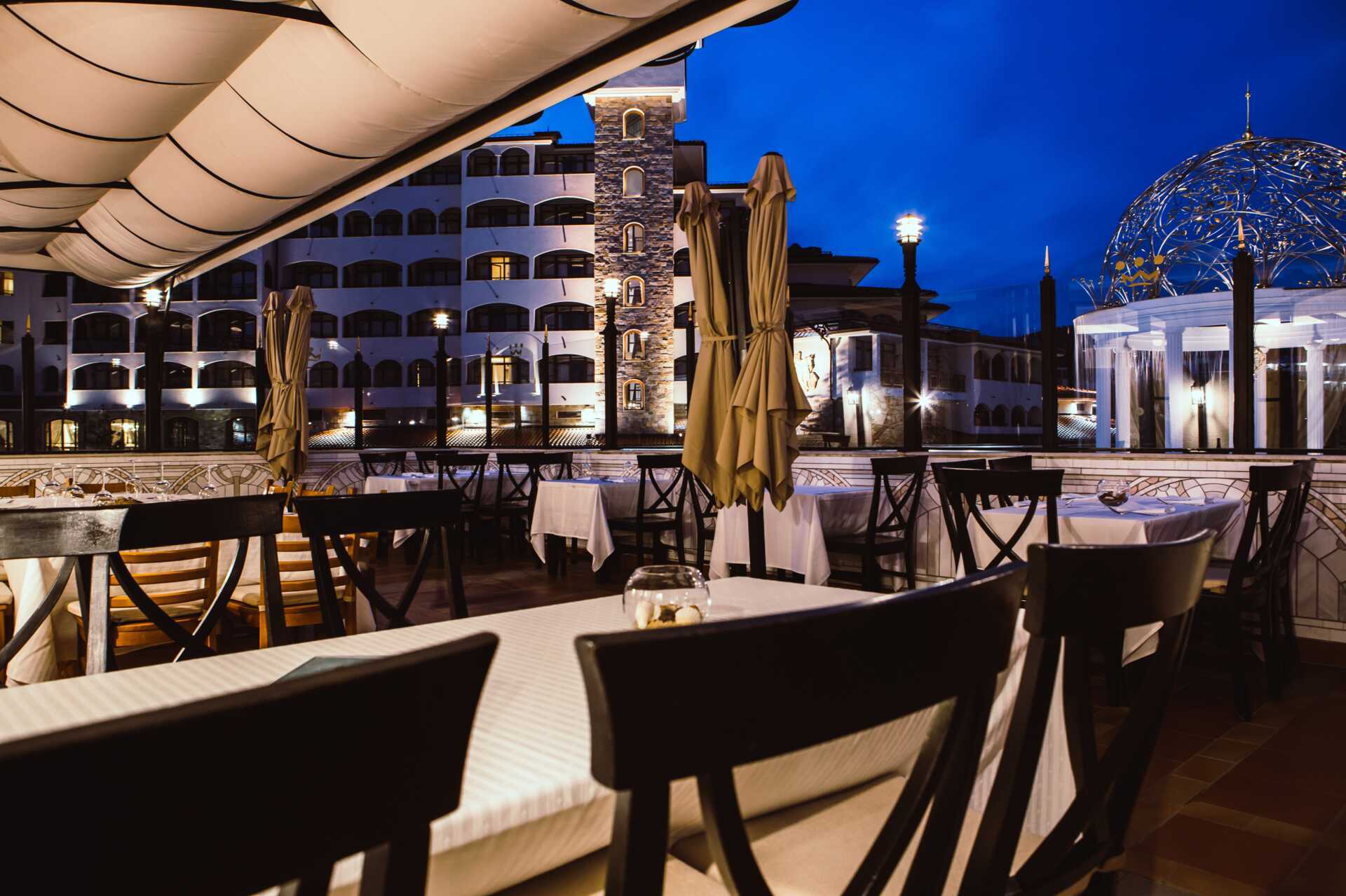 Frokosten serveres kl. 7.30-10.30 og middagen med to bordsettinger kl. 18.00-19.30 og kl. 20.00-21.30. Middagen kan byttes mot to middager per uke i den bulgarske grillrestauranten, bord må reserveres.