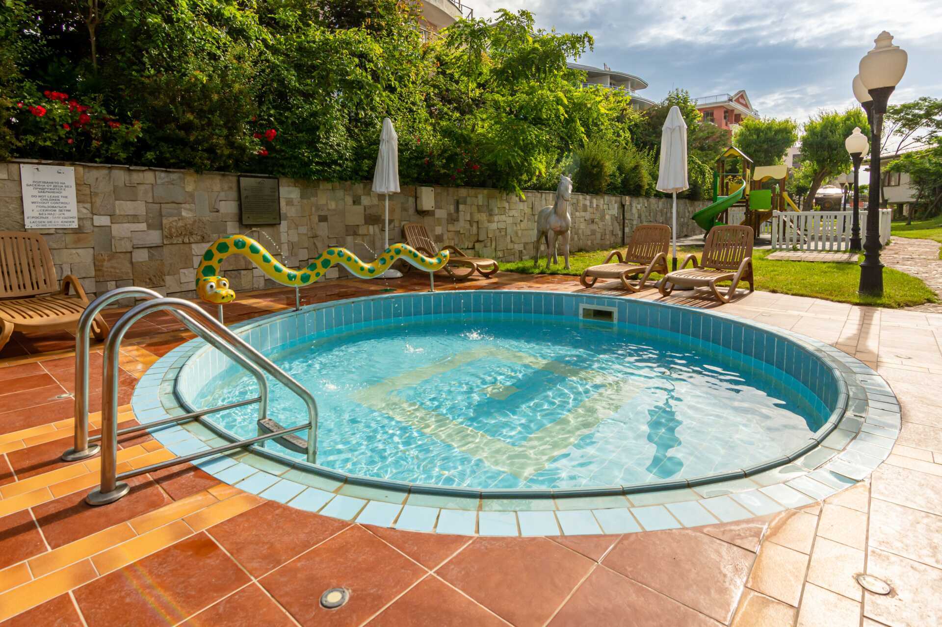 Hotellet har et stort og fint bassengområde med basseng, dypere basseng (95 cm) med vannsklie for barn og barnebasseng. Solsenger og parasoller er inkludert ved både bassenget og på stranden. Basseng- og strandhåndklær er inkludert.