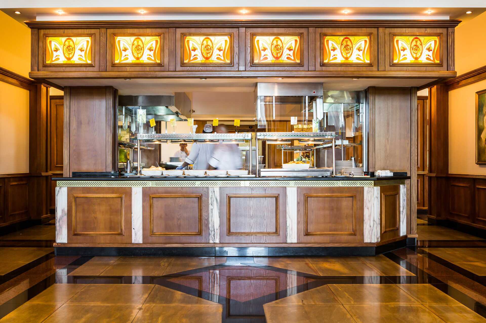 Bufférestaurant med retter fra bulgarsk mat, men også internasjonale retter, kan du spise frokost og middag. Bufférestaurant som serverer tradisjonelle bulgarske grillretter. À la carte-restauranten Blue Lagoon har sjømatretter på menyen. Pent antrekk, menn må ha langbukser til middag. Bar, poolbar og strandbar.