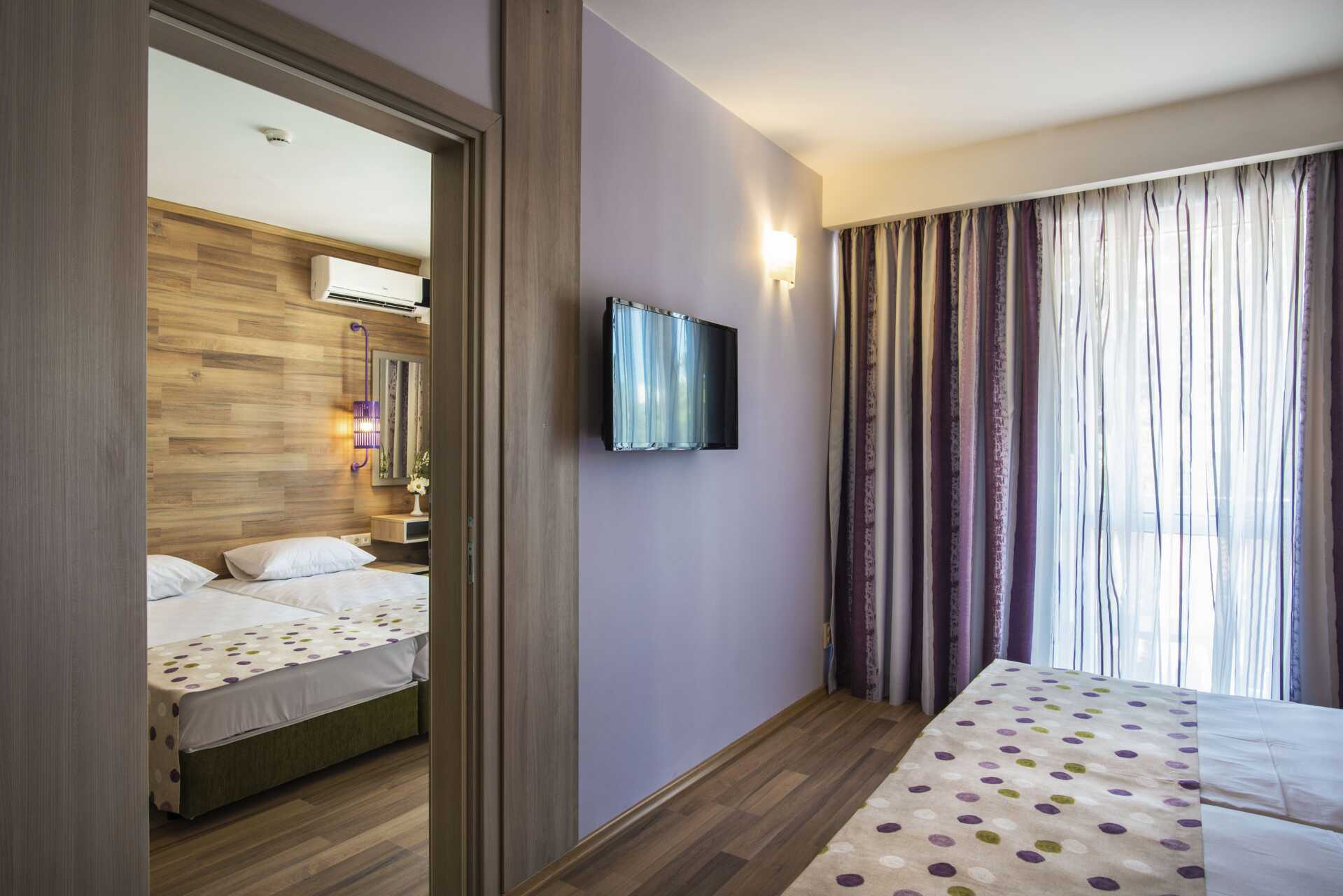 Familierom med balkong. Familierommene ligger i hotellets sidebygning. Familierommet består av to dobbeltrom. To enkeltsenger i hvert rom. Wifi, luftkondisjonering og safe inkludert. Kjøleskap. Vannkoker samt kaffe og te. TV. Hårføner. Baderom med dusj og wc. Rengjøring 7 ggr/uke.