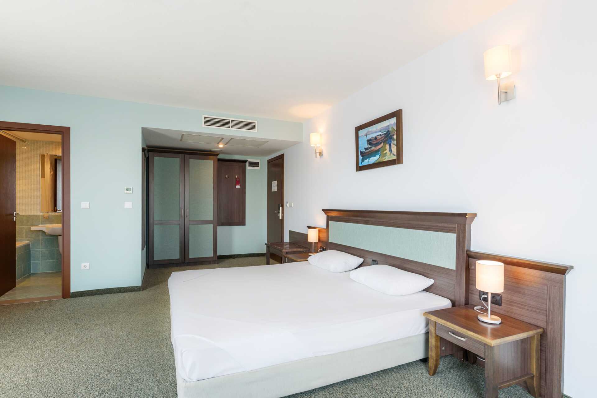 Dobbeltrom med balkong eller terrasse. En dobbeltseng eller to enkeltsenger. Mulig med en ekstraseng i en sovesofa eller i en oppredbar lenestol. Wifi og luftkondisjonering inkludert. Vegg-til-vegg-teppe. Kjøleskap. TV. Hårføner. Dusj og wc. Rengjøring 7 ggr/uke.