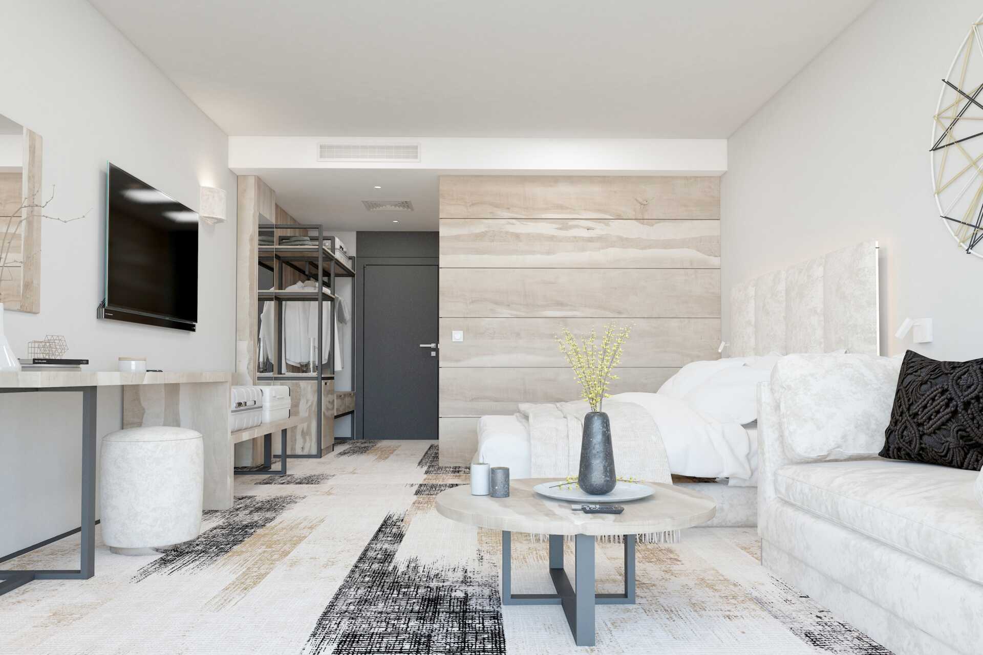 Dobbeltrom med balkong eller terrasse, noen med begrenset havutsikt. To enkeltsenger. Mulig med en ekstraseng i sovesofa. Wifi og luftkondisjonering inkludert. TV. Vegg-til-vegg-teppe Hårføner. Dusj og wc. Rengjøring 7 ggr/uke.