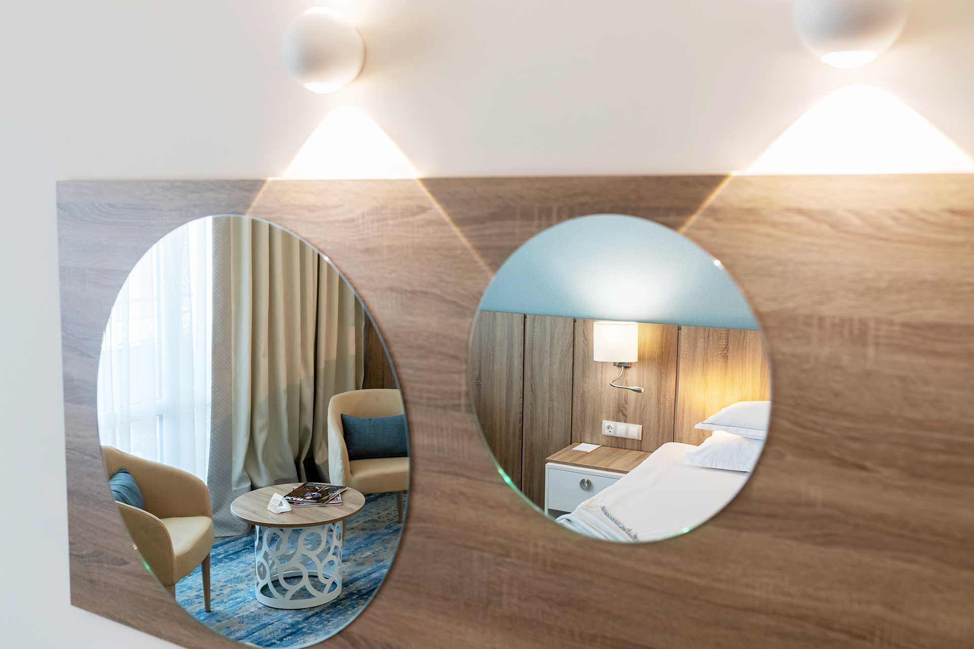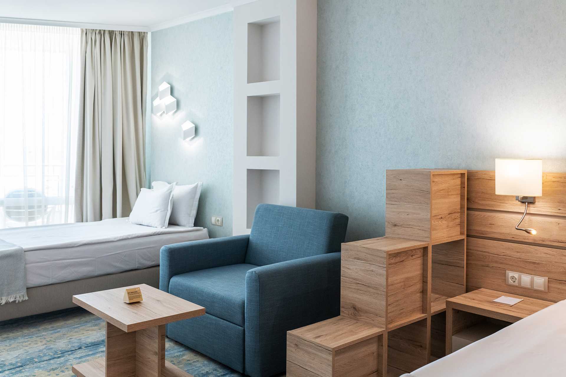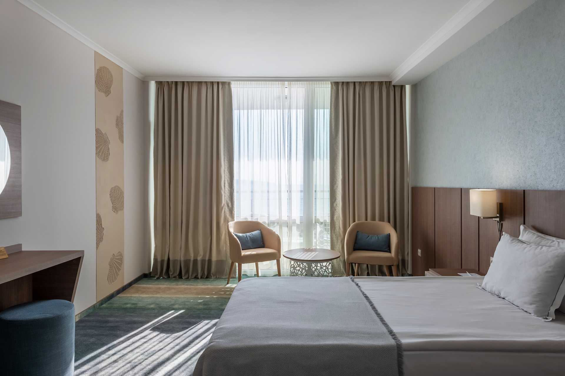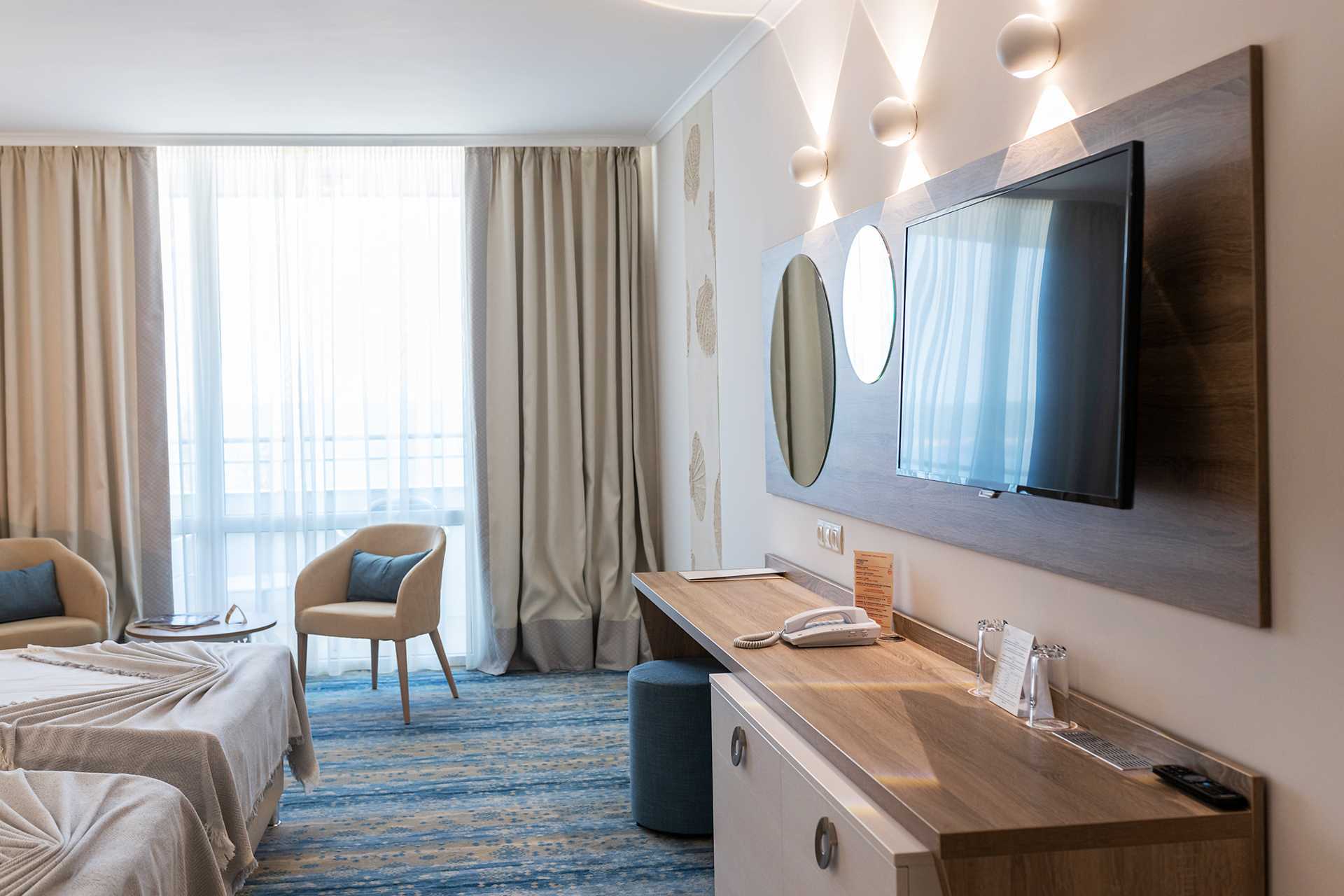 Superiorrom med balkong, noen med havutsikt. Rommene ligger i hotellets hovedbygning. To enkeltsenger. Mulig med ekstraseng i enkeltseng eller i sovesofa/opredbar lenestol. Wifi, luftkondisjonering og safe inkludert. Vegg-til-vegg-teppe. Minibar. Kaffemaskin – kapsler er inkludert og etterfylles i løpet av uken. TV. Hårføner. Baderom med dusj og wc. Rengjøring 7 ggr/uke.
