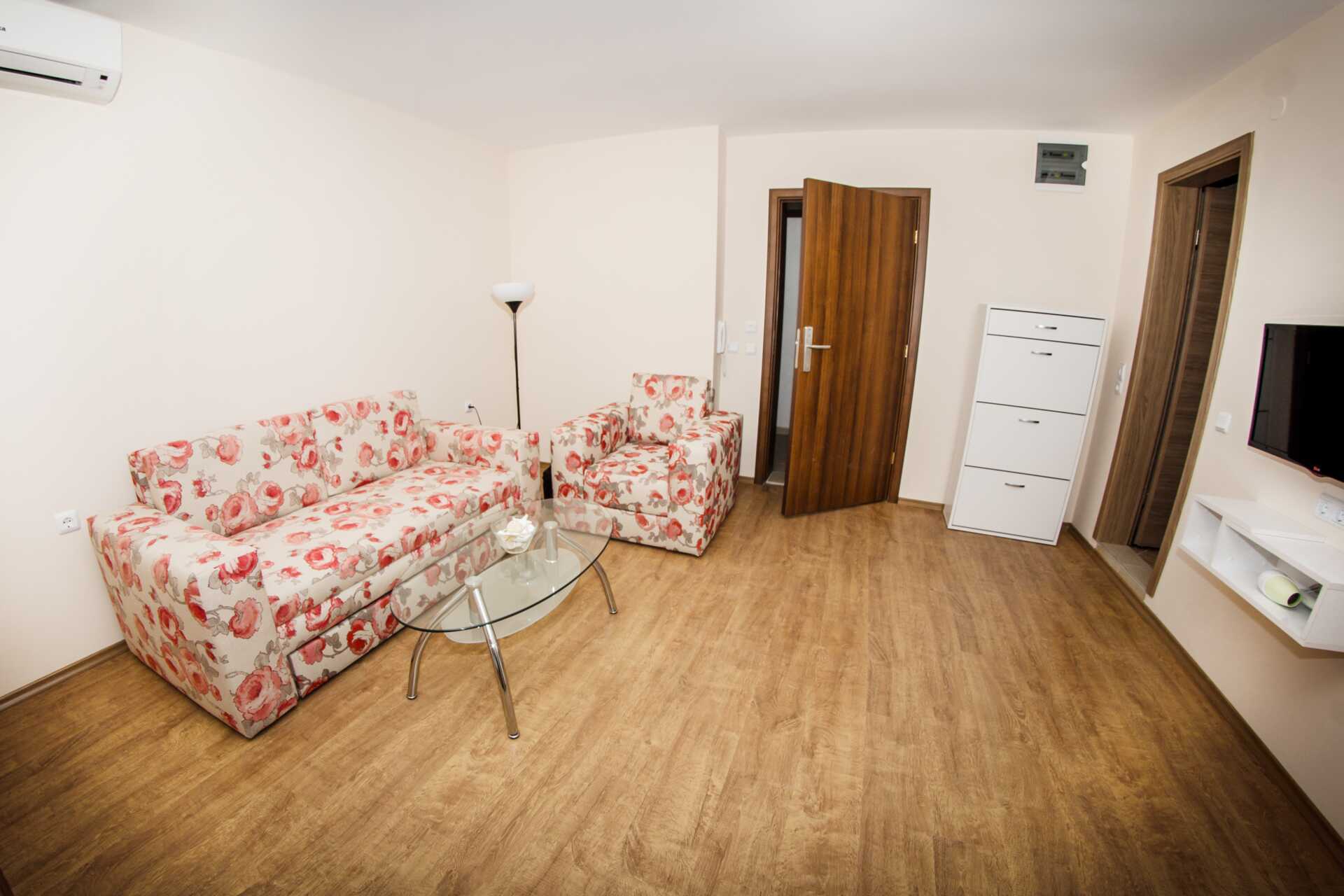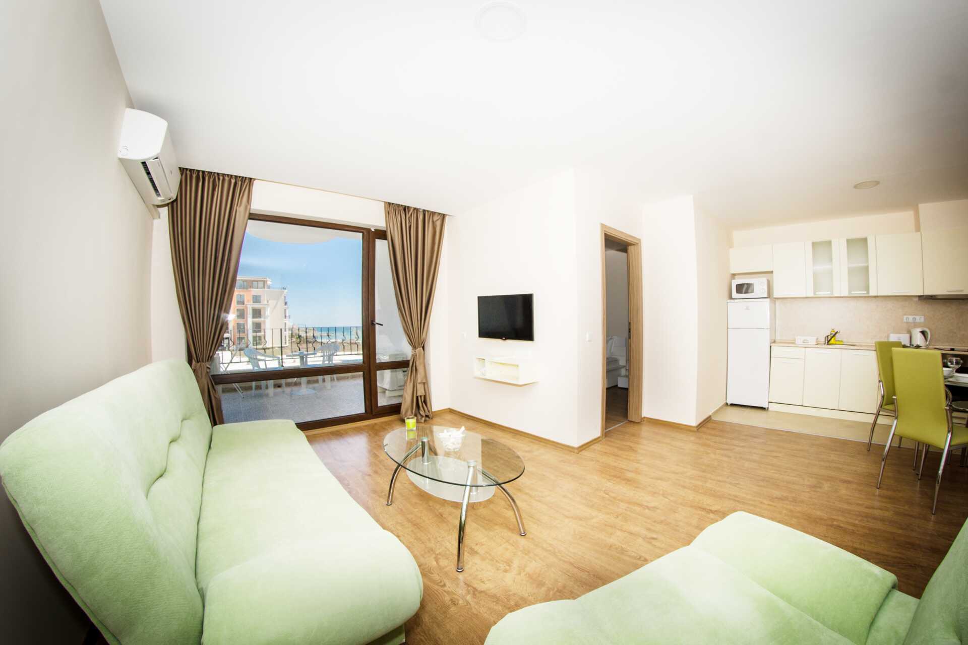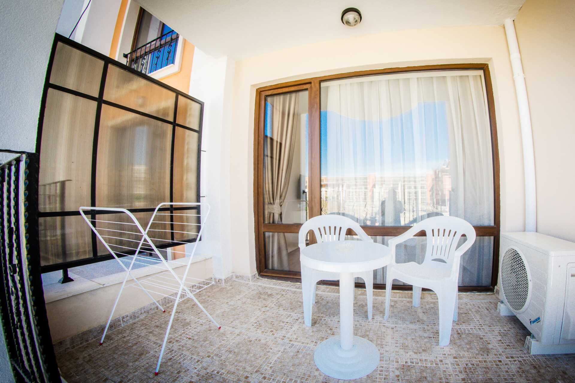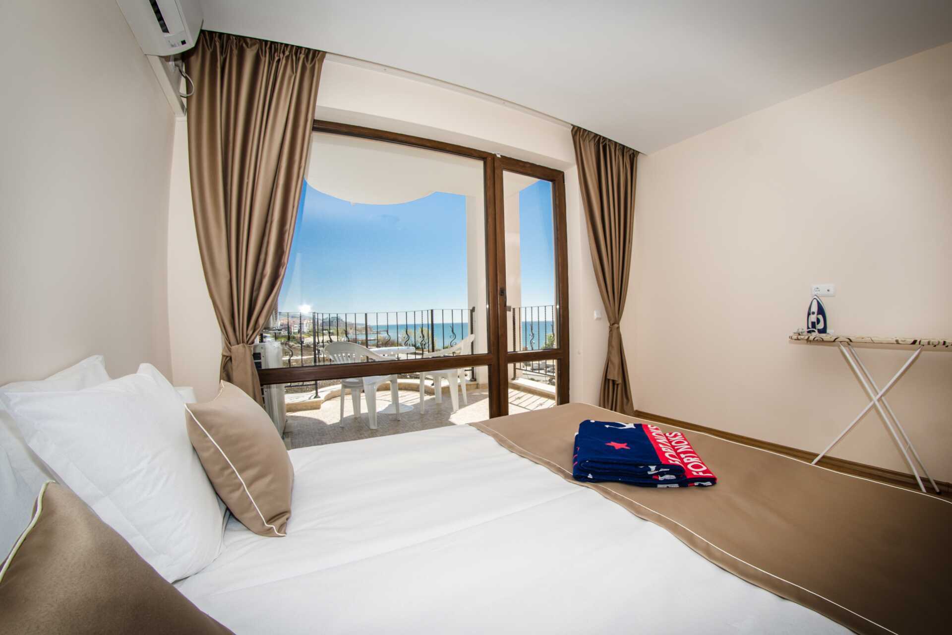Toromsleilighet med balkong. Et soverom og en stue med minikjøkken. En dobbeltseng. Mulig med ekstraseng i sovesofa. Minikjøkken med kokeplater, vifte, kjøleskap, vannkoker, brødrister, mikrobølgeovn og enkel kjøkkenutstyr. Noen av leilighetene har også stekeovn. Wifi, luftkondisjonering og safe inkludert. TV. Vaskemaskin. Strykejern og strykebrett. Hårføner. Baderom med dusj og wc. Rengjøring 7 ggr/uke.