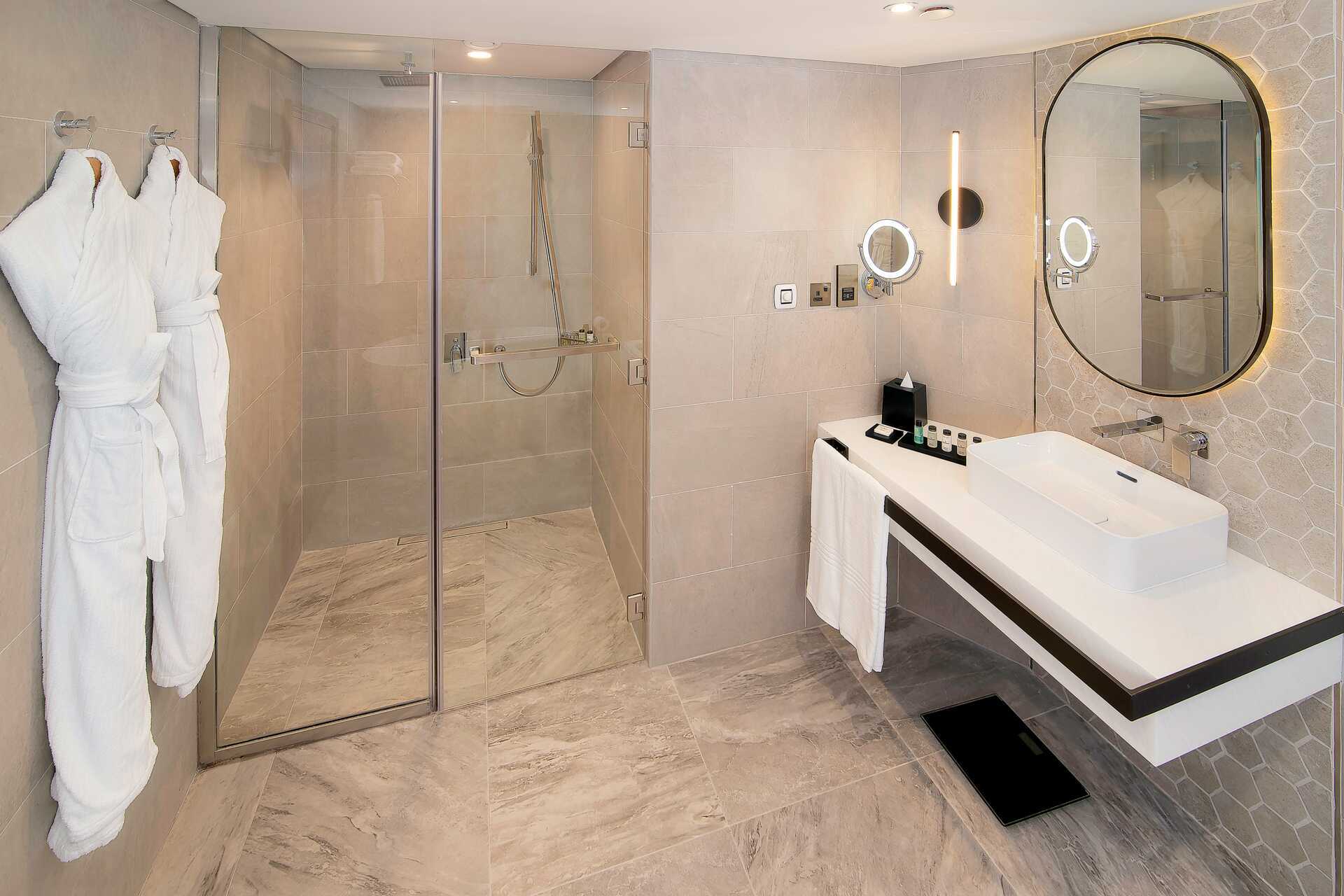 Dobbeltrom med fransk balkong, noen med utsikt over hotellområdet. En dobbeltseng. Mulig med ekstraseng. Wifi, luftkondisjonering og safe inkludert. Minibar. Vannkoker samt kaffe og te. TV. Strykejern og strykebrett. Badekåper. Dusj og wc, hårføner. Rengjøring 7 ggr/uke.