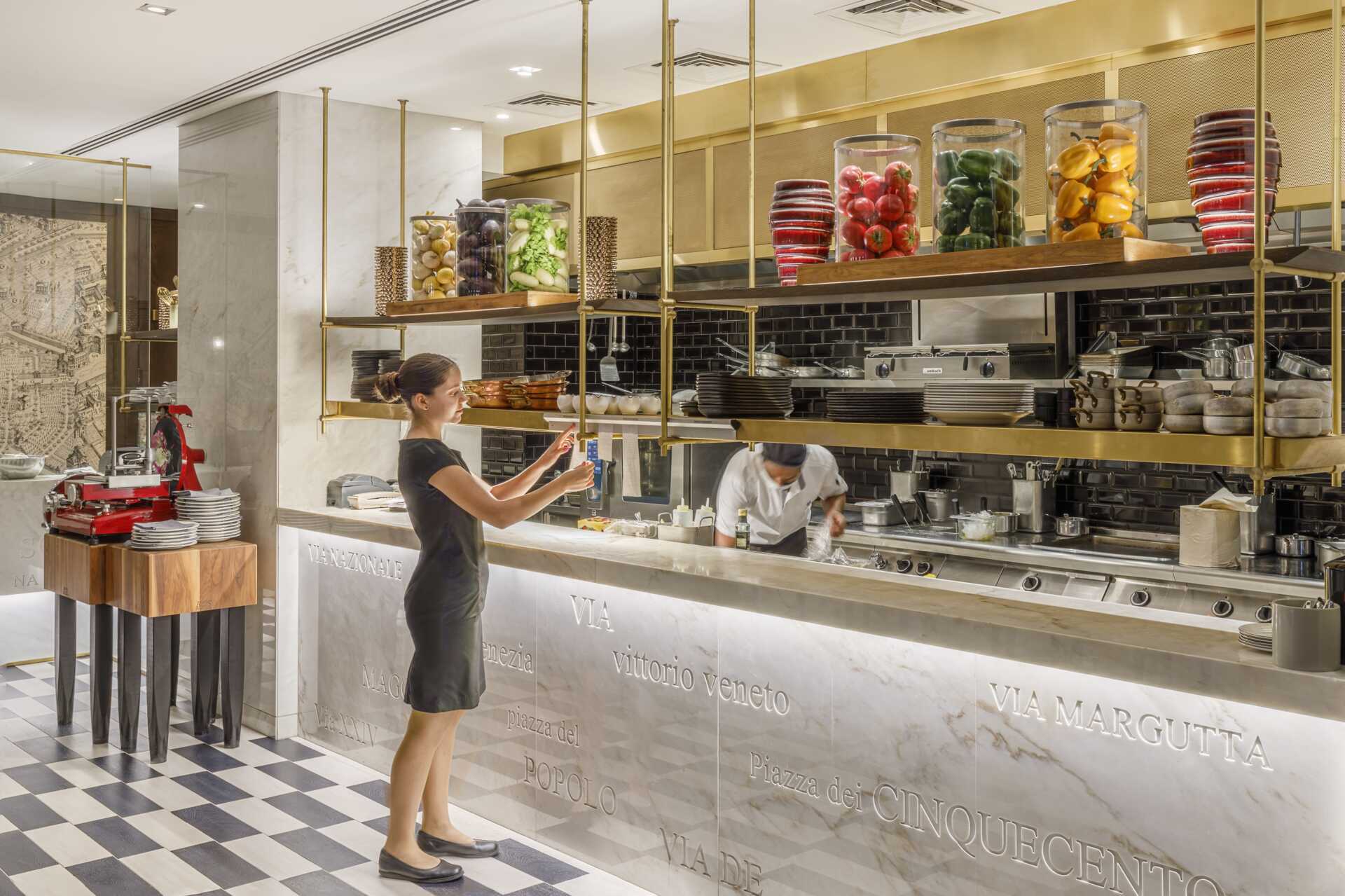 Gjester med halvpensjon kan spise enten i restauranten Salt & Pepper eller Morgan's Gastro Pub. Alternativt kan du spise i restauranten Gusto d'Italia og få 100 DHR i rabatt på regningen.