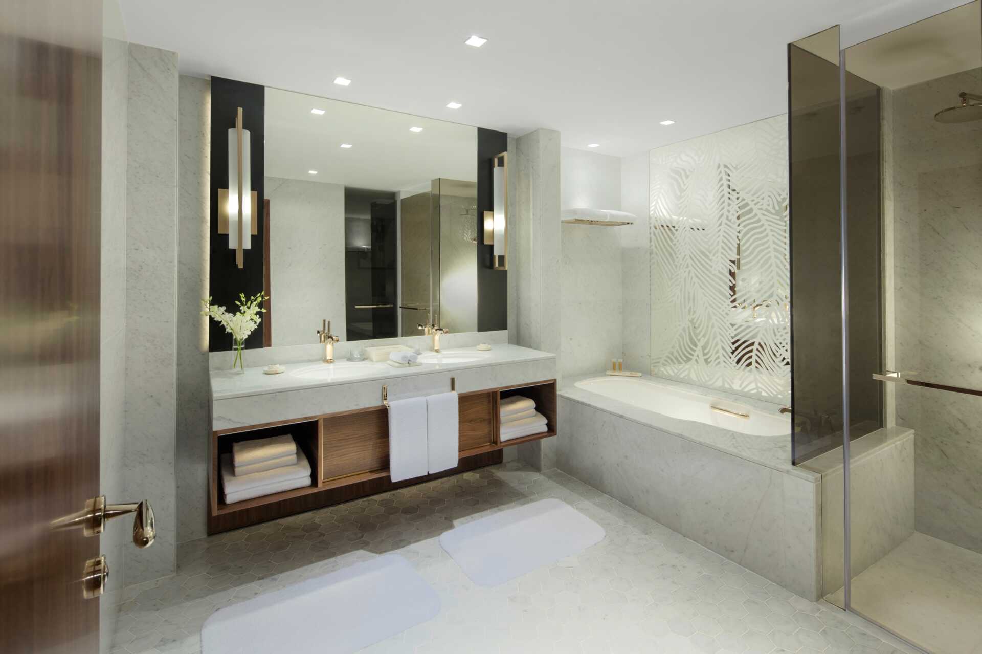 Clubrom, noen med utsikt over Dubais silhuett. Rommene har ikke uteplass. En dobbeltseng eller to enkeltsenger. Mulig med ekstra sengeplasser i sovesofa. Wifi, luftkondisjonering og safe inkludert. Vegg-til-vegg-teppe. Minibar. Kaffemaskin. TV. Hårføner. Baderom med badekar, dusj og wc. Rengjøring 7 ggr/uke. Barn under 2 år regnes inn i maksantallet i rommet.
