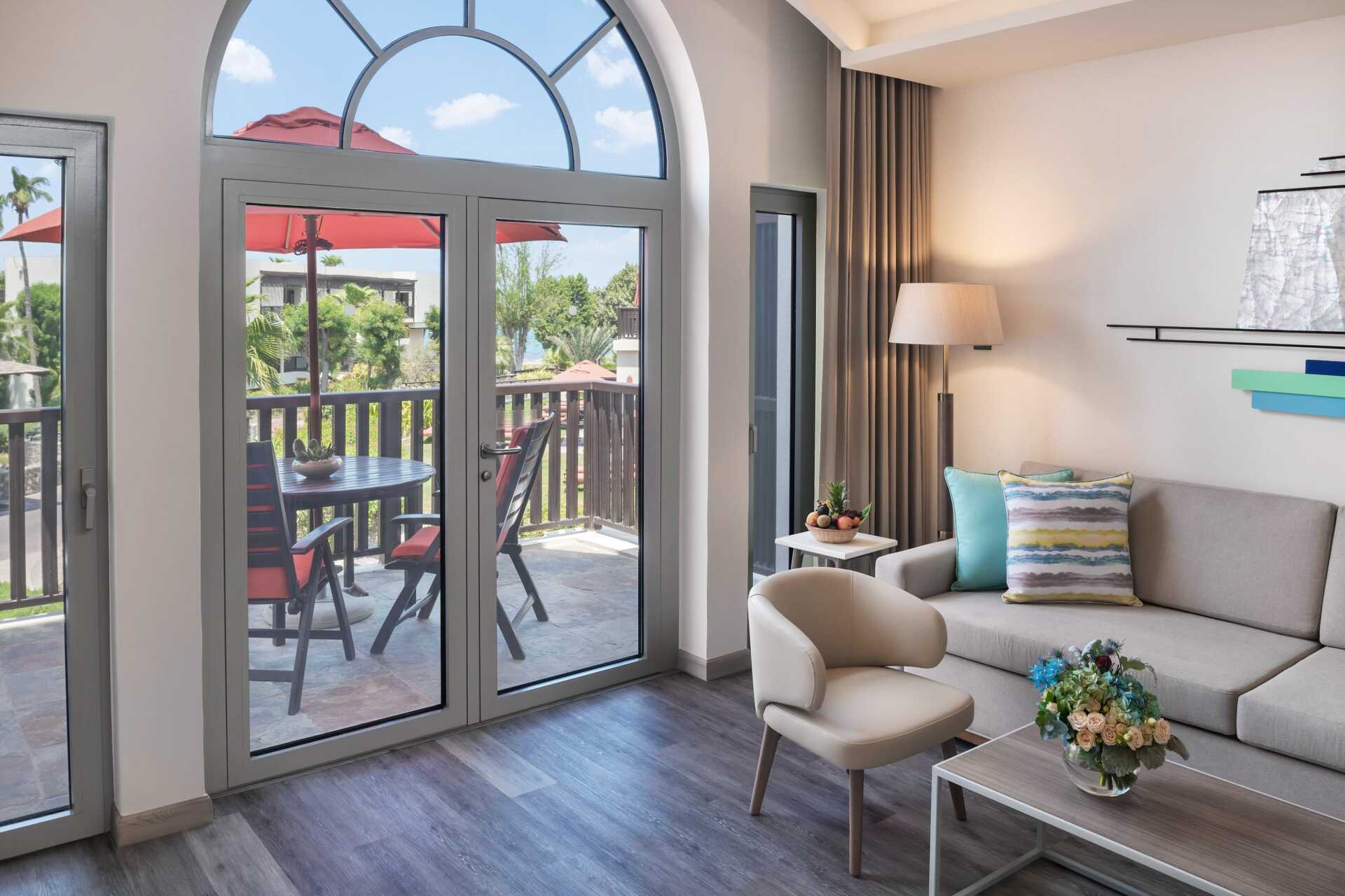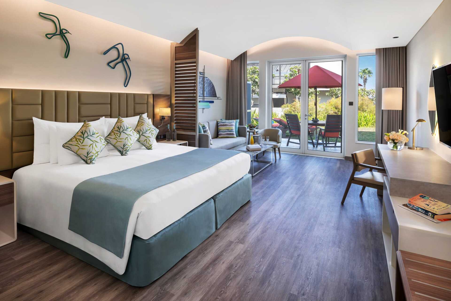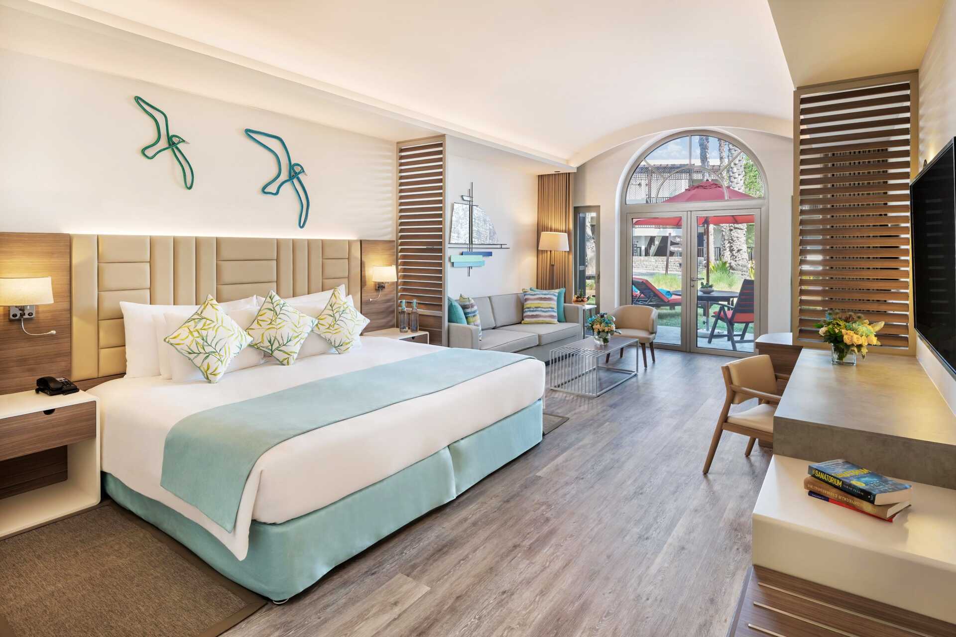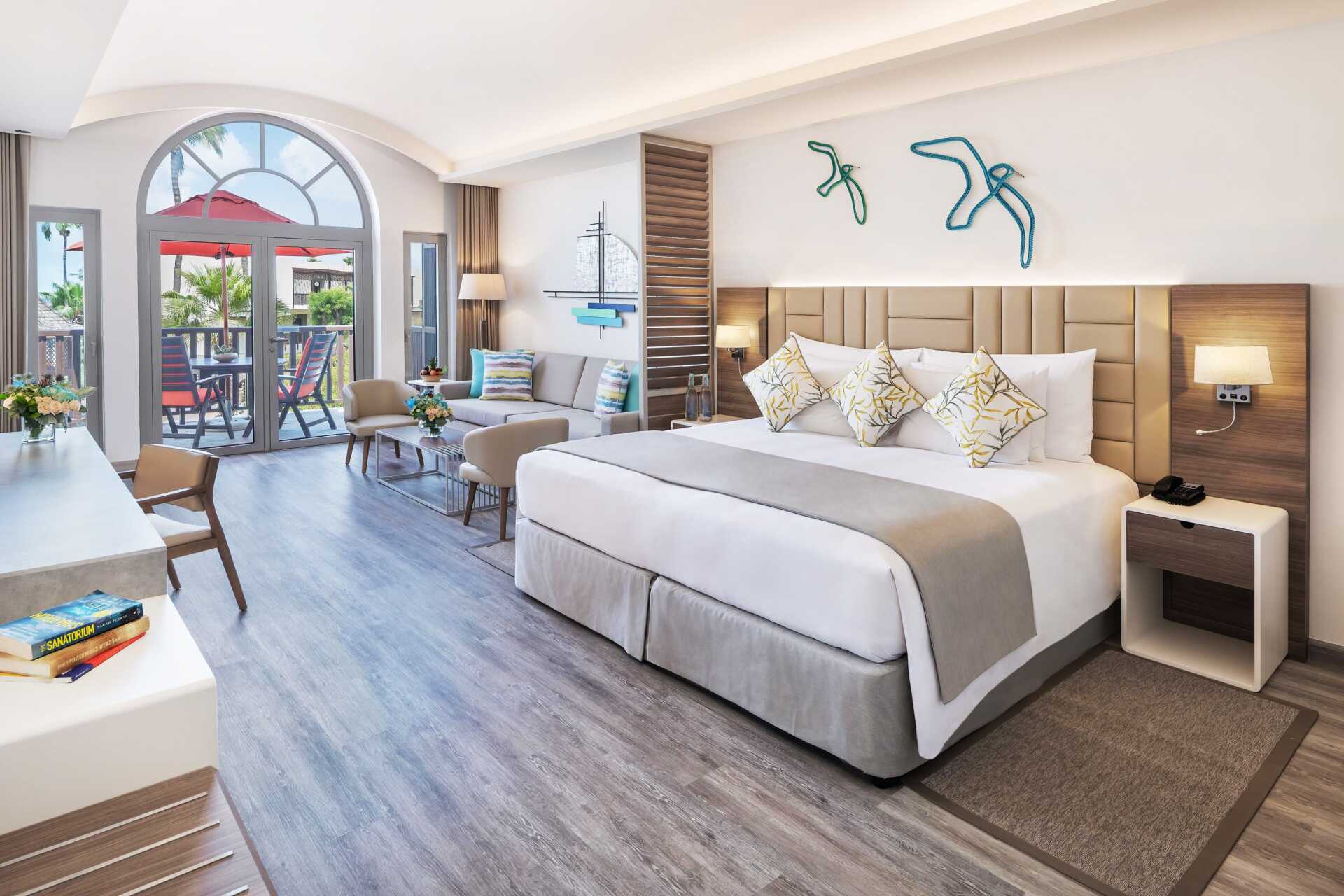 Juniorsuite premium med balkong og havutsikt eller markterrasse. En dobbeltseng eller to enkeltsenger. Mulig med en ekstraseng i sovesofa. Wifi, luftkondisjonering og safe er inkludert. Minibar. Vannkoker samt kaffe og te. TV. Badekar og wc. Rengjøring 7 ggr/uke.