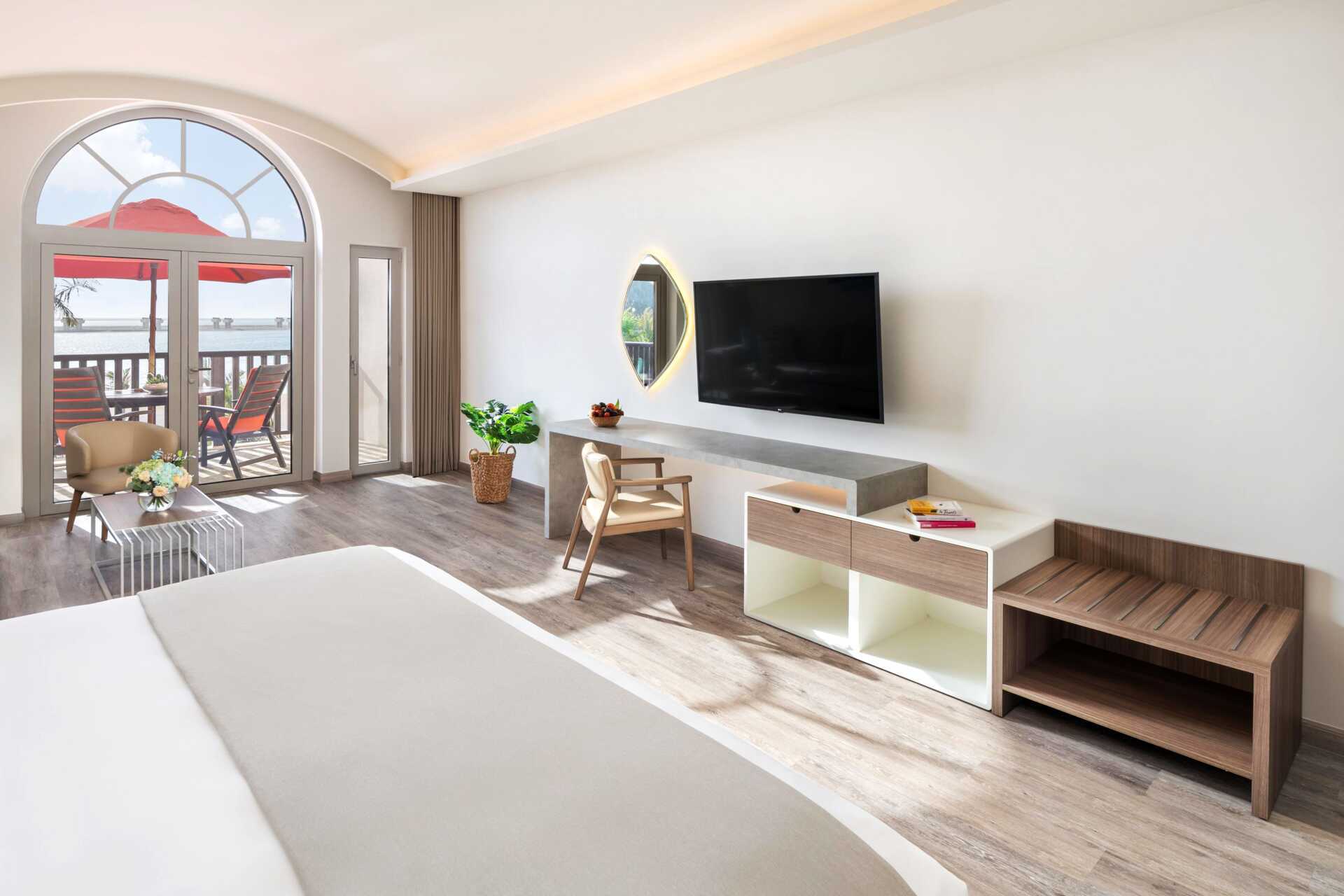 Juniorsuite med balkong. En dobbeltseng eller to enkeltsenger. Wifi, safe og luftkondisjonering inkludert. Minibar. Vannkoker samt kaffe og te. TV. Badekar og wc. Rengjøring 7 ggr/uke.