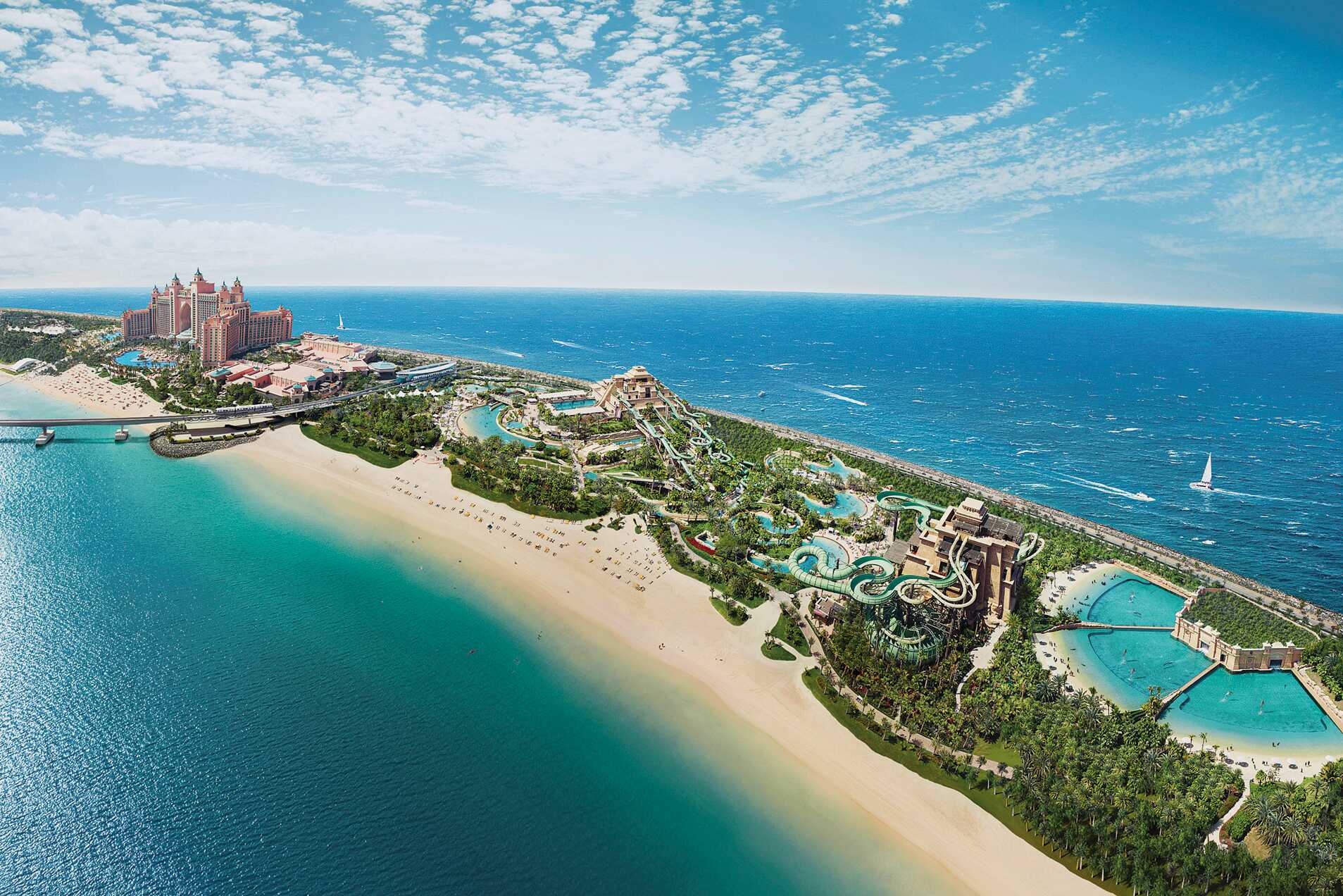 Palm Jumeirah er Dubais enorme, palmeformede øy med en stor wow-faktor. Det er en av verdens største kunstige øyer, og har en 4,5 kilometer lang stamme, en krone med 17 blader og alt er omgitt av en ringformet øy. Langs «bladene» står villaer og hus på rekke og rad, mens hotellene våre på Palm Jumeirah ligger på den ringformede ytre barrieren. Ytterst, som kronen på verket, ligger det ikoniske Atlantis The Palm Hotel og nykommeren Atlantis The Royal, et arkitektonisk underverk.