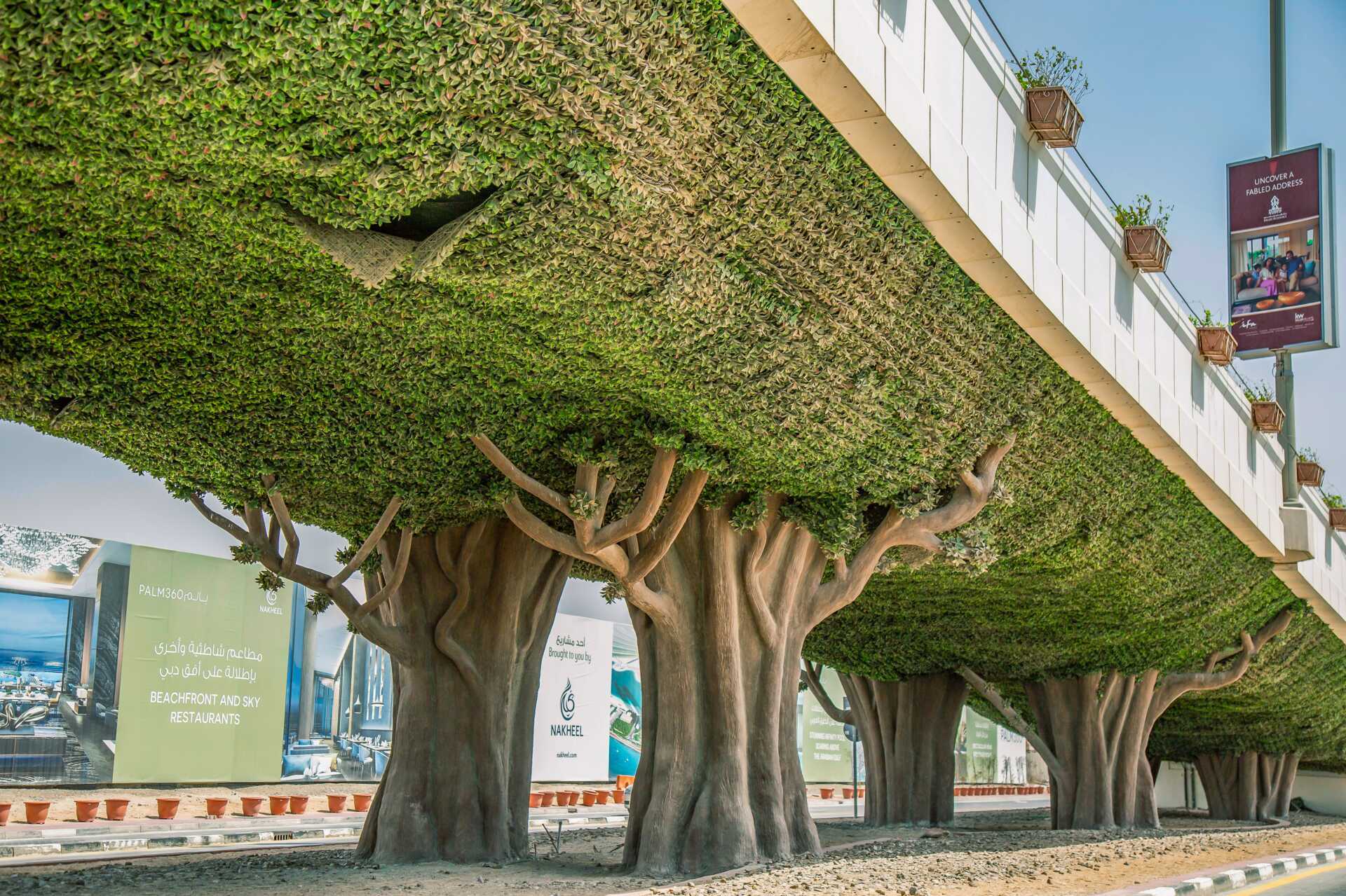 Fra fastlandet går en fem kilometer monorail hele veien over stammen og helt ut til Atlantis the Palm. Det er Midtøstens første monorail. Palm Jumeirah er en del av et byggeprosjekt der to like, og mye større øyer – Palm Jebel Ali og Palm Deira – skal plasseres langs kysten av Dubai. Palm Jebel Ali har allerede overtatt tittelen som verdens største kunstige øy fra sin mindre søster. Fra Palm Jumeirah er det cirka 15 kilometer til Dubai Marina og 30 kilometer til Dubai Downtown.