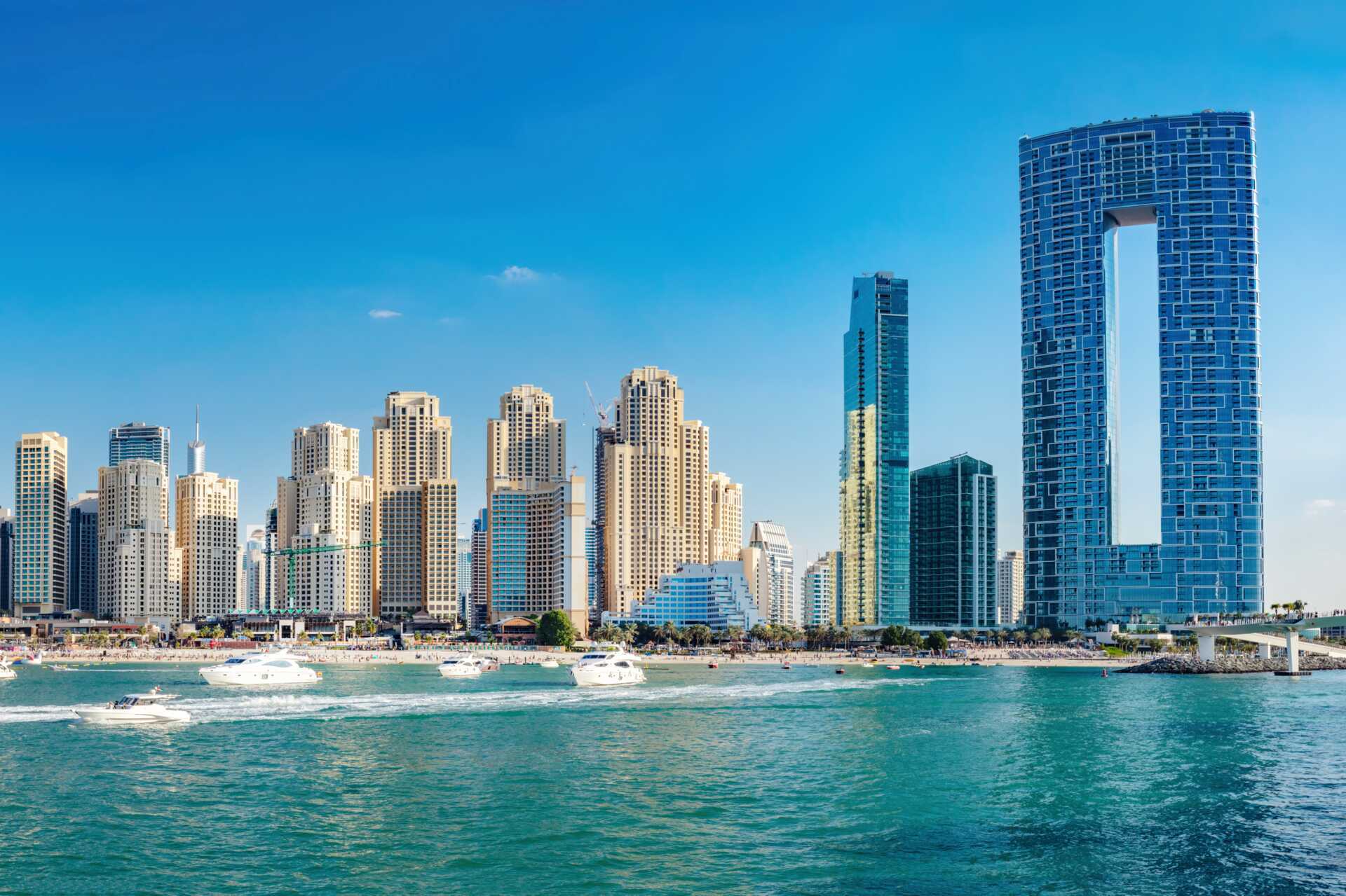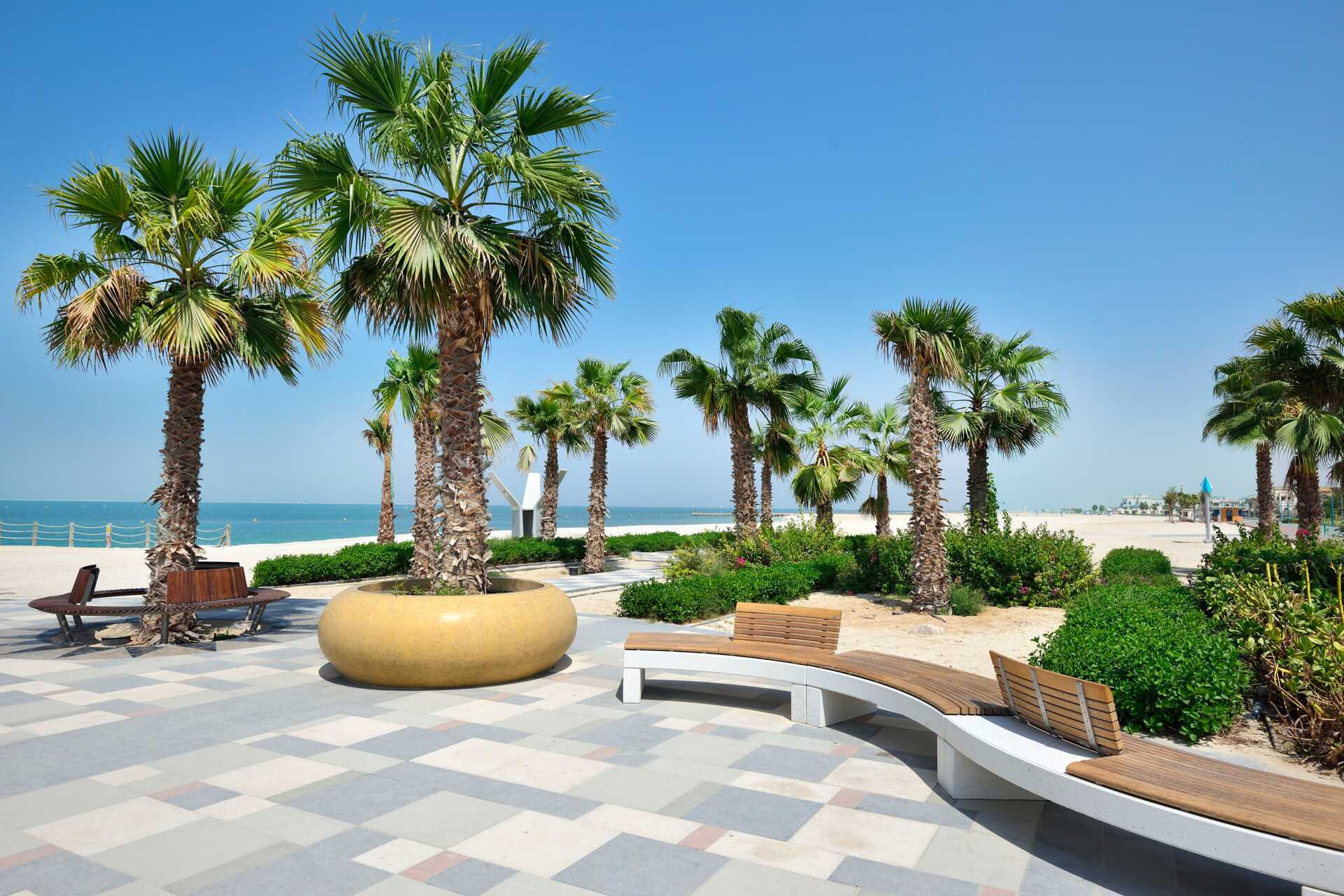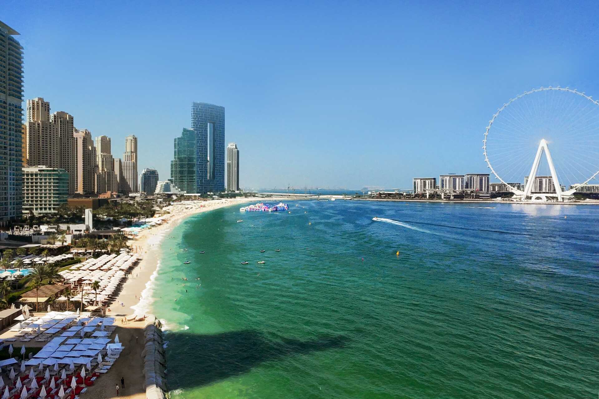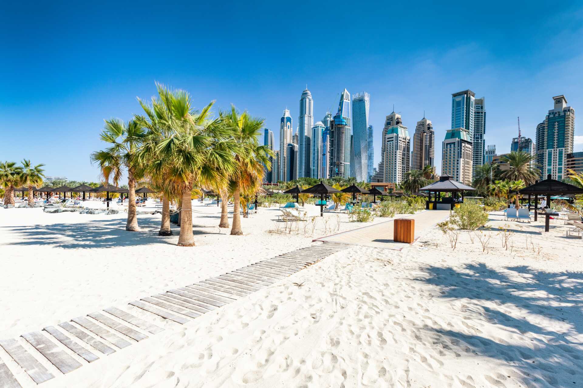 Jumeirah Beach og Dubai Marina er en inspirerende badeby med en nydelig, hvit sandstrand. I motsetning til andre deler av Dubai er avstandene alltid korte, og det er lett å gå rundt i sentrum uten å måtte ta taxi.