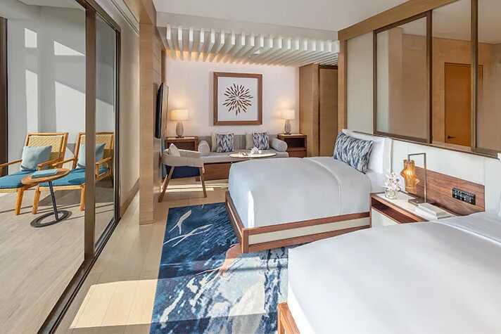 Dobbeltrom med markterrasse eller balkong. En eller to dobbeltsenger. Mulig med ekstrasenger i sovesofa. Wifi, luftkondisjonering og safe inkludert. Minibar. Nespresso kaffemaskin, kapsler inkludert og etterfylles daglig. TV. Hårføner. Bad med to servanter, badekar, separat dusj og wc. Rengjøring 7 ganger/uke.