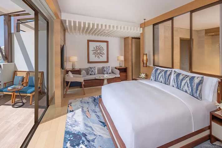 Deluxerom med markterrasse eller balkong. En eller to dobbeltsenger. Mulig med ekstrasenger i sovesofa. Wifi, luftkondisjonering og safe inkludert. Minibar. Nespresso kaffemaskin, kapsler inkludert og etterfylles daglig. TV. Hårføner. Bad med to servanter, badekar, separat dusj og wc. Rengjøring 7 ganger/uke.