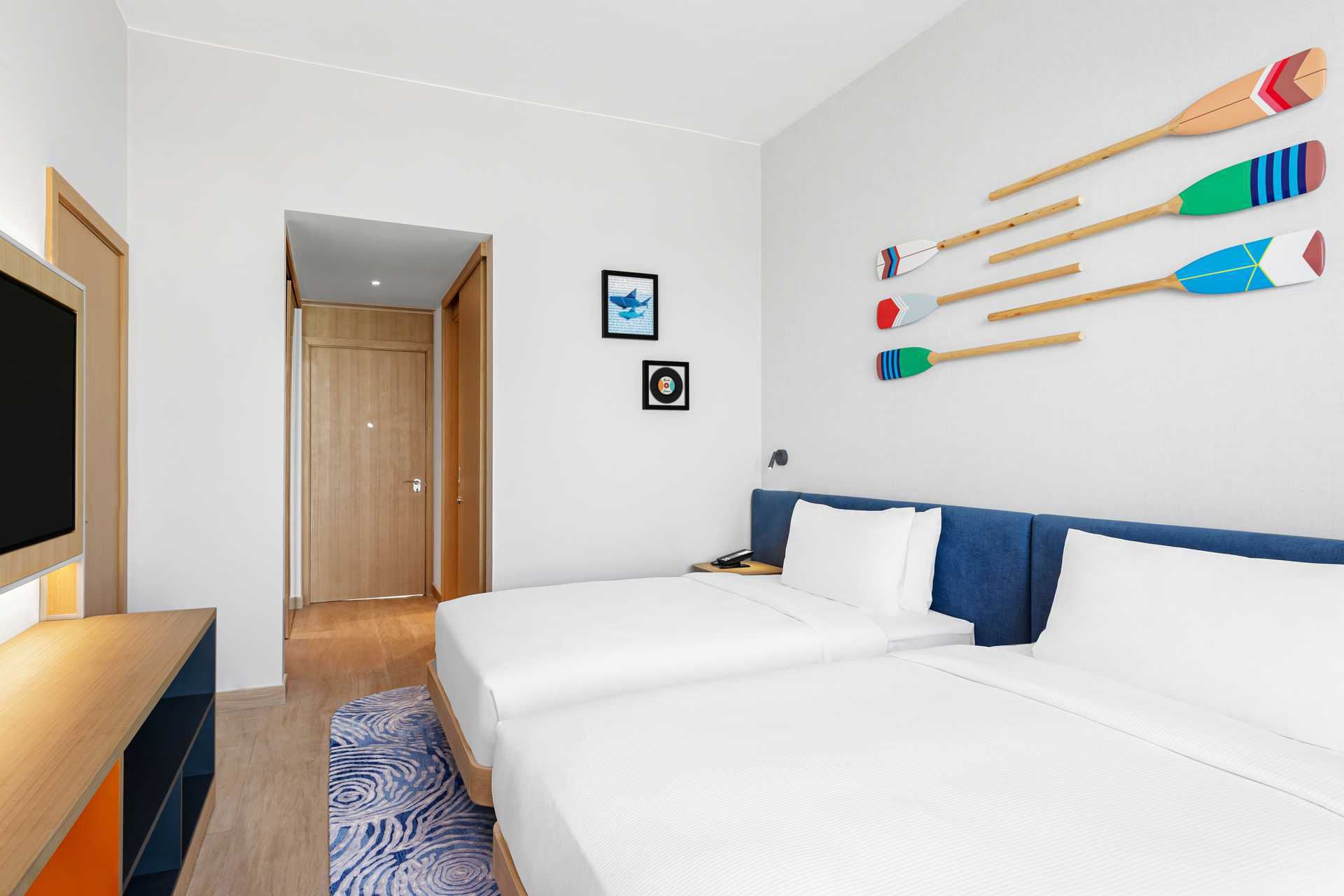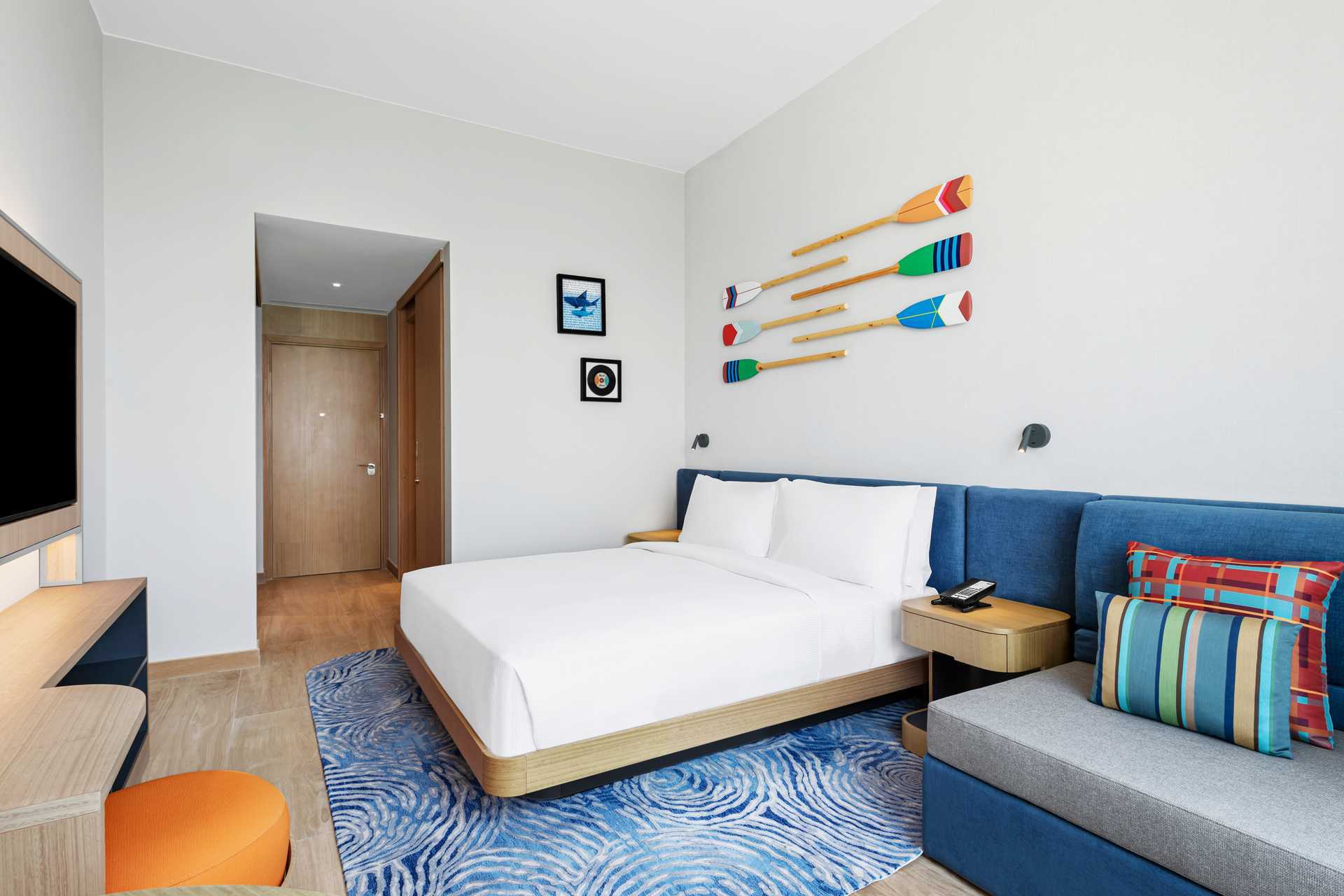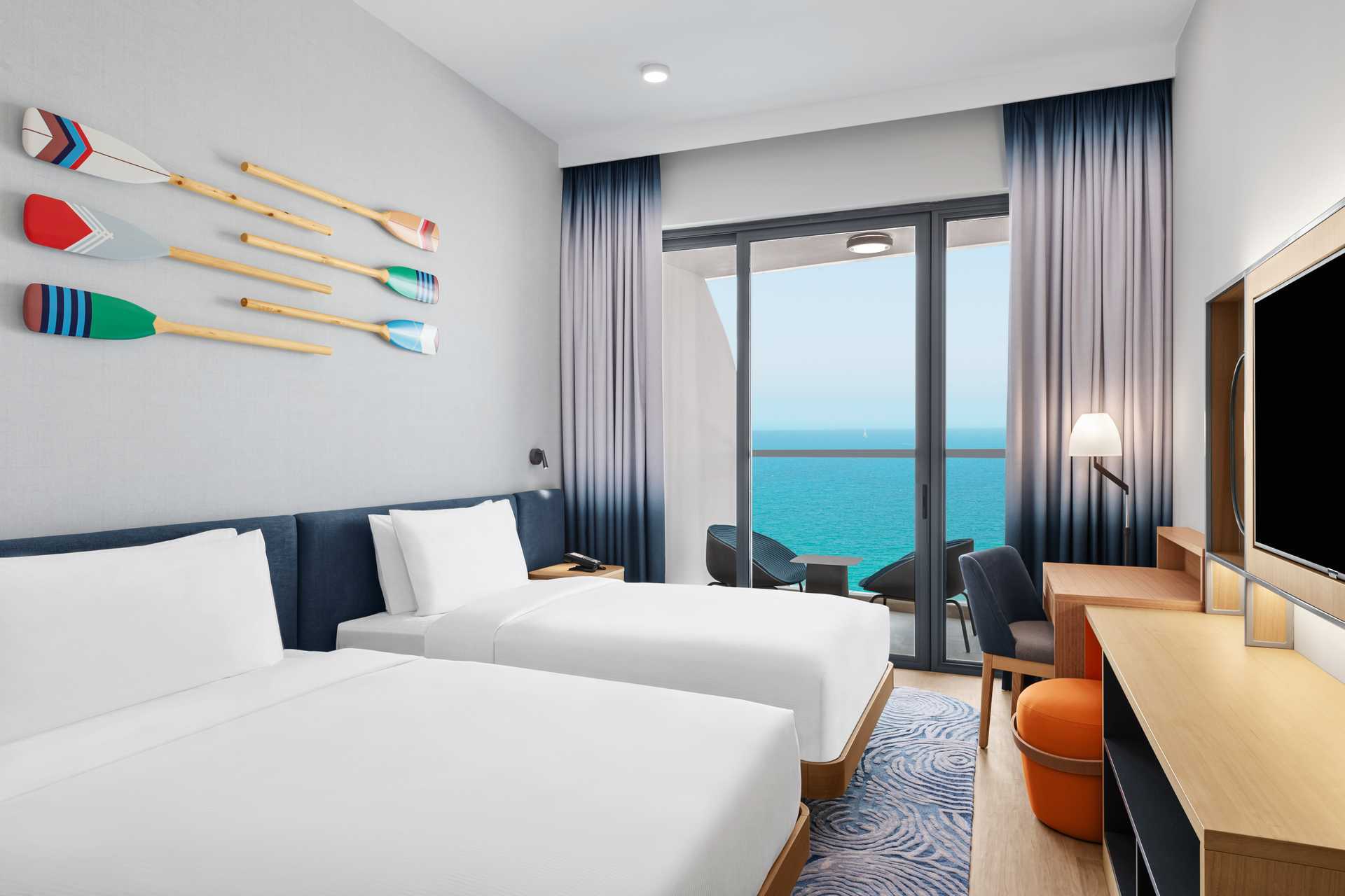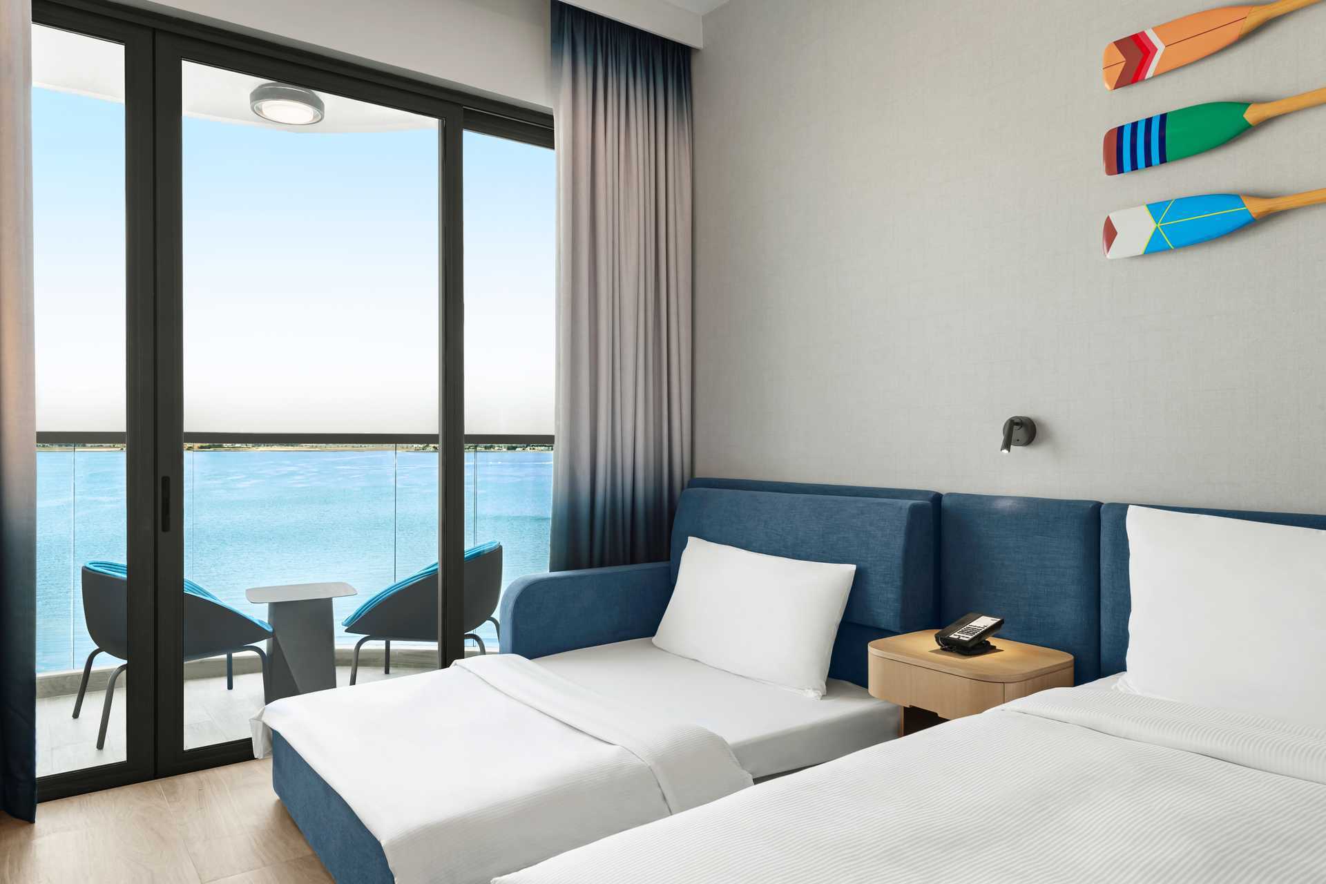 Deluxerom med balkong og havutsikt. Rommene ligger høyt opp i bygningen. En dobbeltseng eller to enkeltsenger. Mulig med ekstraseng i sovesofa, eller deler av ordinære senger. Wifi, luftkondisjonering og safe inkludert. Kjøleskap. TV. Strykejern og strykebrett. Hårføner. Dusj og wc. Rengjøring 7 ggr/uke.