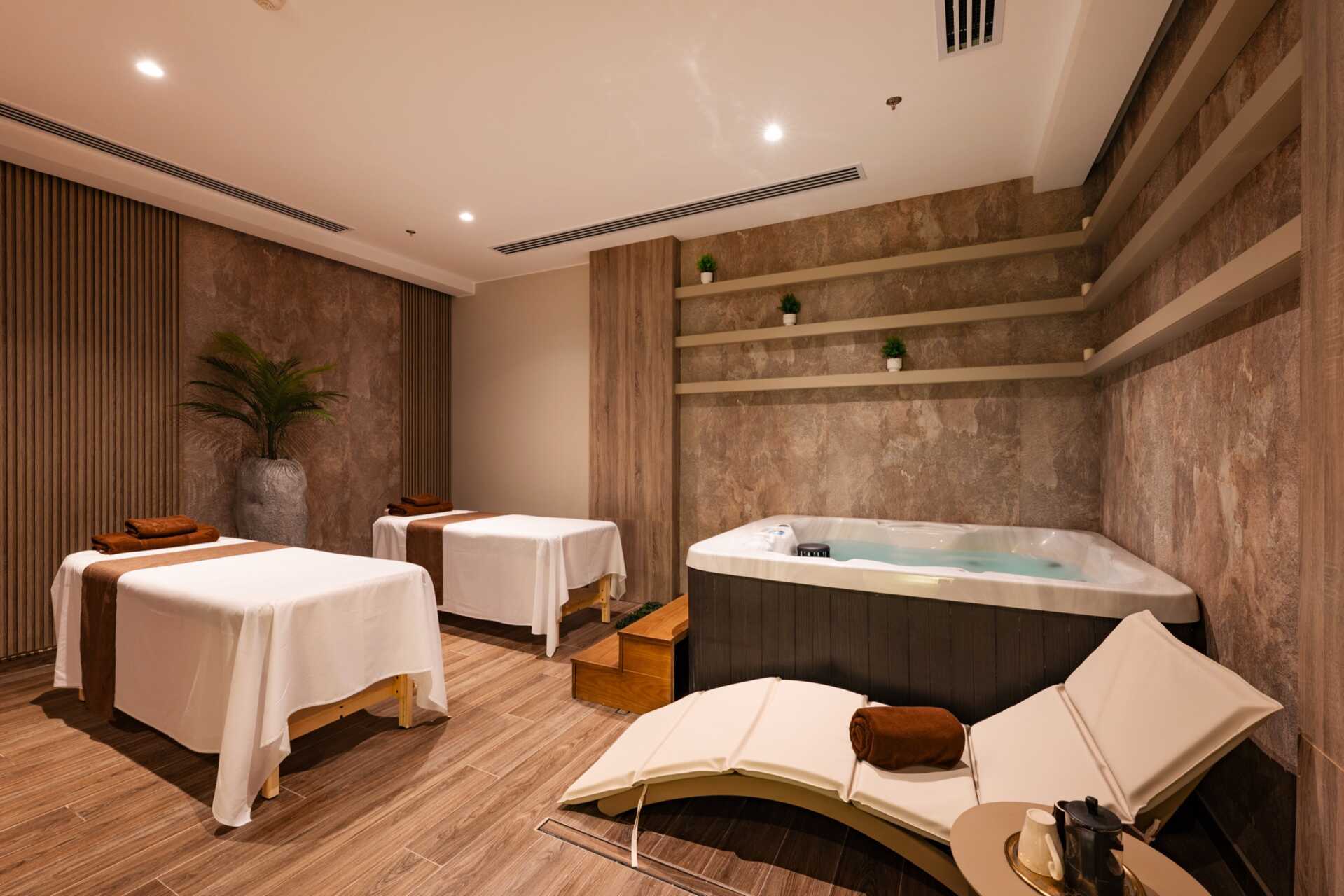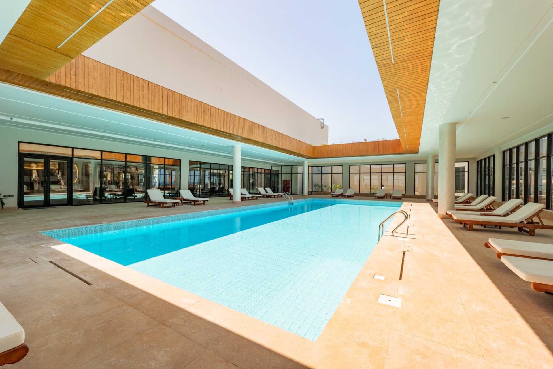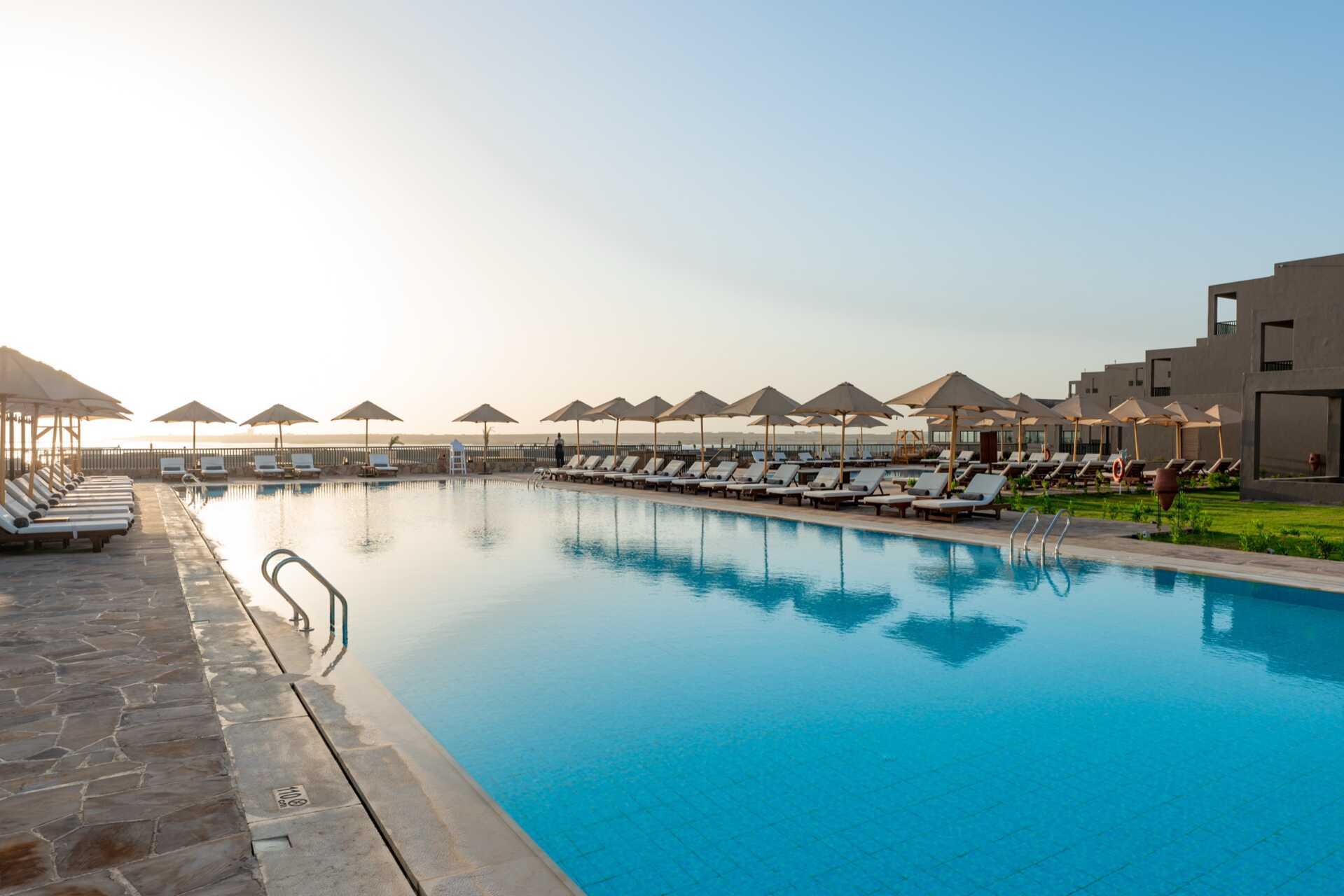 På hotellet er det to basseng, hvorav det ene er et relaxbasseng som varmes opp til 22 grader om vinteren. Merk at temperaturen i bassenget kan synke noen grader om morgenen, kvelden og i dårlig vær. Det er også et badeland med flere vannsklier og en kunstig lagune med saltvann. Poolbar og strandbar. Ved sjøen er det en brygge for bading og snorkling.