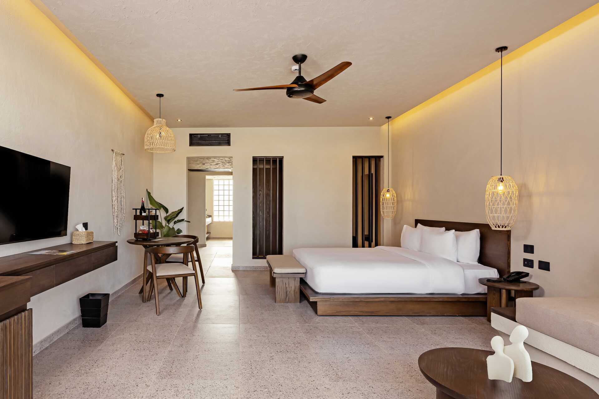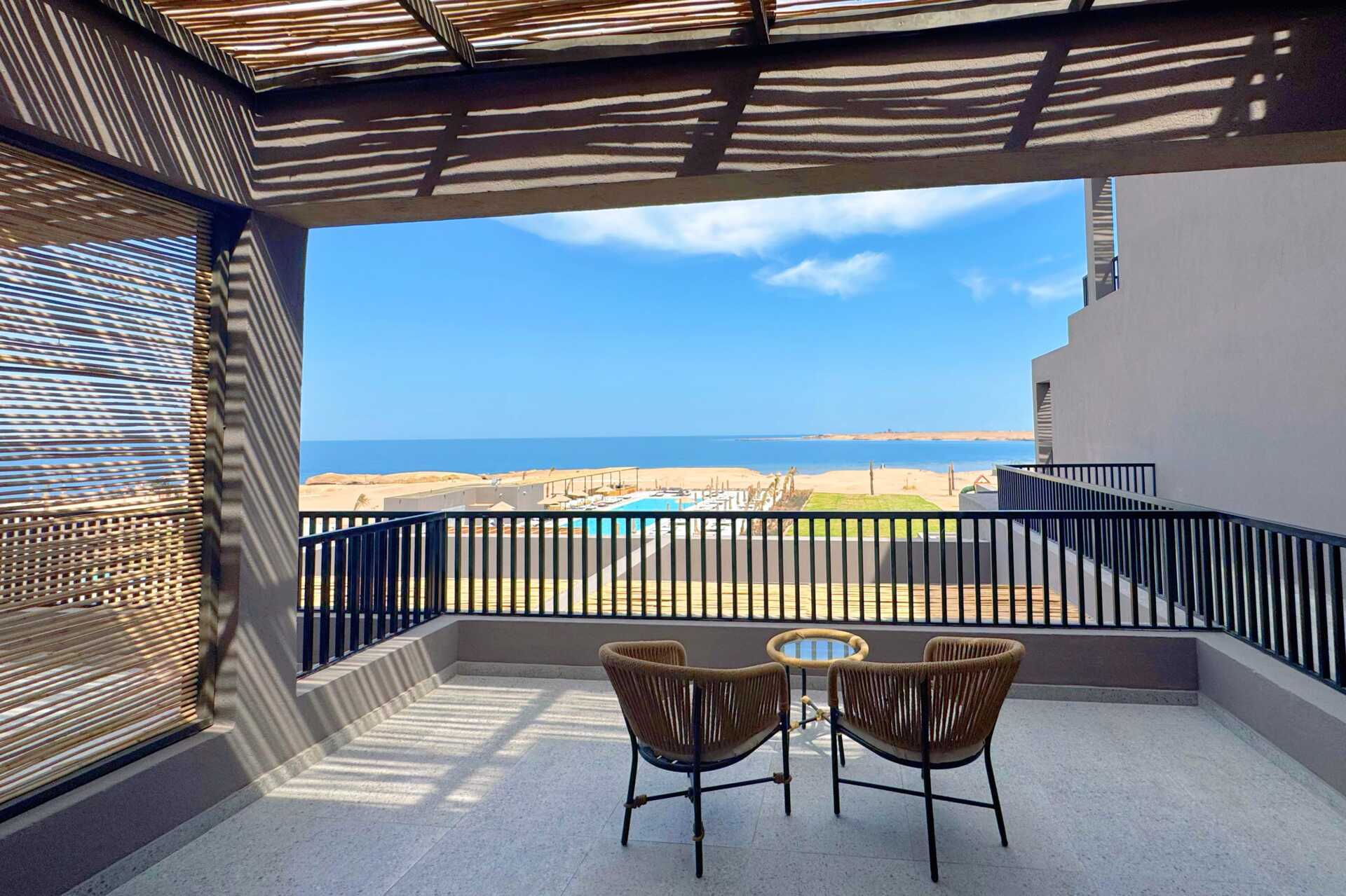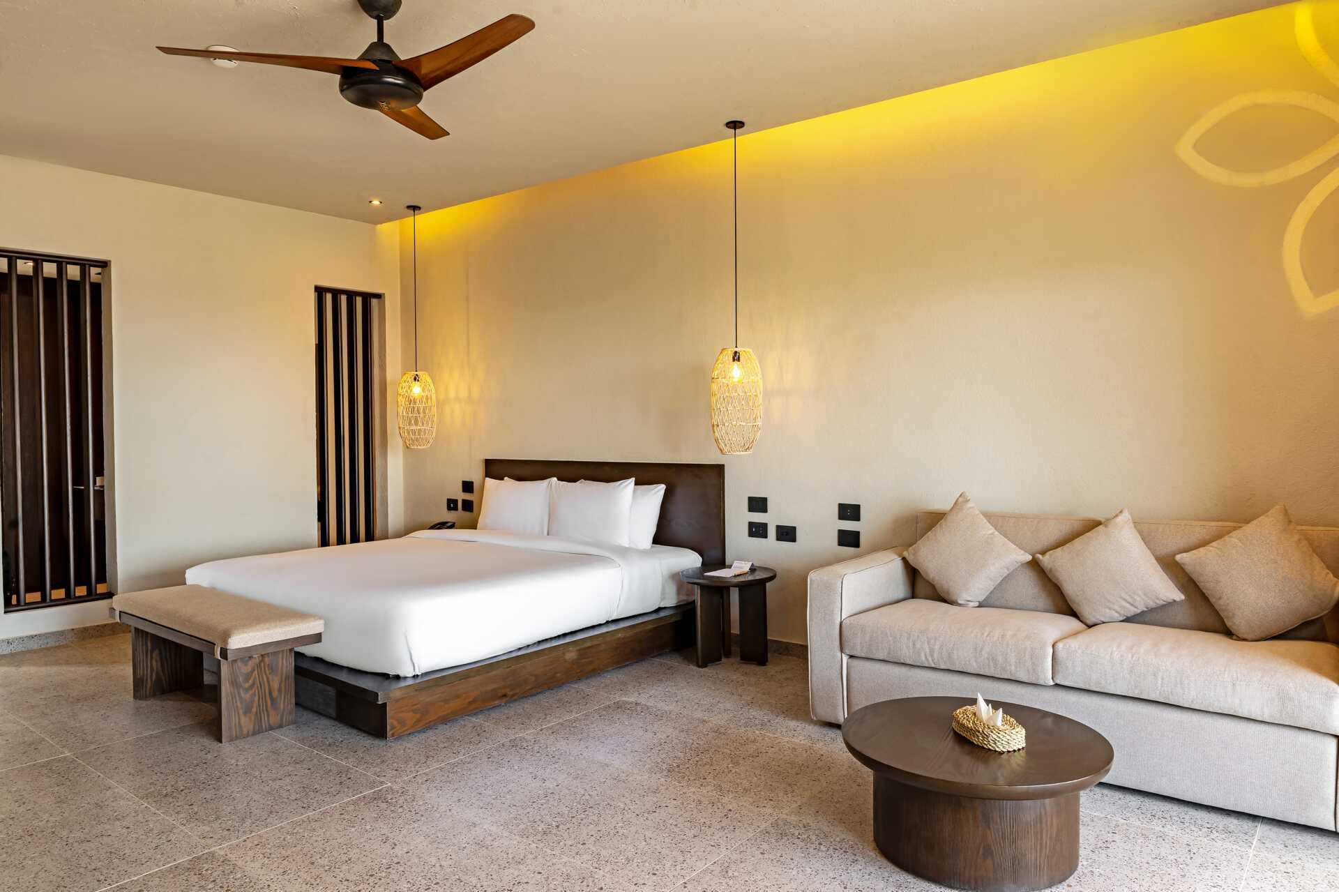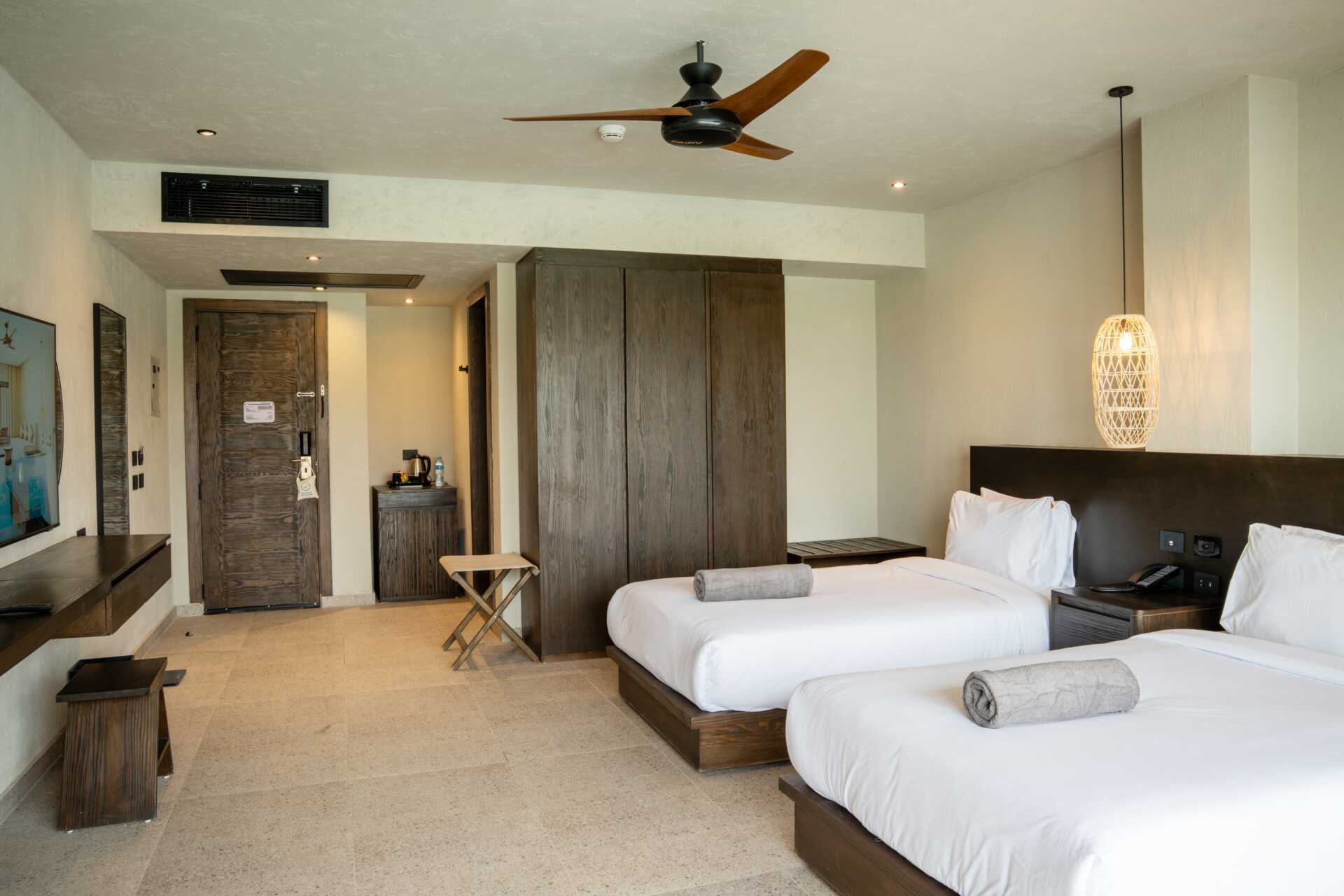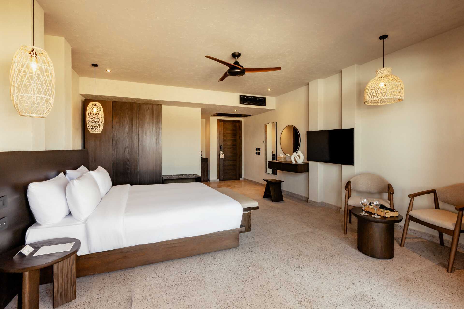 Suite med markterrasse og havutsikt. En dobbeltseng eller to enkeltsenger. Mulig med ekstrasenger i sovesofa. Wifi, luftkondisjonering og safe inkludert. Minibar. Vannkoker samt kaffe og te. TV. Hårføner. Dusj og wc. Rengjøring 7 ggr/uke.