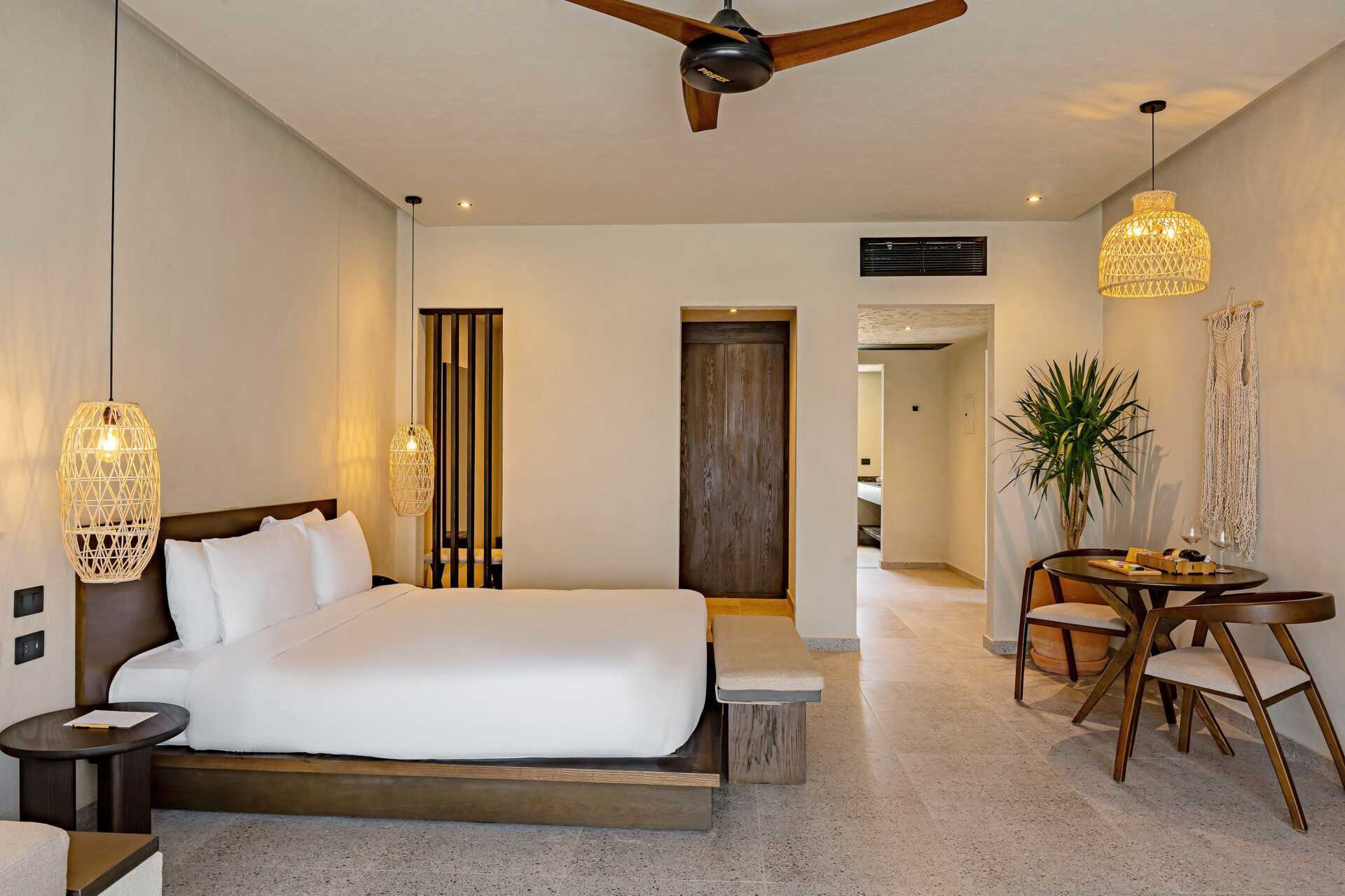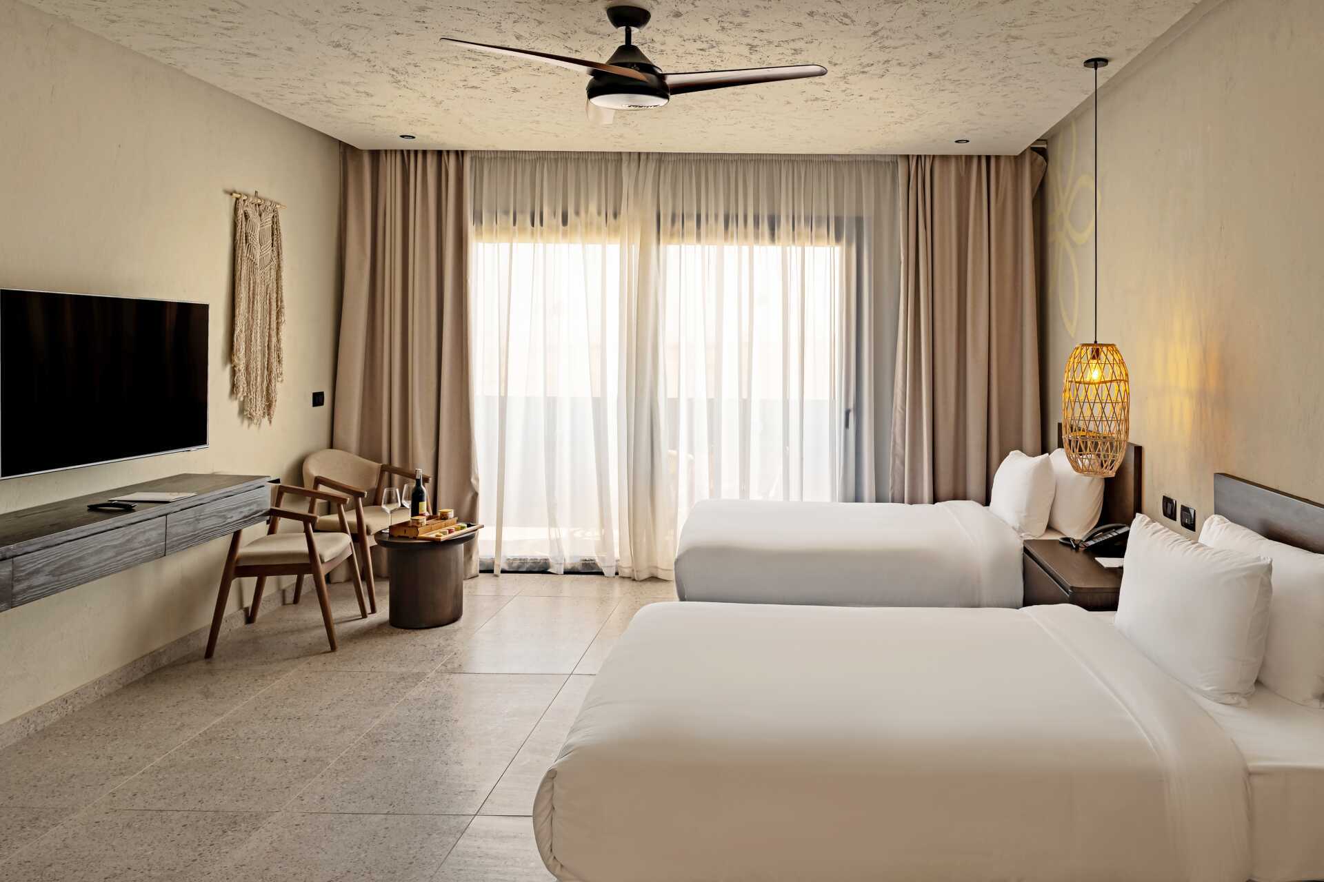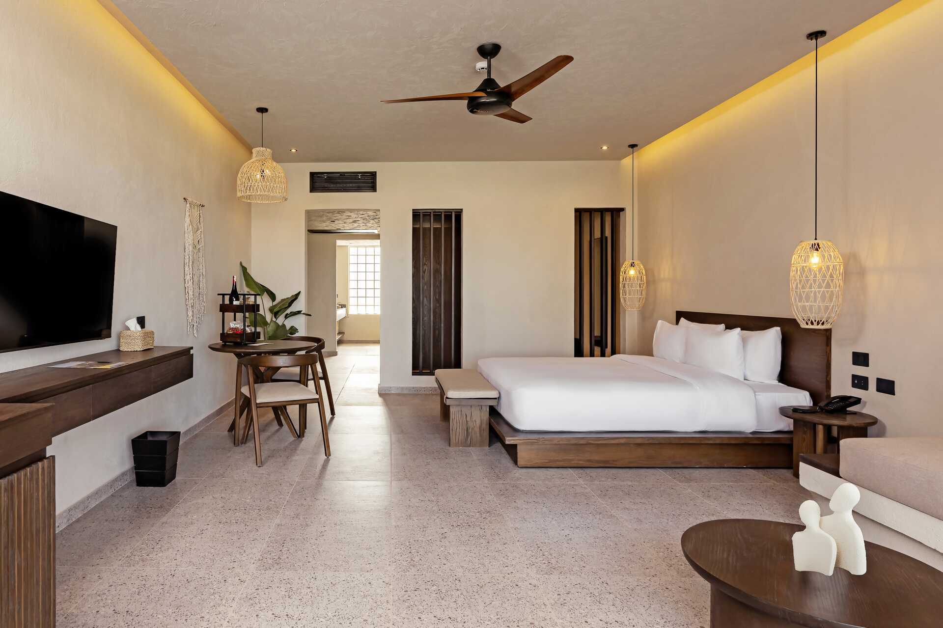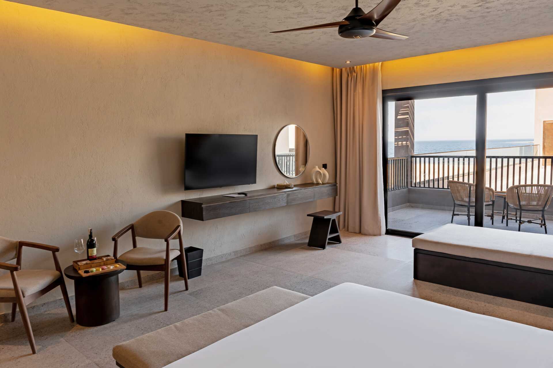 Suite med markterrasse og havutsikt. En dobbeltseng eller to enkeltsenger. Mulig med ekstrasenger i sovesofa. Wifi, luftkondisjonering og safe inkludert. Minibar. Vannkoker samt kaffe og te. TV. Hårføner. Dusj og wc. Rengjøring 7 ggr/uke.