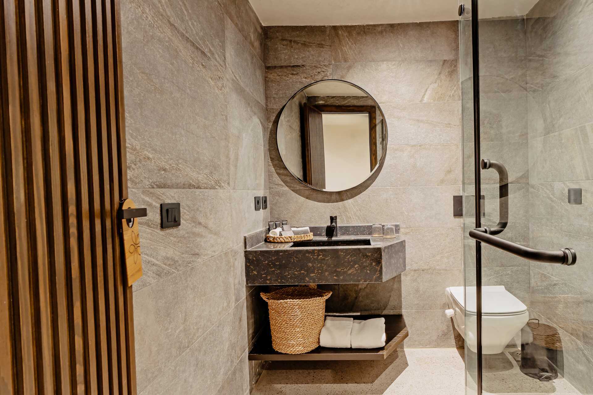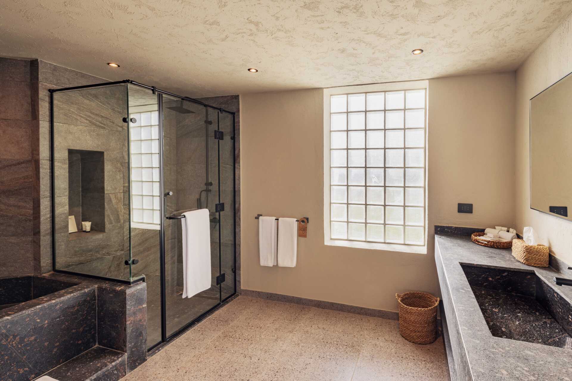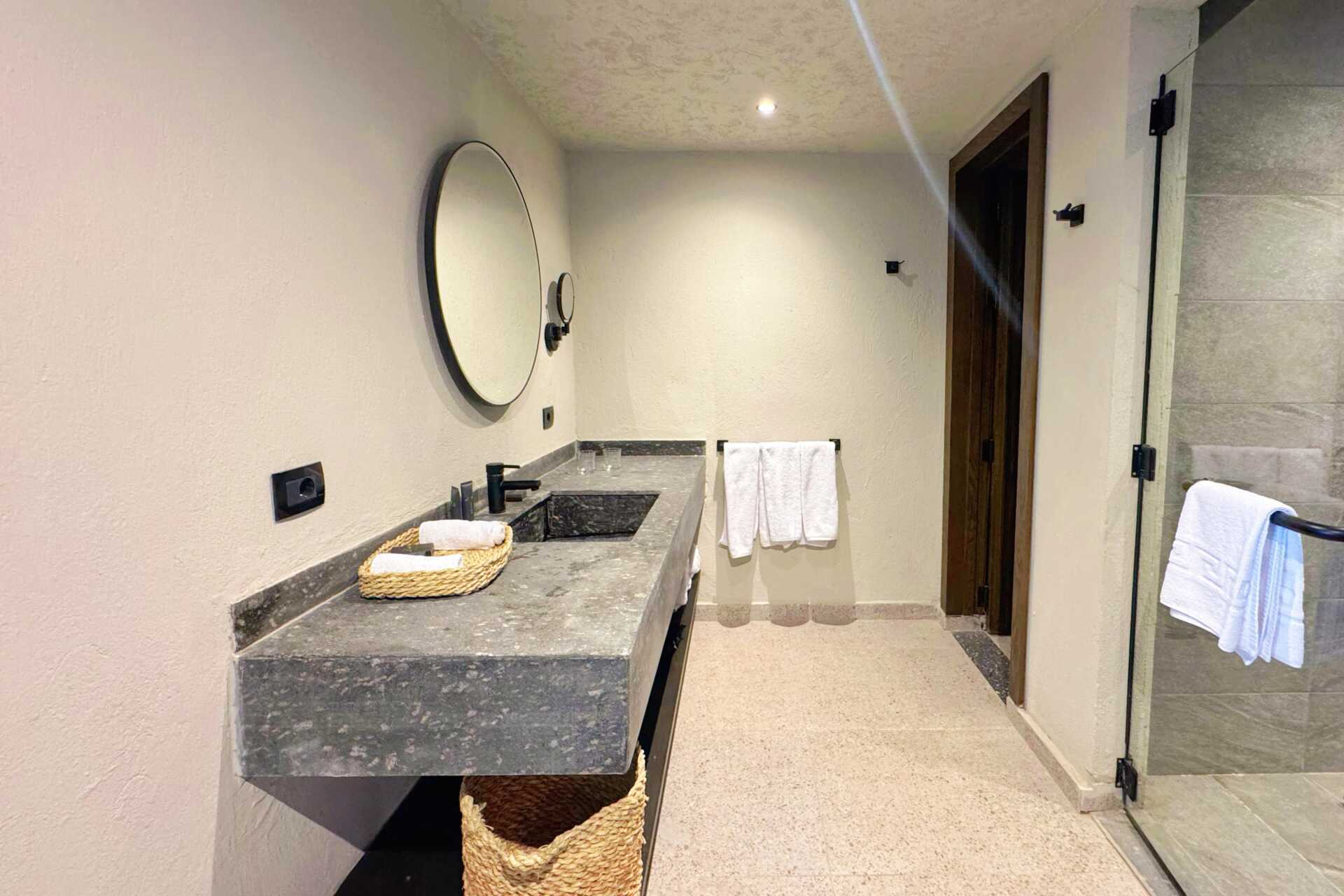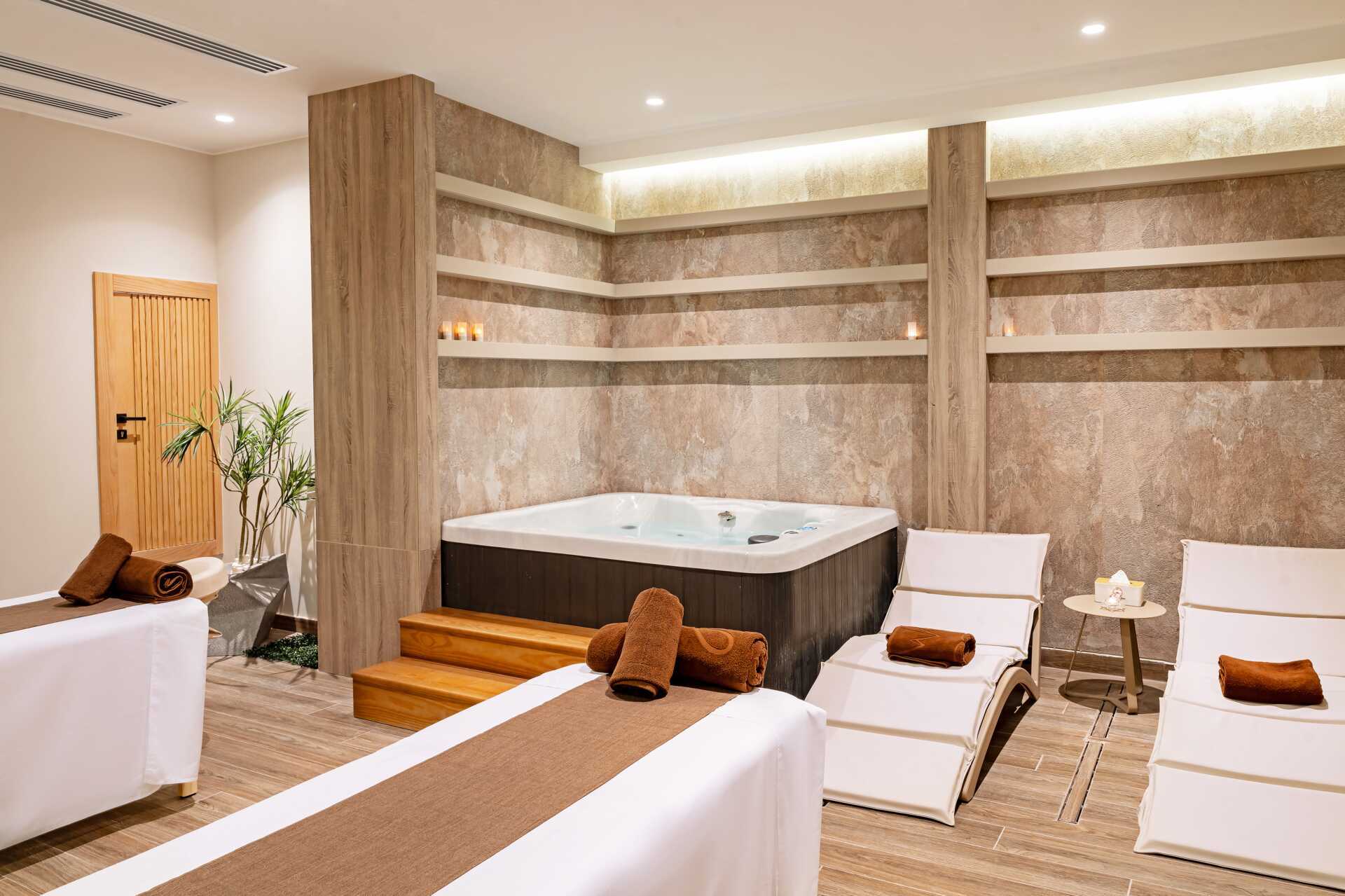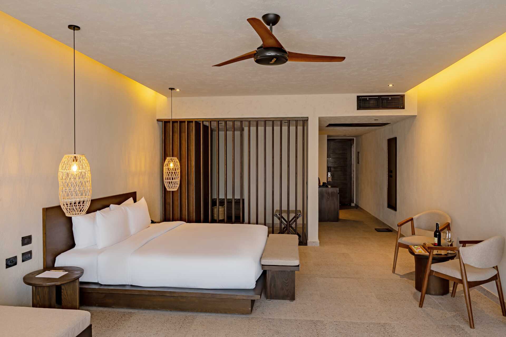 Suite med markterrasse og havutsikt. En dobbeltseng eller to enkeltsenger. Mulig med ekstrasenger i sovesofa. Wifi, luftkondisjonering og safe inkludert. Minibar. Vannkoker samt kaffe og te. TV. Hårføner. Dusj og wc. Rengjøring 7 ggr/uke.