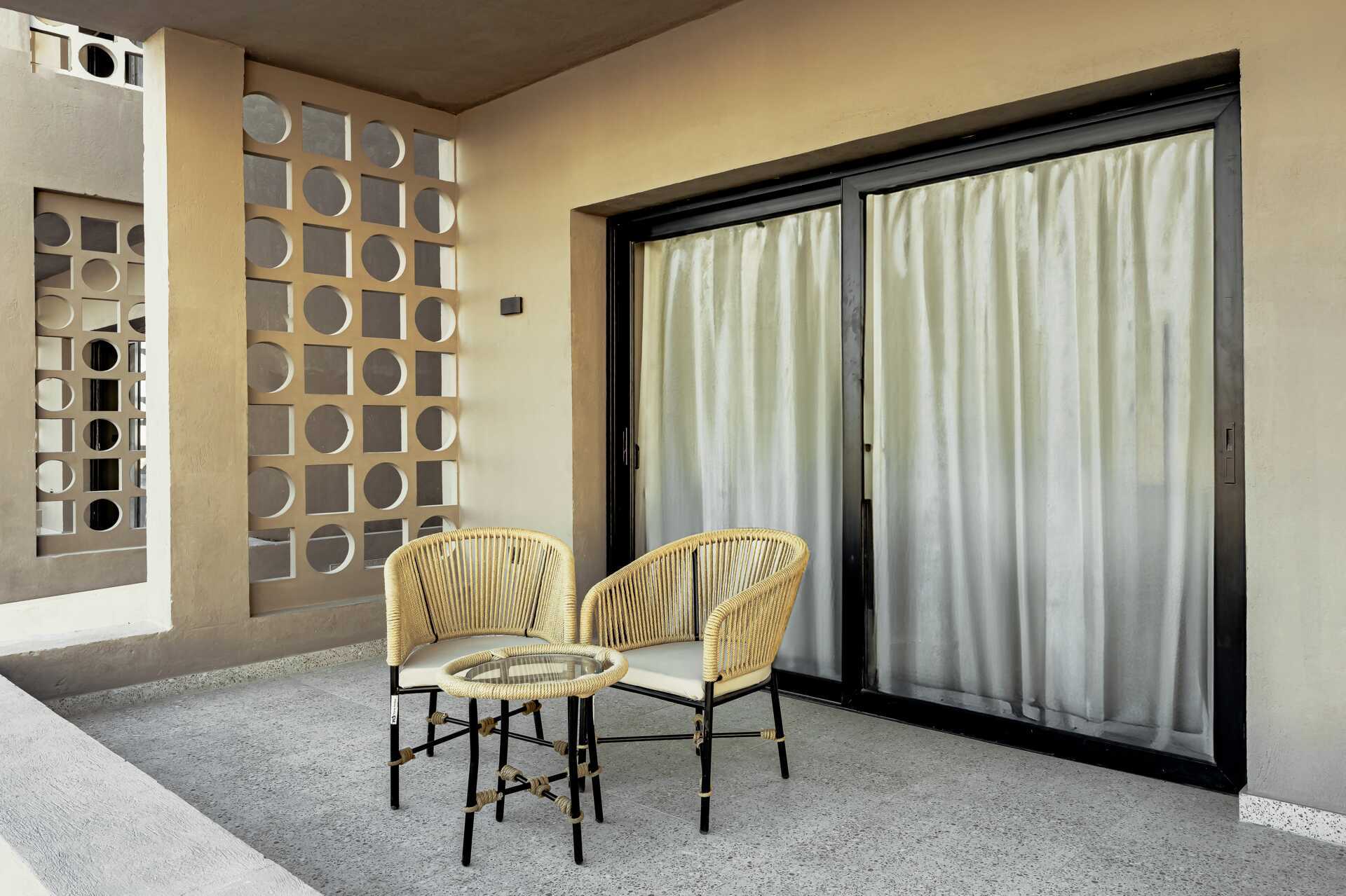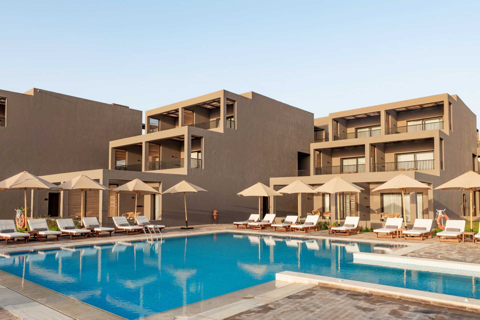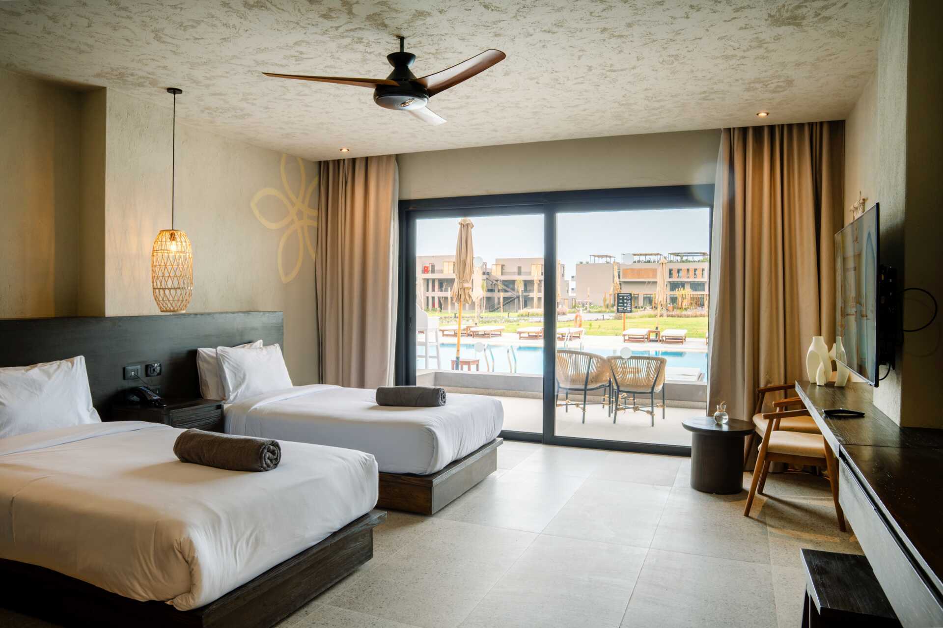 Juniorsuite med markterrasse og delt basseng, noen med havutsikt. En dobbeltseng. Mulig med en ekstraseng i sovesofa. Wifi, luftkondisjonering og safe inkludert. Minibar. Vannkoker samt kaffe og te. TV. Hårføner. Dusj og wc. Rengjøring 7 ggr/uke.