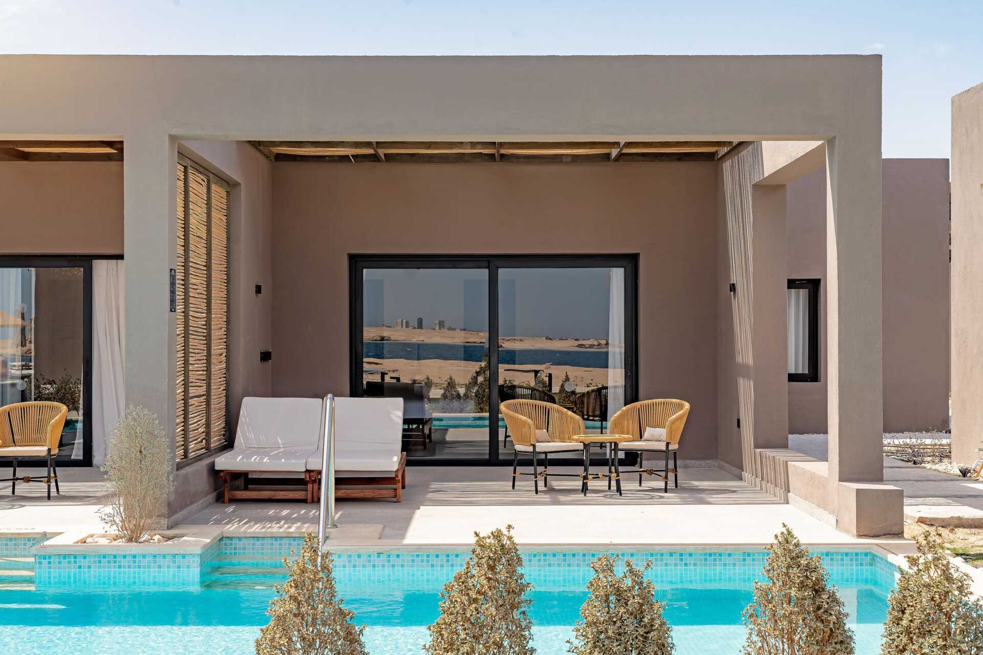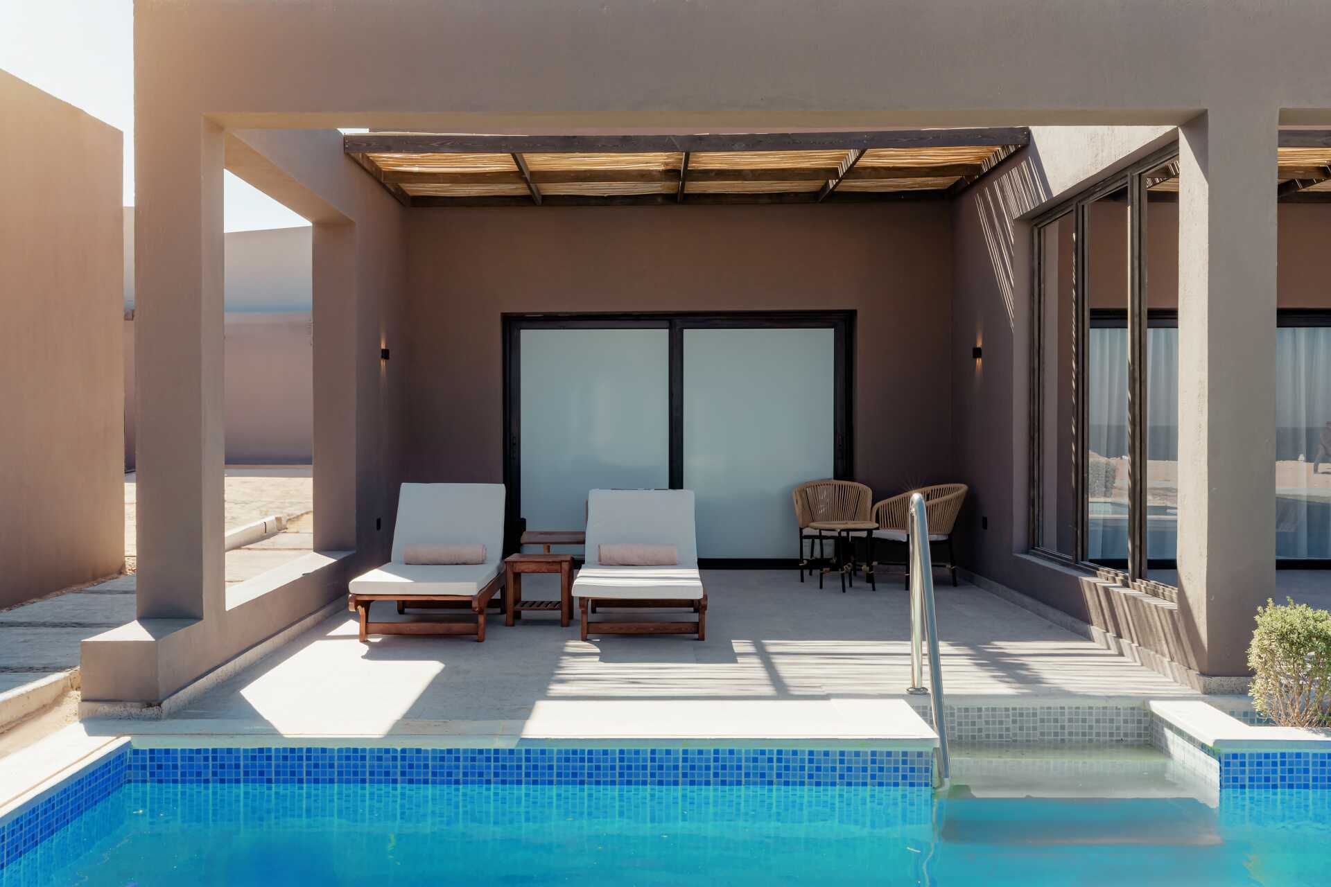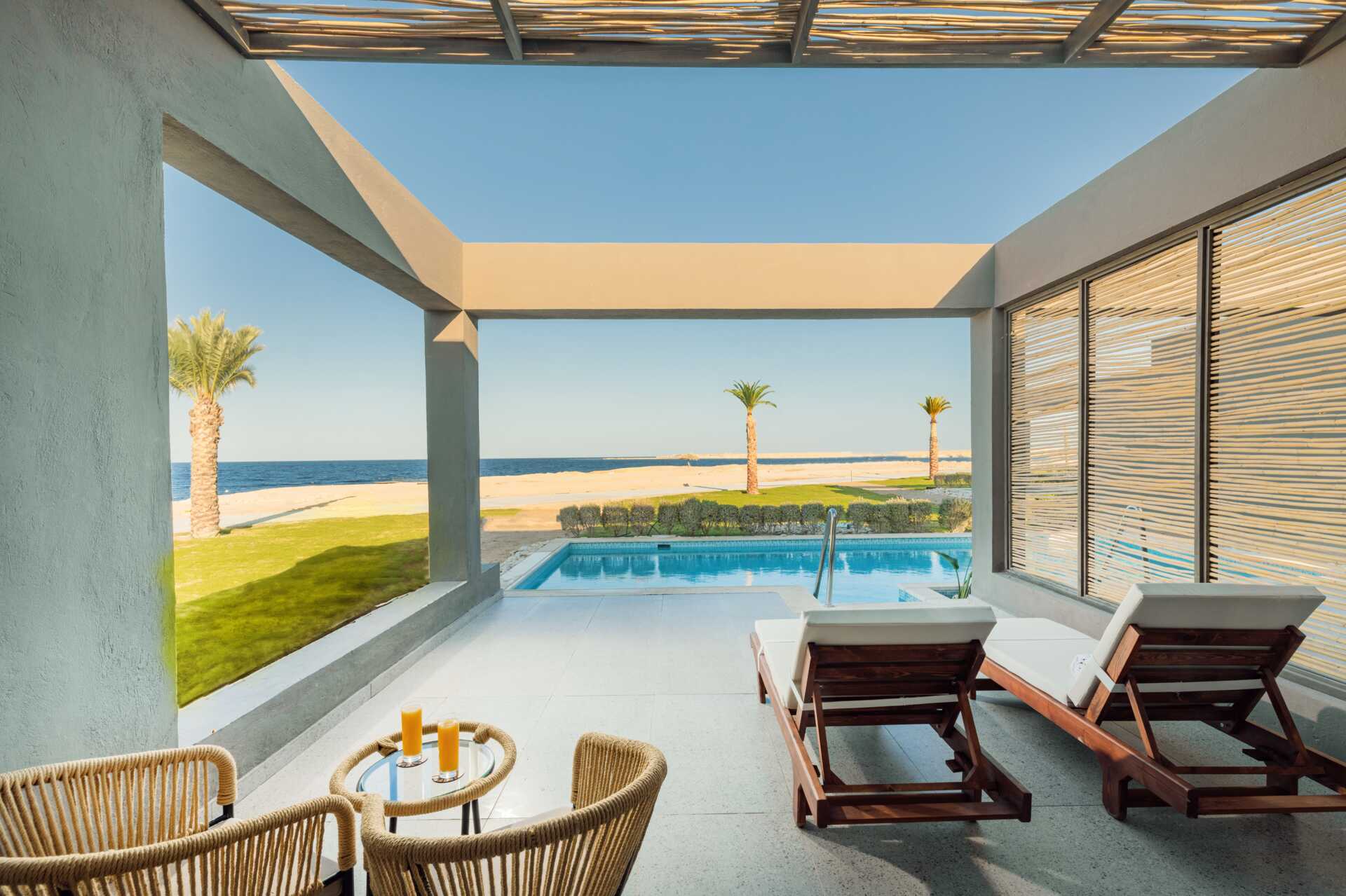 Juniorsuite med markterrasse og delt basseng, noen med havutsikt. En dobbeltseng. Mulig med en ekstraseng i sovesofa. Wifi, luftkondisjonering og safe inkludert. Minibar. Vannkoker samt kaffe og te. TV. Hårføner. Dusj og wc. Rengjøring 7 ggr/uke.