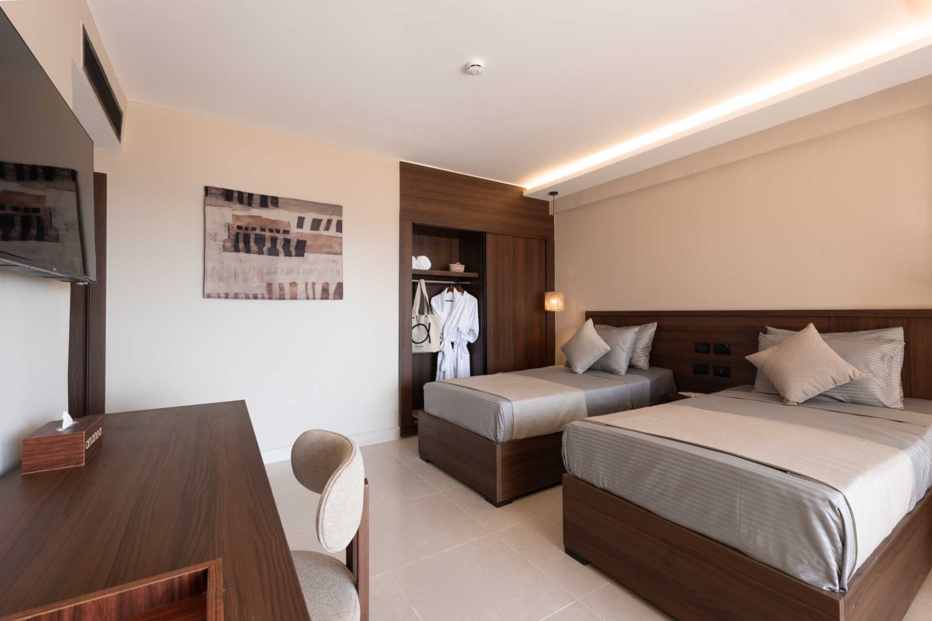 Superiorrom med balkong eller terrasse og utsikt eller havutsikt. Rommene med utsikt er nærmest havet. En dobbeltseng eller to enkeltsenger. Mulig med ekstraseng i feltseng. Wifi, luftkondisjonering og safe inkludert. Minibar. Vannkoker samt kaffe og te. TV. Noen av rommene har vegg-til-vegg-teppe. Hårføner. Badekar eller dusj samt wc. Rengjøring 7 ggr/uke.