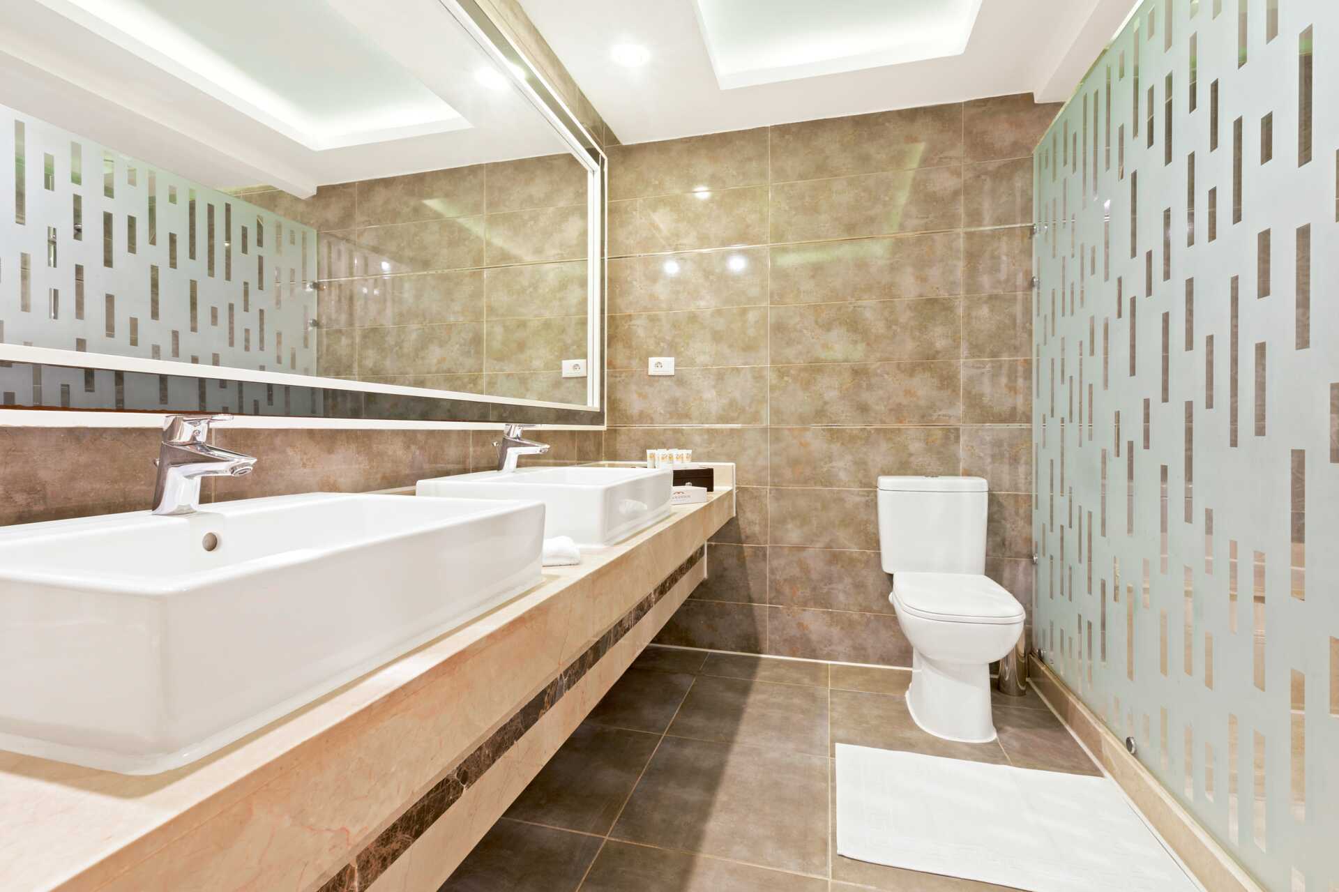 Dobbeltrom med balkong eller terrasse. En dobbeltseng eller to enkeltsenger. Mulig med ekstraseng i feltseng. Wifi, luftkondisjonering og safe inkludert. Minibaren fylles daglig med vann uten kostnad. Vannkoker samt kaffe og te. TV. Hårføner. Bad med dusj og wc. Rengjøring 7 ggr/uke.