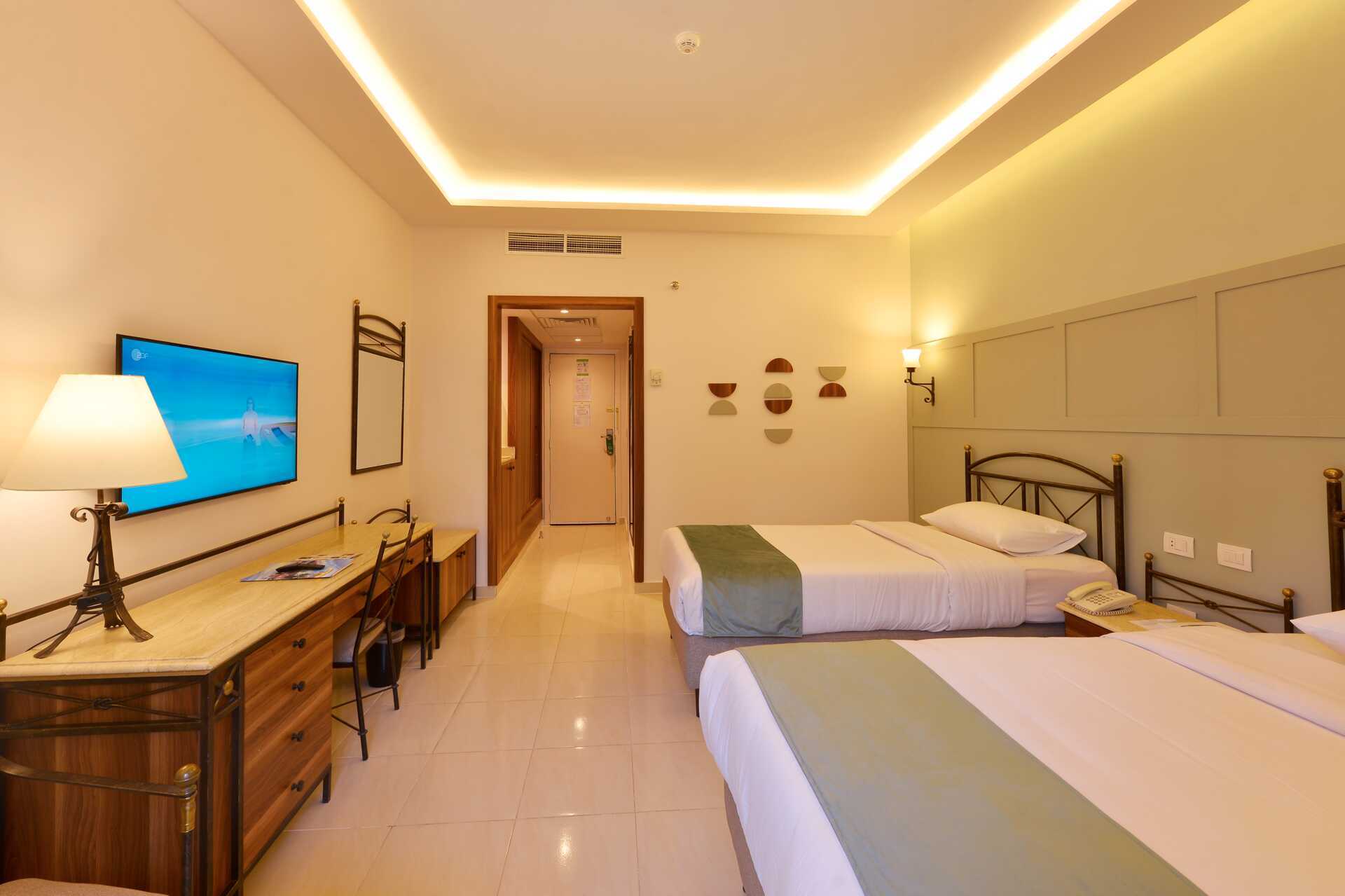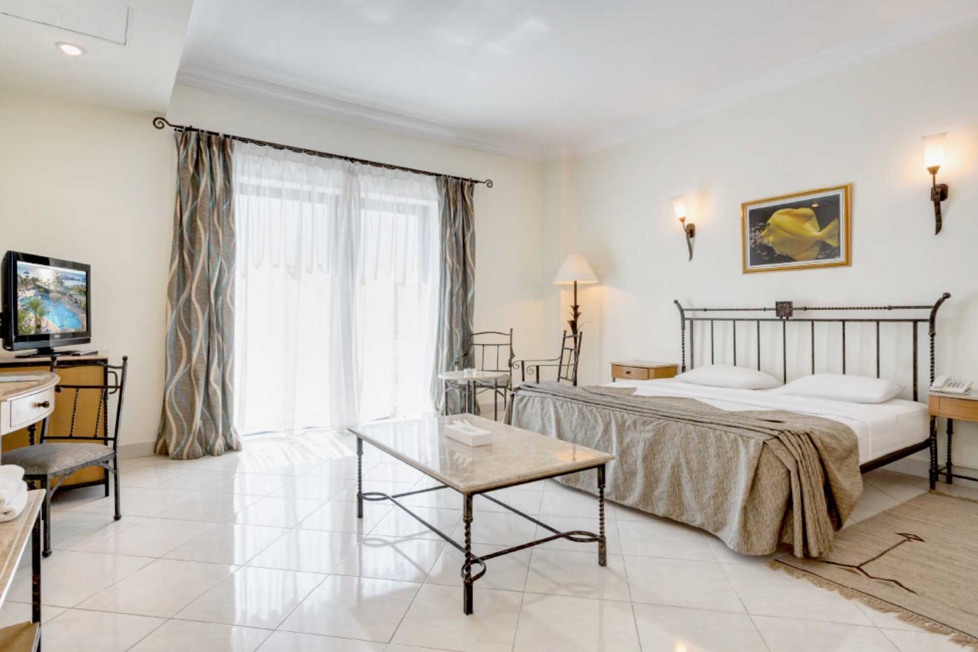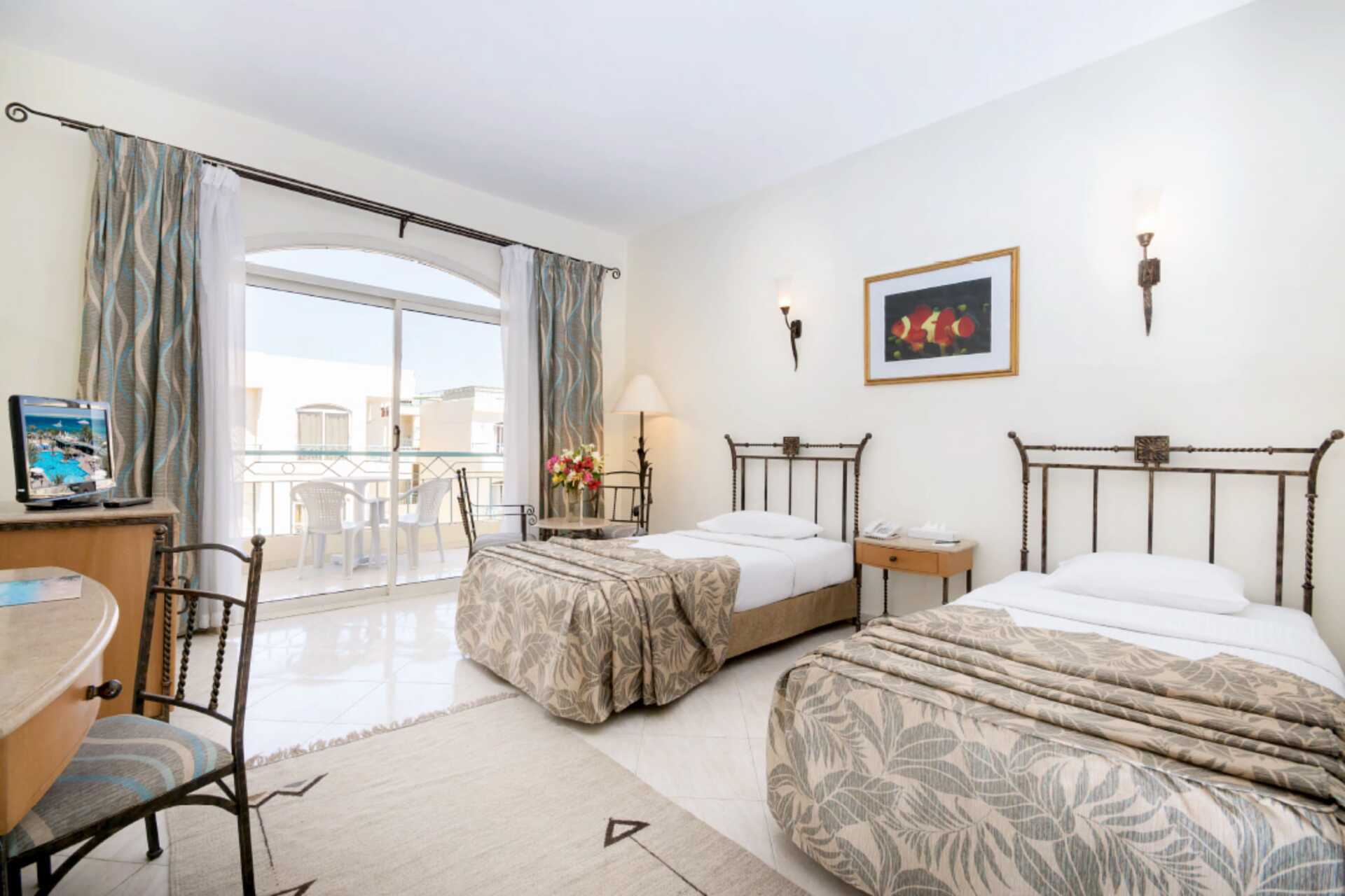 Dobbeltrom med balkong eller terrasse. All Inclusive inkludert. En dobbeltseng eller to enkeltsenger. Mulig med ekstra soveplasser i feltsenger. Luftkondisjonering inkludert. Wifi og safe mot avgift. Fra og med vinteren 2026/27 er wifi og safe inkludert. Minibar, en liten flaske vann inkludert, etterfylles hver dag. Annen drikke og snacks mot avgift. Vannkoker samt kaffe og te. TV. Baderom med badekar eller dusj samt wc. Rengjøring 7 ggr/uke.