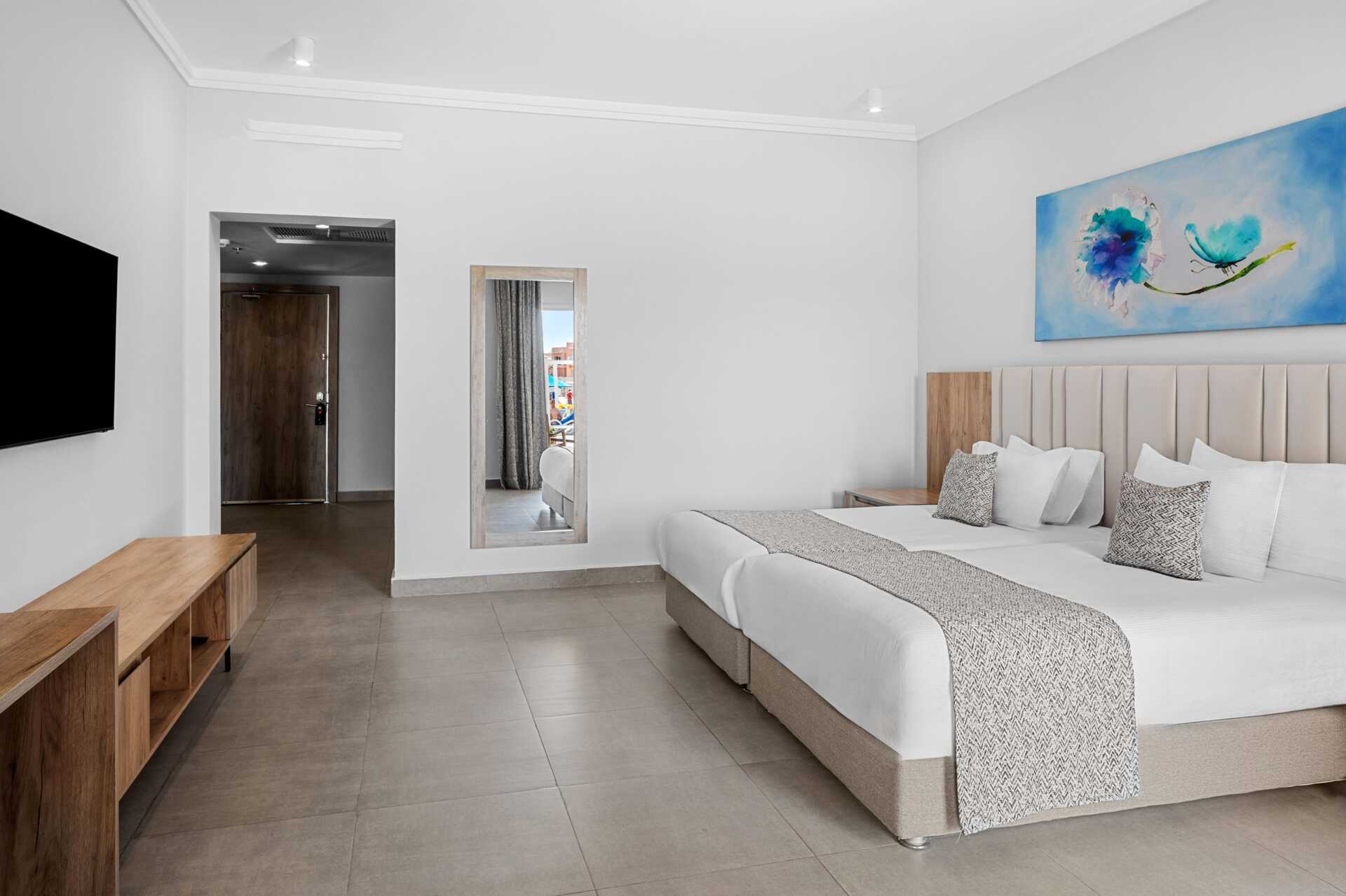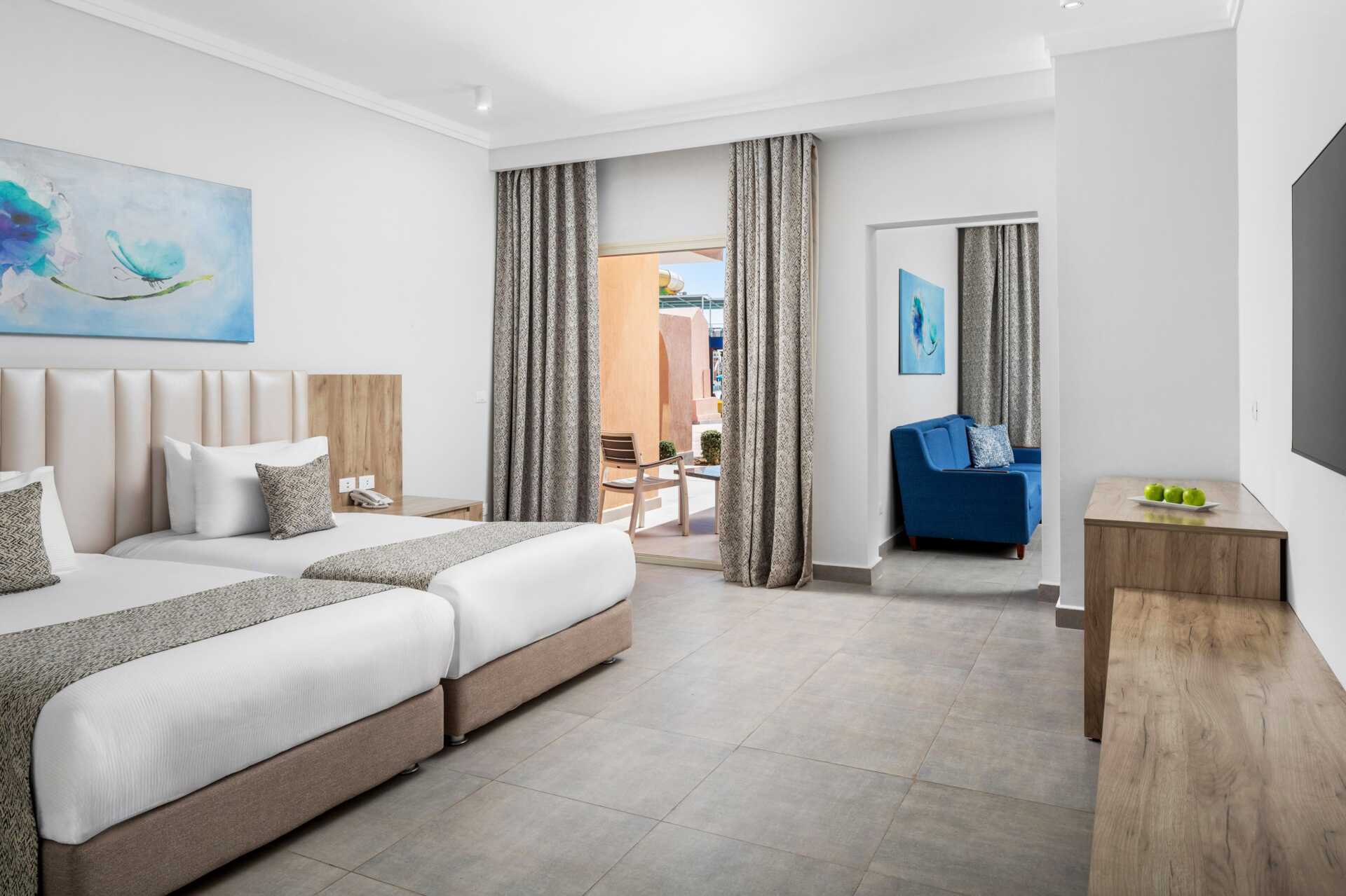 Toromsleilighet med balkong eller terrasse og bassengutsikt. Suiten består av to soverom, hvert med eget bad i felles hall, hvorav det ene har stue. En dobbeltseng i det ene soverommet og det andre soverommet har to enkeltsenger. Mulig med ekstraseng i feltseng. Wifi, luftkondisjonering og safe inkludert. Minibar, daglig påfylling av flaskevann inkludert. TV. Hårføner. Baderom med badekar, separat dusj og wc. Rengjøring 7 ggr/uke.