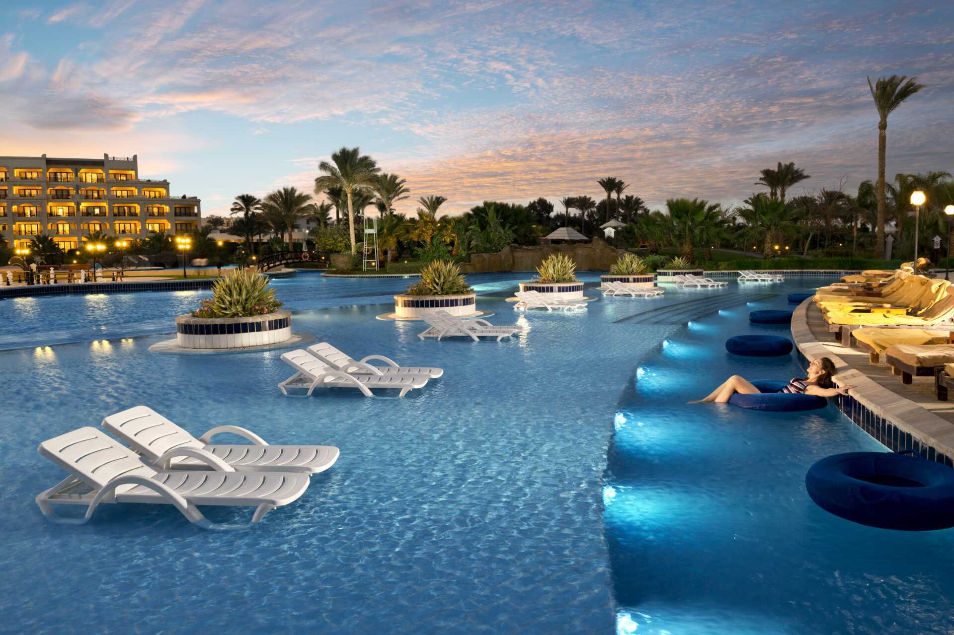 Velkommen til luksus, lek og late dager på Steigenberger Al Dau Beach i Hurghada! Her bor du rett på stranden, nyter et magisk bassengområde med fossefall og hengekøyer, og spiser godt på flere restauranter. All Inclusive er flott – og med Ultra får du til og med din egen butler! Badeland, spa, golf og dykking – det finnes noe for enhver smak, hver dag.
