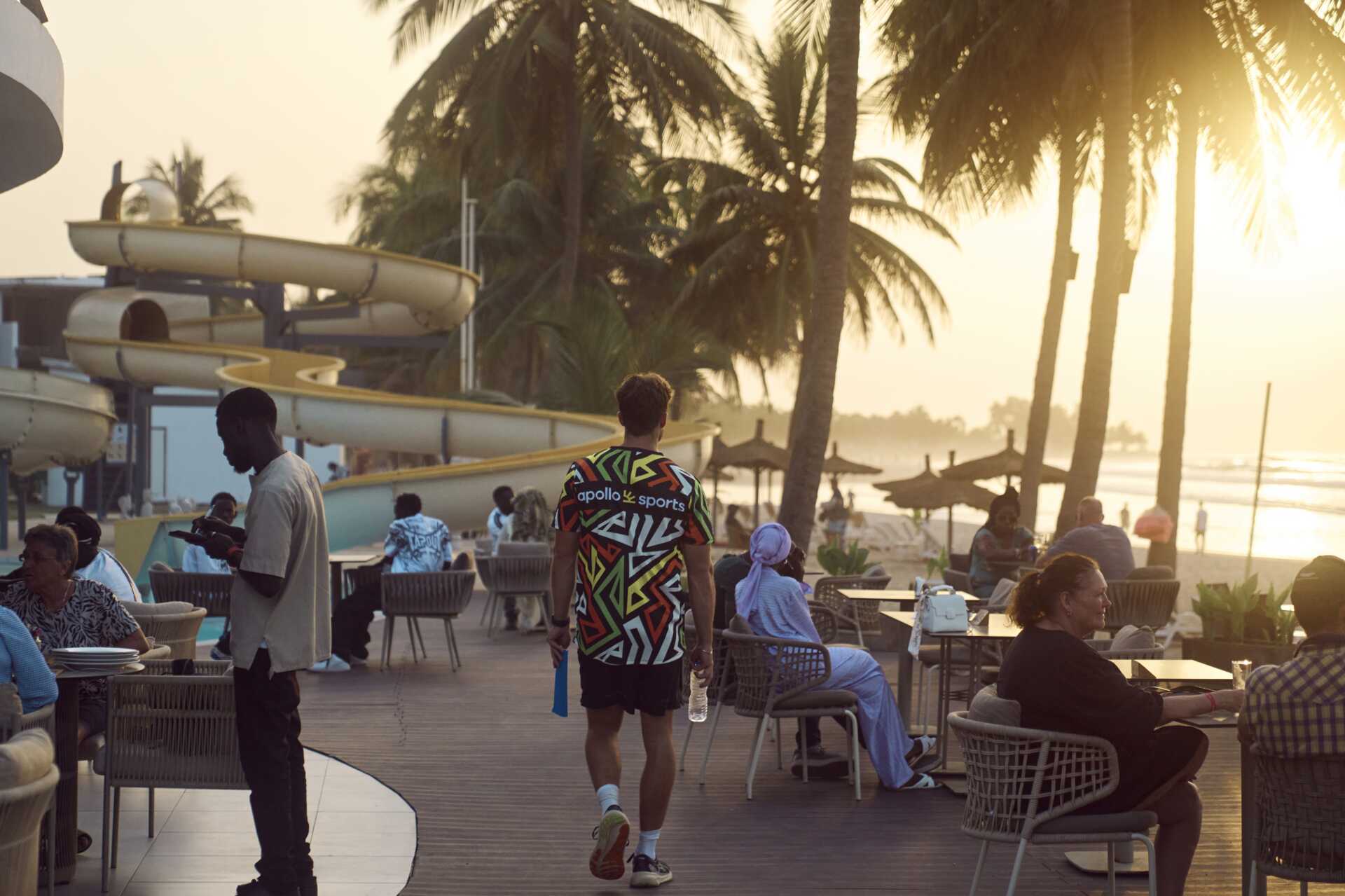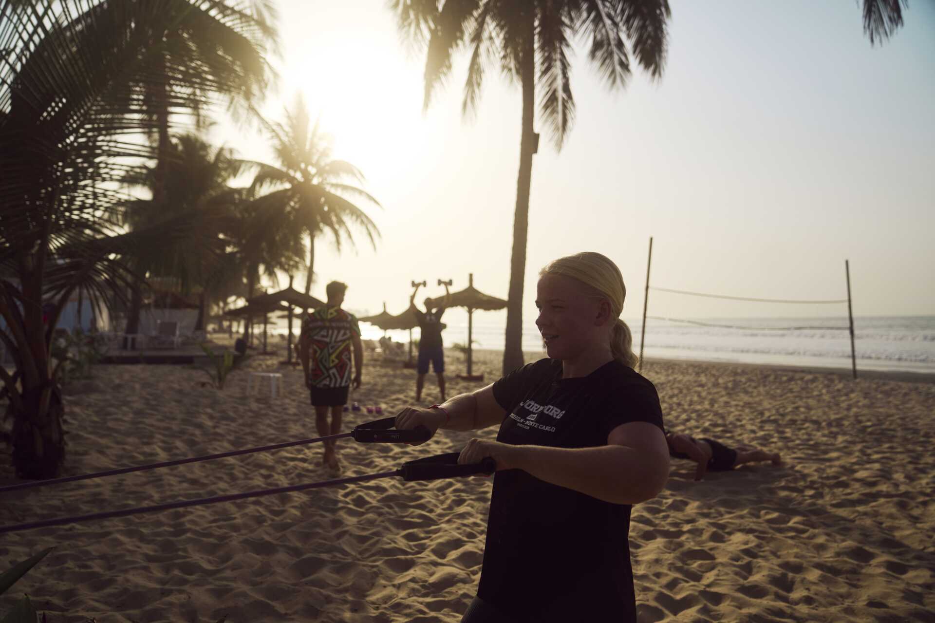 Her møtes strand og hotell i en hyggelig og avslappende atmosfære hvor du kan velge om du vil nyte skyggen eller være aktiv og delta på en treningstime. Den palmekantede stranden på hotellet er ikke bare et sted for avslapning og deilige turer, her løper lokalbefolkningen og trener styrke og tøying, og du kan se de lokale fotballagene jogge langs stranden ivrig drillet av treneren sin mens noen tar push-ups og andre knebøy. Flere fremtredende fotballspillere som spiller for internasjonale klubber kommer fra Gambia, så det kan være akkurat her på stranden at en fremtidig generasjon fotballproffer trener.