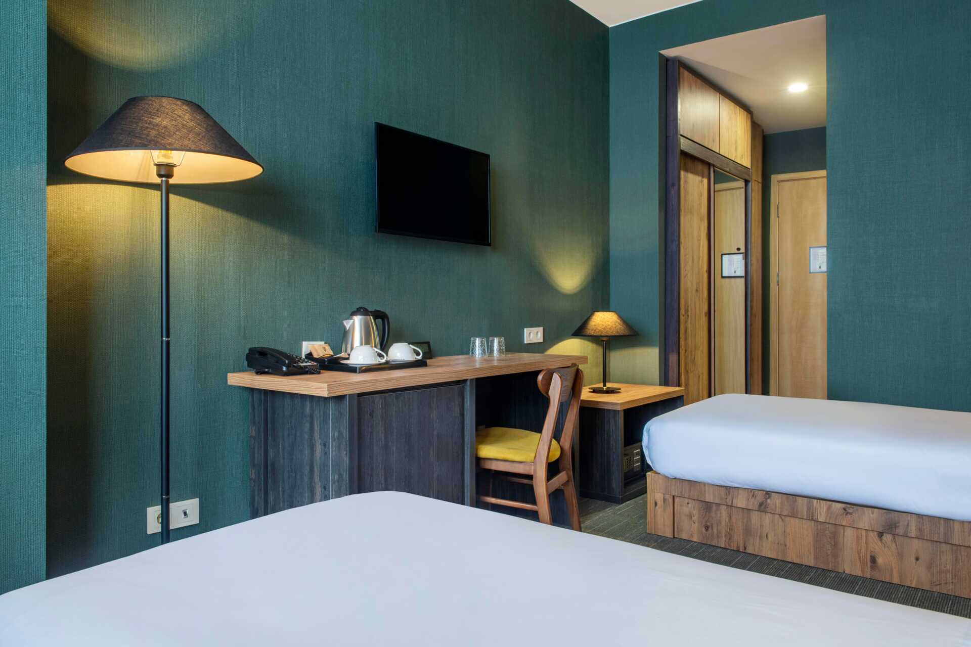 Dobbeltrom, uten uteplass. En dobbeltseng eller to enkeltsenger. Wifi, luftkondisjonering til oppvarming og safe inkludert. Kjøleskap. Vannkoker samt kaffe og te. TV. Vegg-til-vegg-teppe Hårføner. Badekåper og tøfler Bad med dusj og wc. Rengjøring 7 ggr/uke.