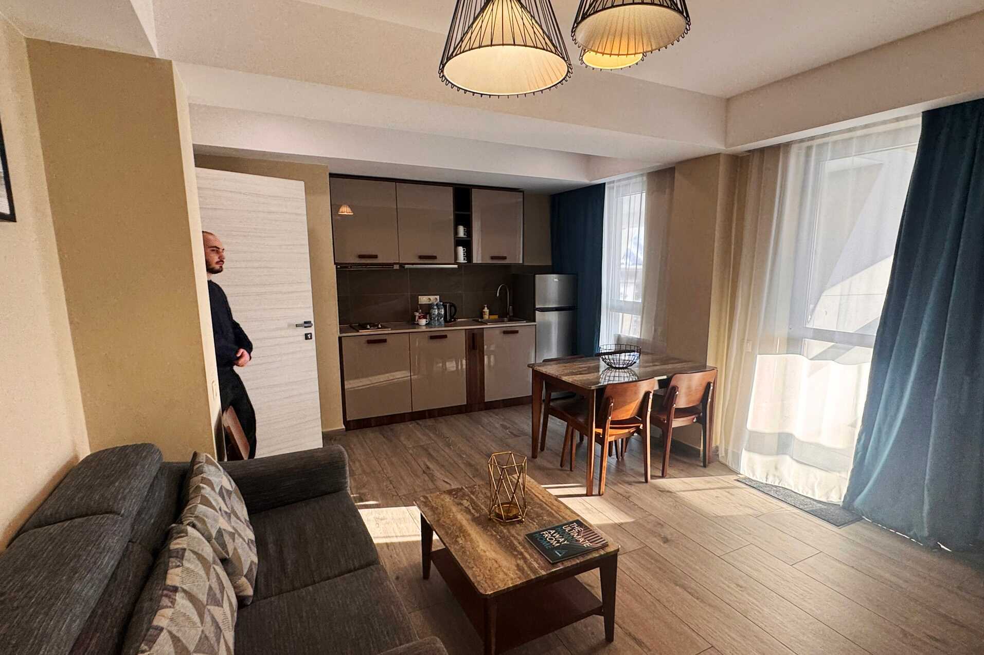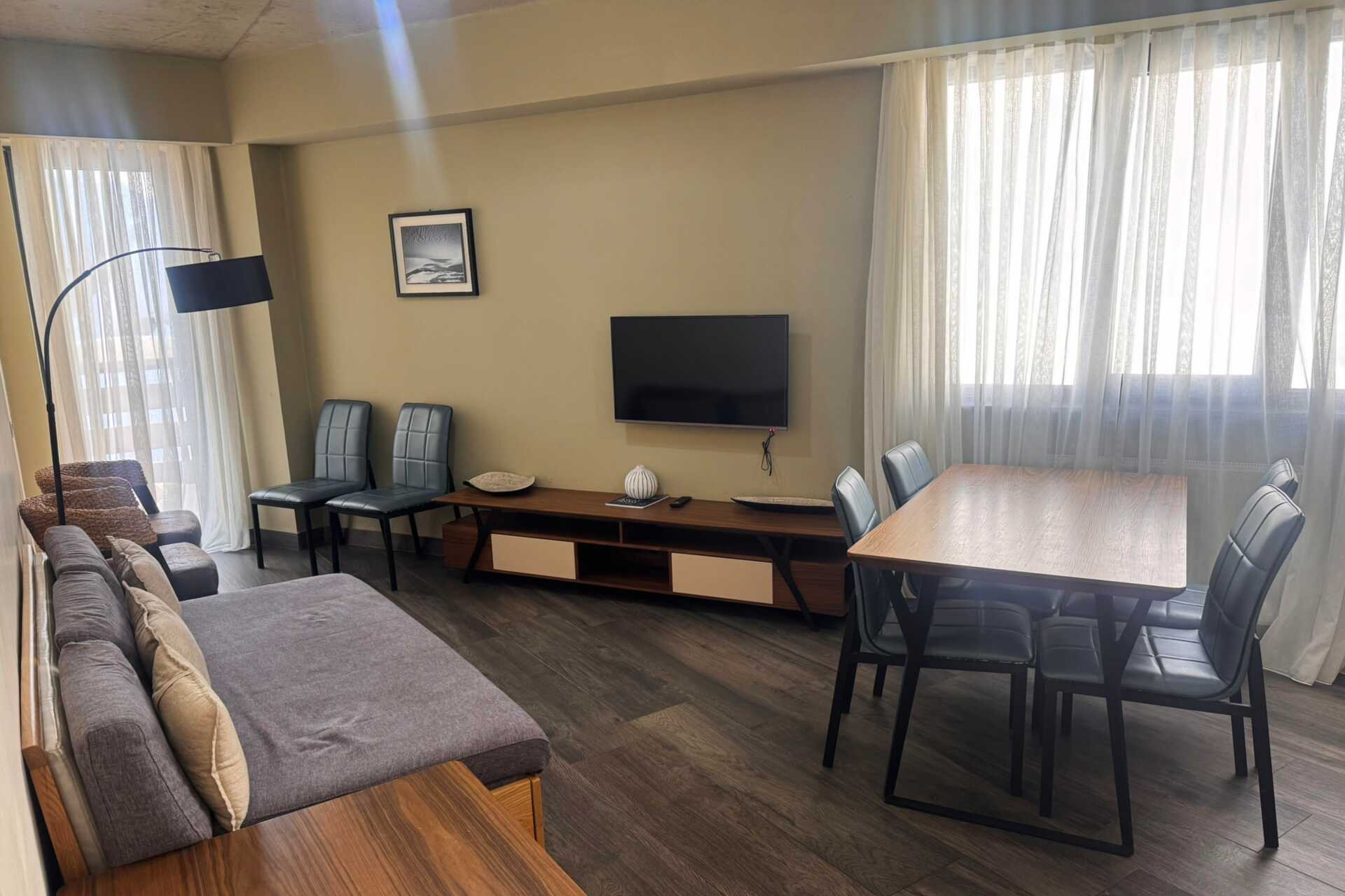 Toromsleilighet med balkong. Soverom og stue med minikjøkken. To enkeltsenger. Mulig med en ekstraseng i sovesofa. Minikjøkken med kjøleskap, kokeplater, vannkoker og enkelt kjøkkenutstyr. Wifi, luftkondisjonering og safe inkludert. TV. Hårføner. Dusj og wc. Rengjøring 6 ggr/uke.