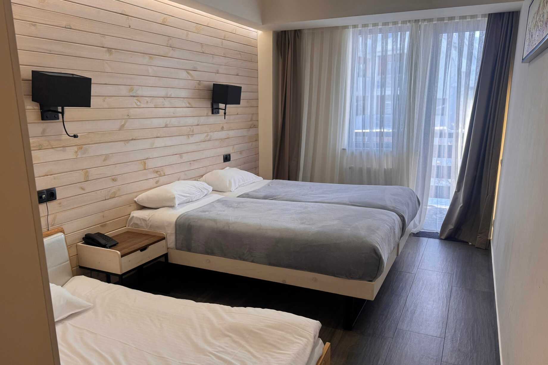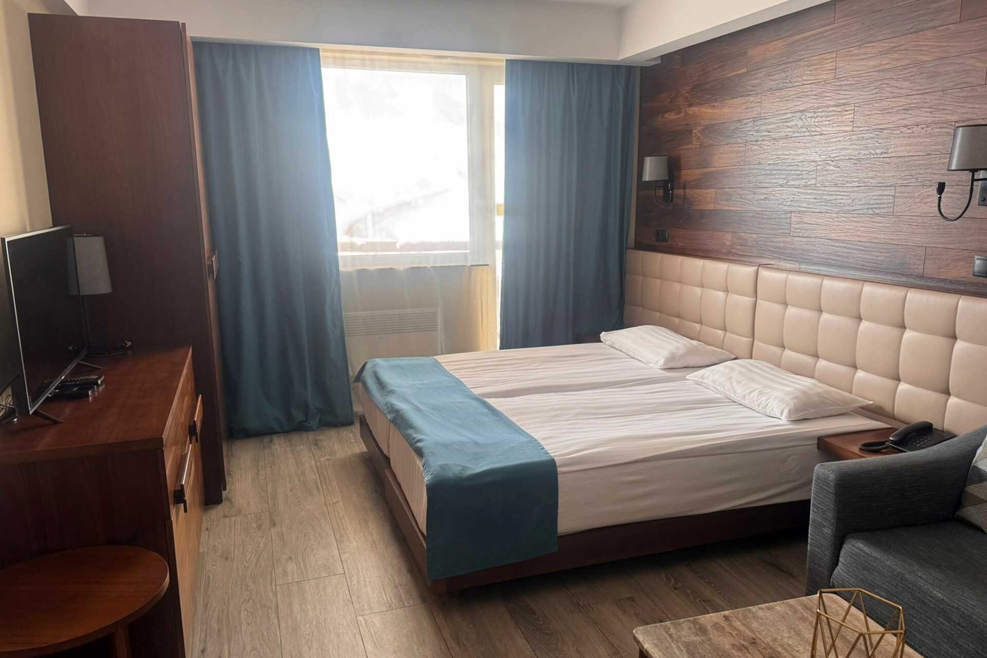 Ettromsleilighet med balkong. Soverom med minikjøkken. To enkeltsenger. Mulig med en ekstraseng i sovesofa. Minikjøkken med kjøleskap, kokeplater, vannkoker og enkelt kjøkkenutstyr. Wifi, luftkondisjonering og safe inkludert. TV. Hårføner. Dusj og wc. Rengjøring 6 ggr/uke.